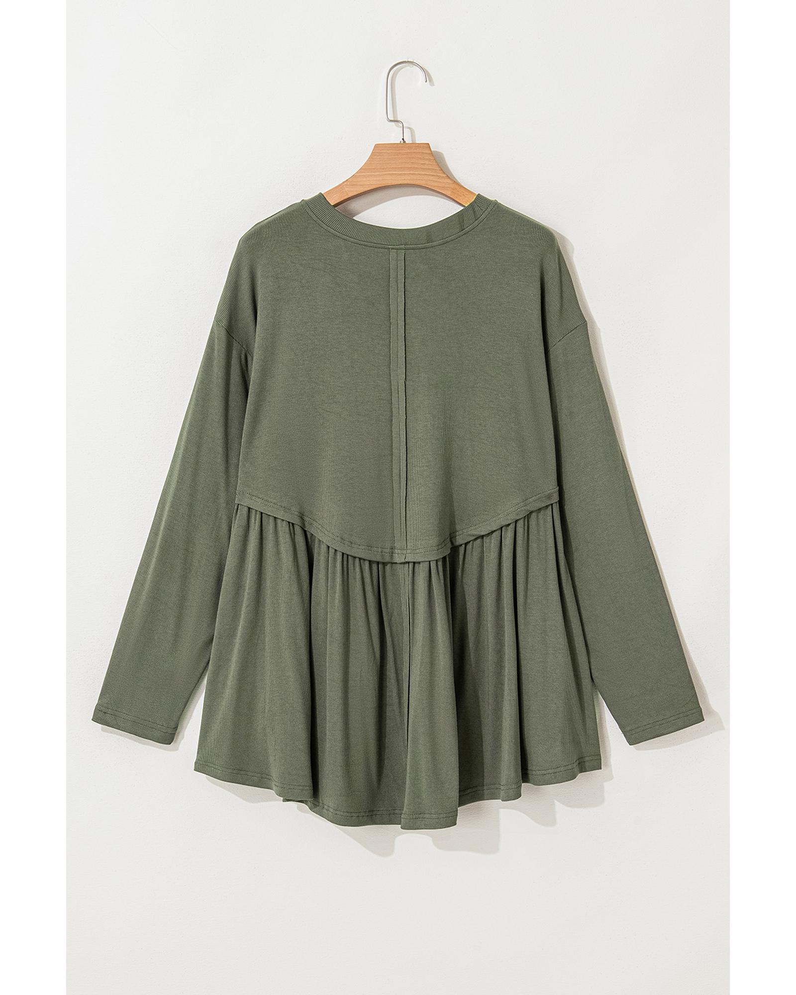 • Mist Green Plus Size Thermal Knitted Babydoll Flare Top