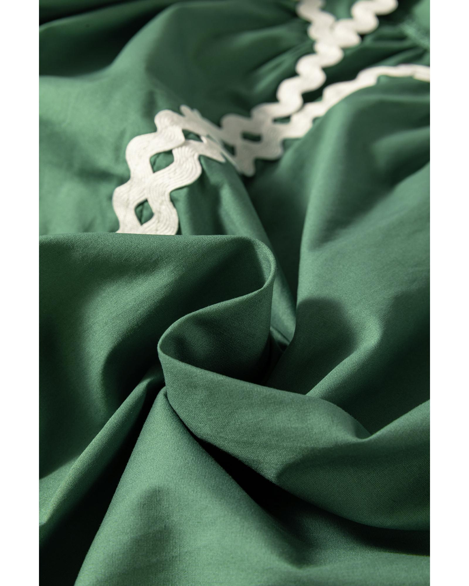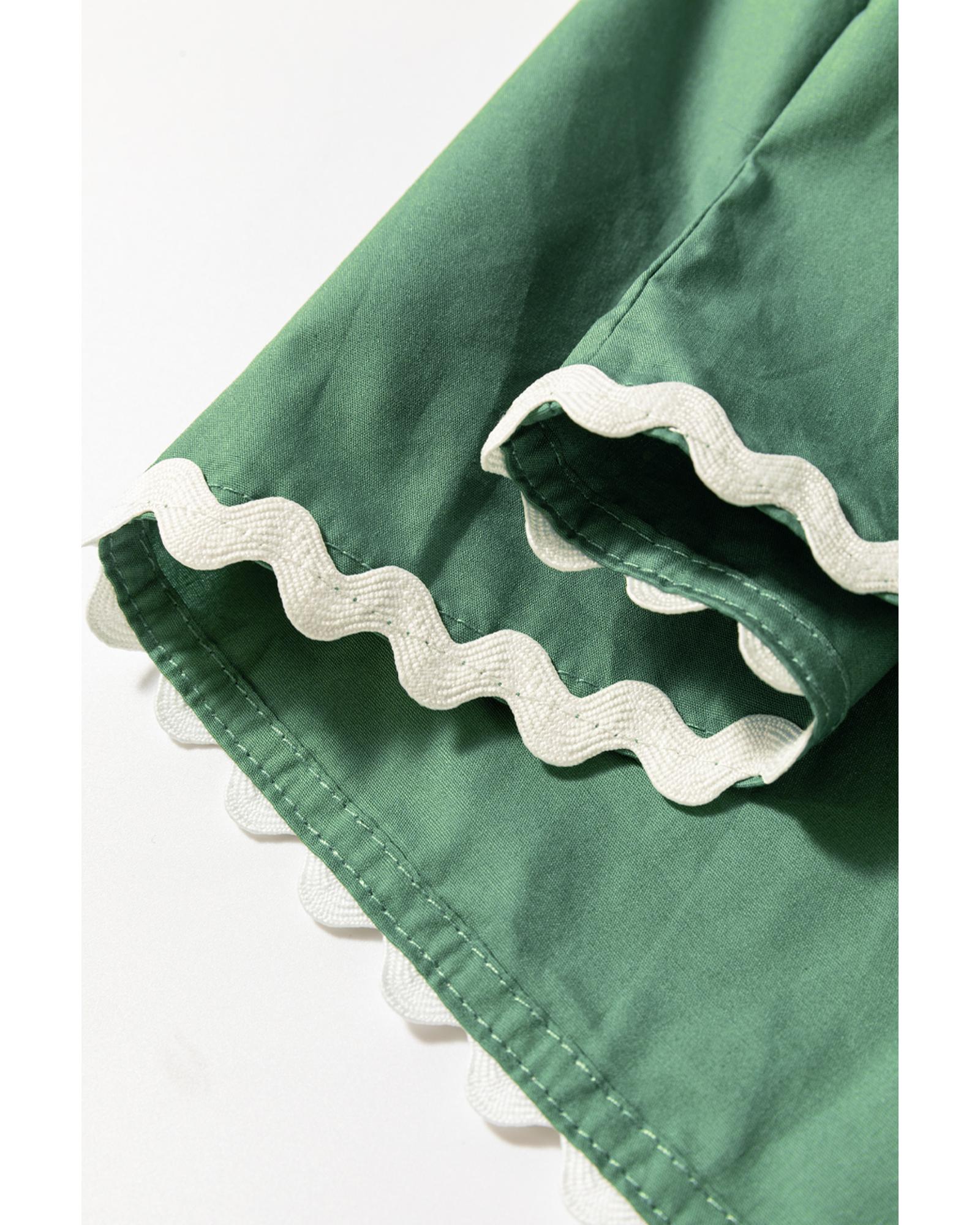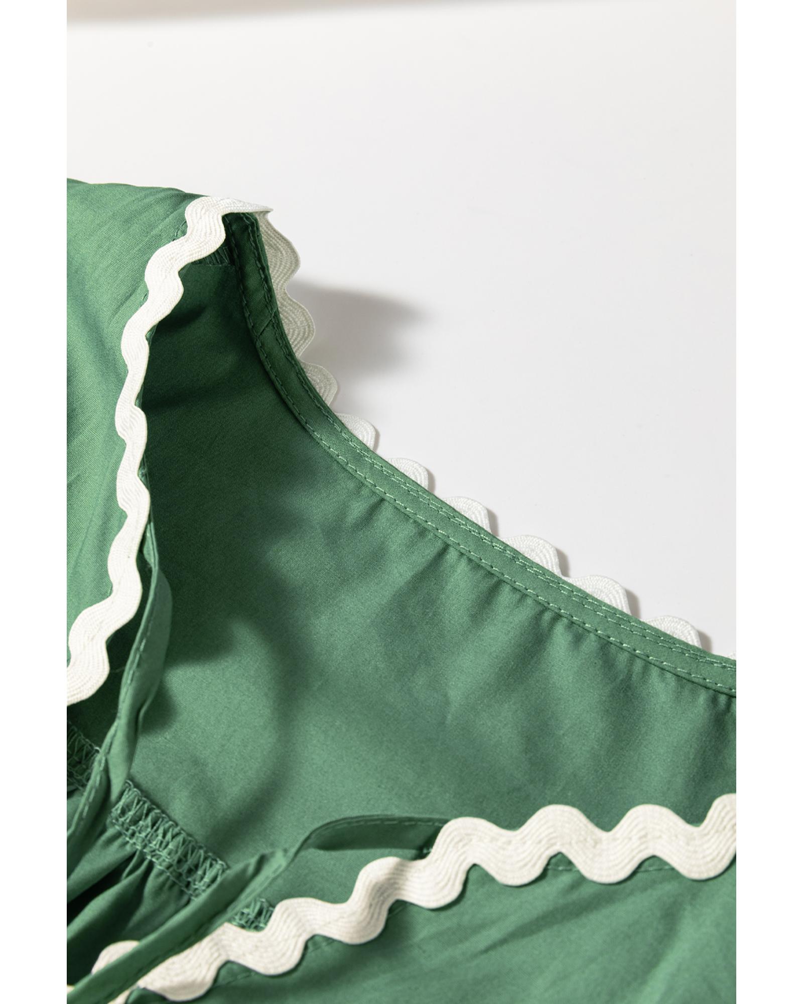 Mist Green Ric Rac Trim Tie Split Neck Short Sleeve Blouse – S