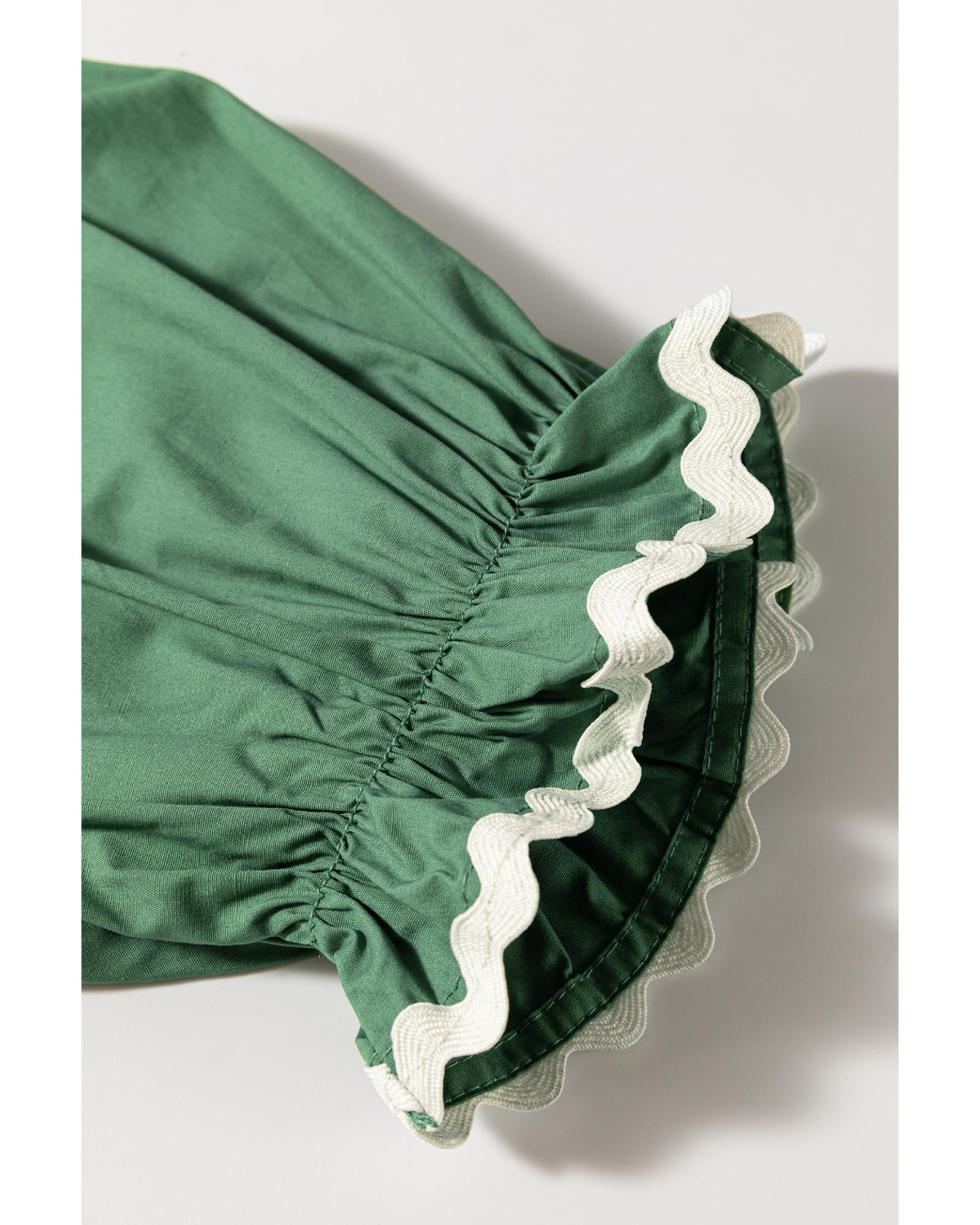 Mist Green Ric Rac Trim Tie Split Neck Short Sleeve Blouse – XL