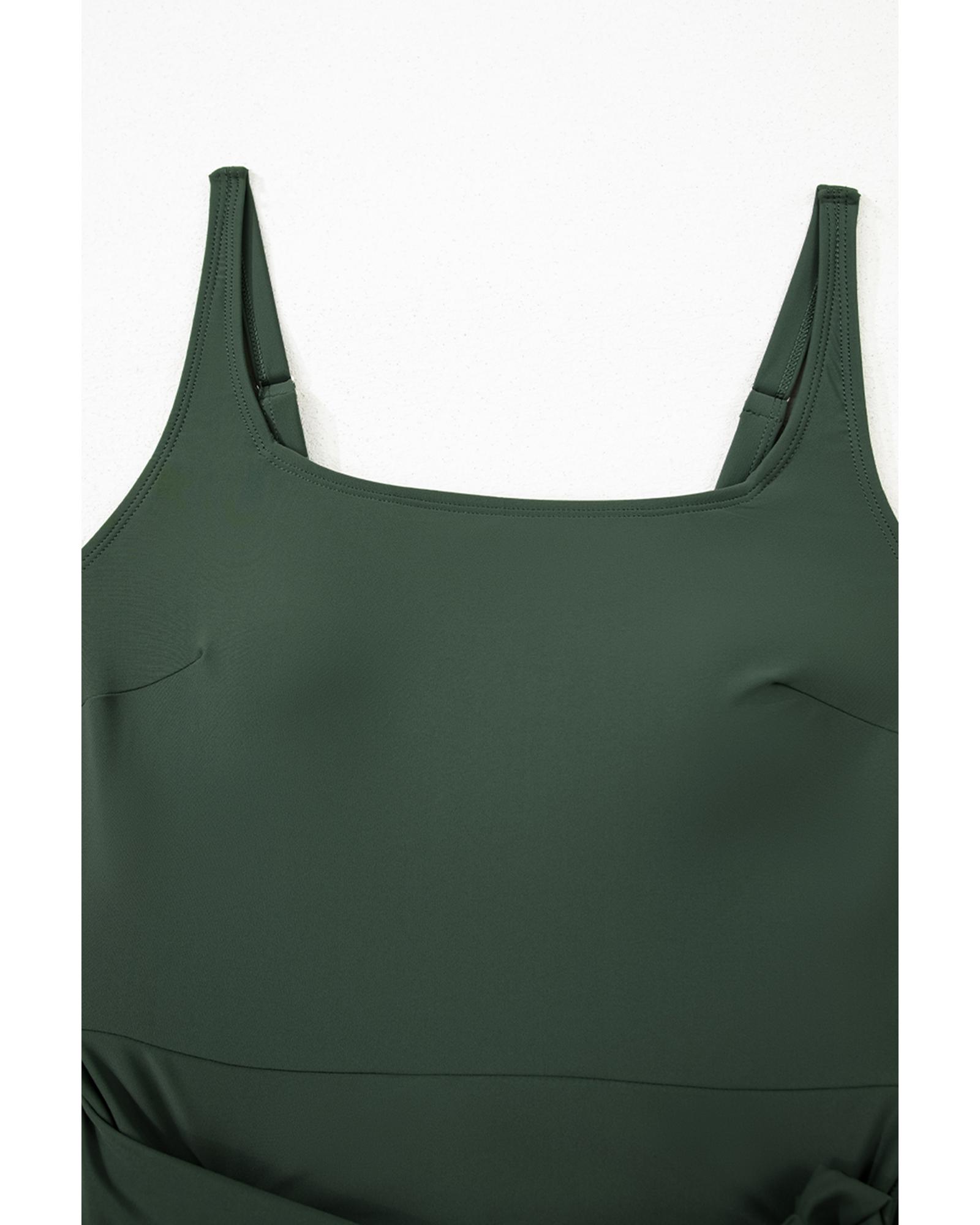 Mist Green Side Tied Waist Square Neck Adjustable Straps A-line One Piece Swim Dress – 2XL