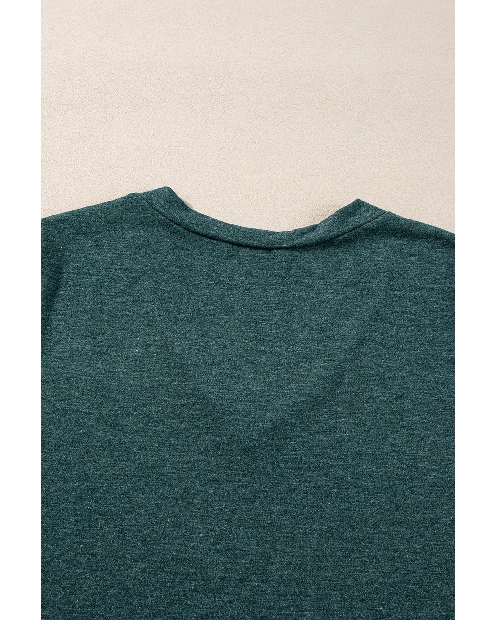 Mist Green Solid Color Long Sleeve V Neck Top – L