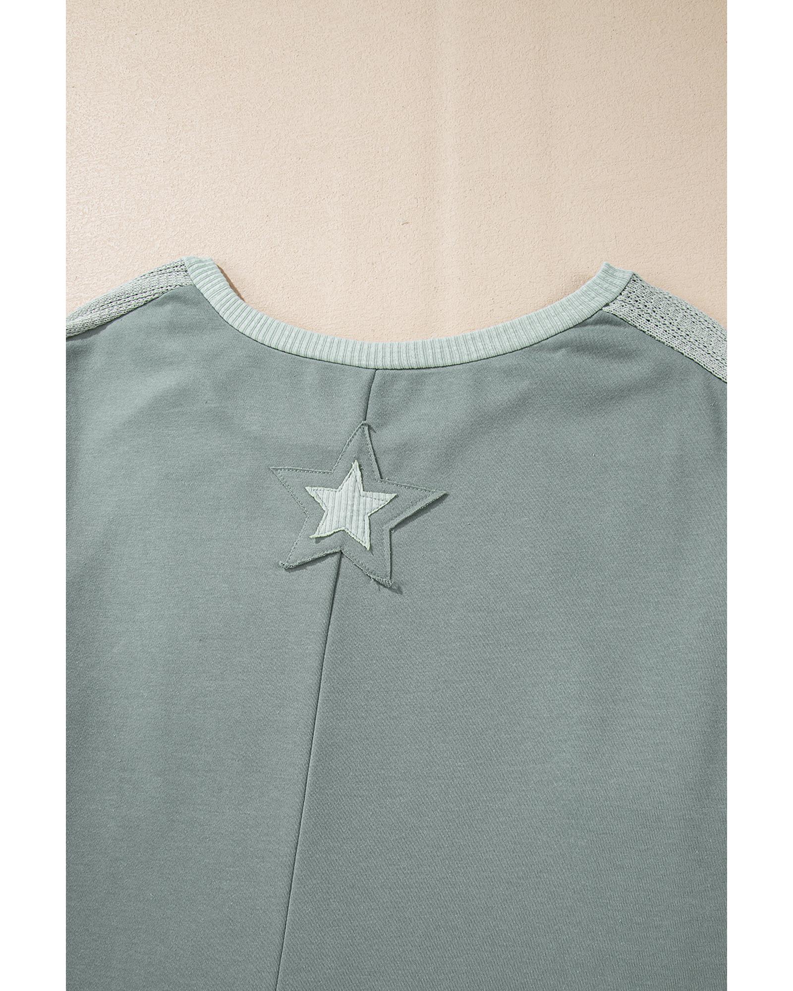 Mist Green Stars Patchwork Round Neck Plus Size T Shirt – 1X