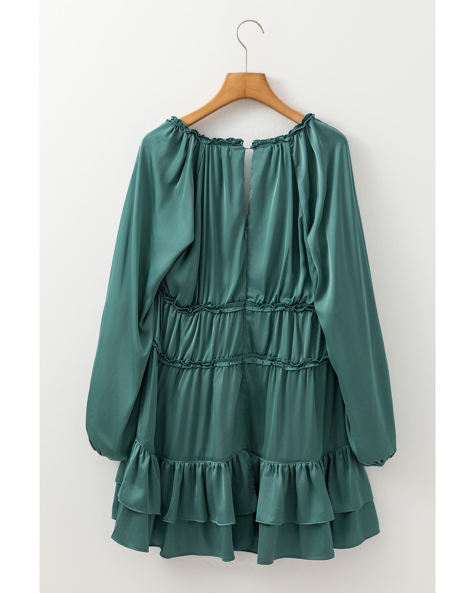 Mist Green Tiered Ruffled Puff Sleeve Loose Fit Mini Dress – L