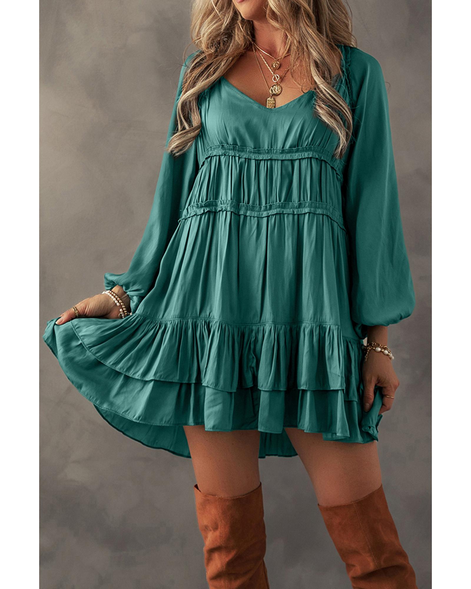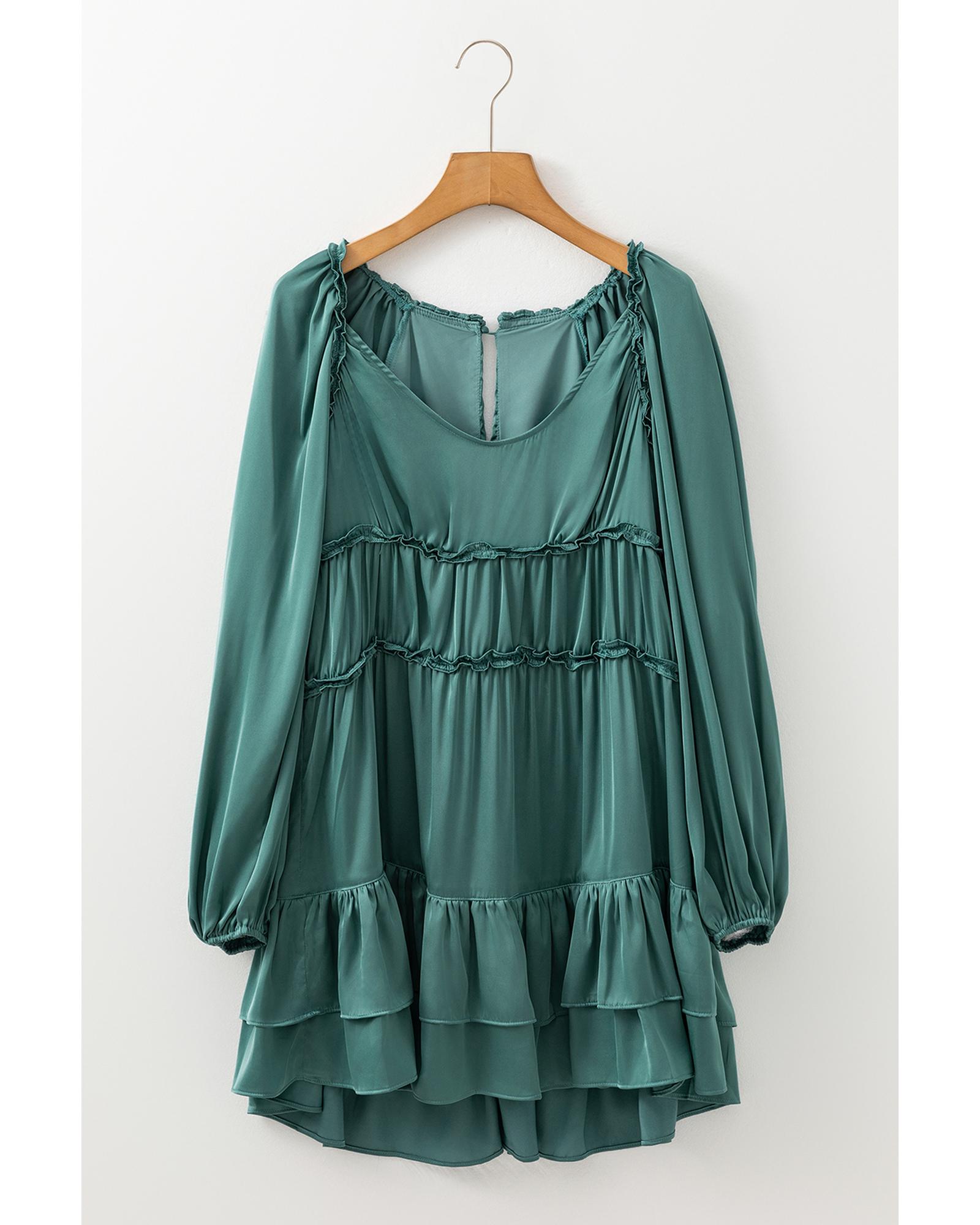 Mist Green Tiered Ruffled Puff Sleeve Loose Fit Mini Dress – XL