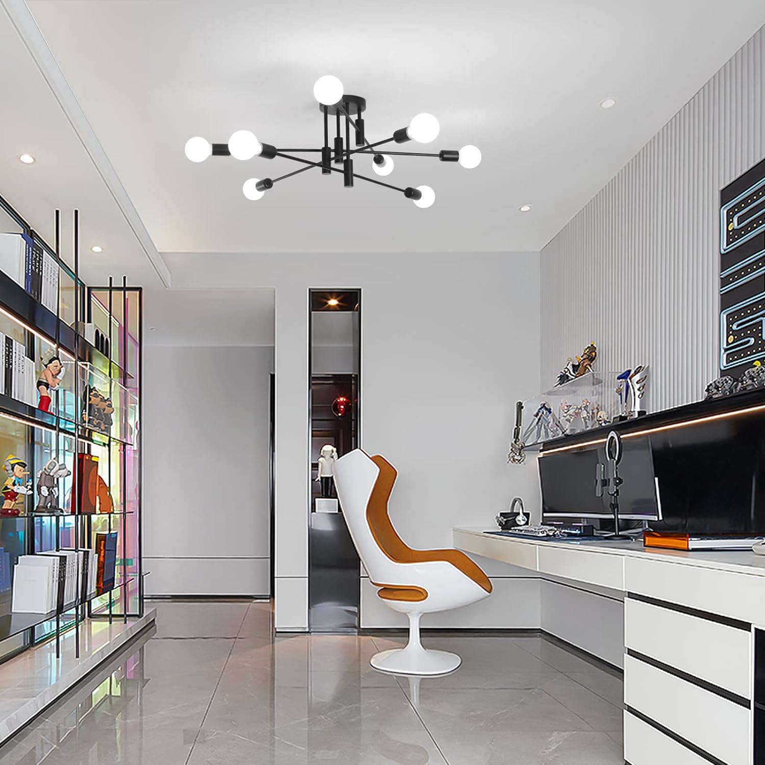 - This modern sputnik chandelier is the perfect way to add a touch of style and sophistication to your home. Its sleek design and contemporary look will bring a new level of elegance to any room.