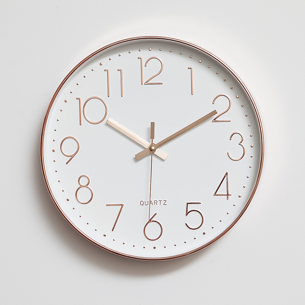 Modern Wall Clock Silent Non-Ticking Quartz Battery Operated Rose Gold