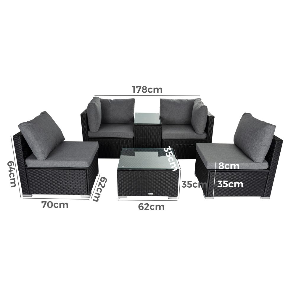 The frame is manufactured from durable steel with a rust proof powder coating. This frame is adorned with hand-woven PE wicker, which is both UV-resistant and waterproof. The cushions are all included in the package, with removable covers that can be easily cleaned and resist fading.The whole set is practical and compact. At the same time, a side table is attached to the set, which can be adjusted according to your own ideas.