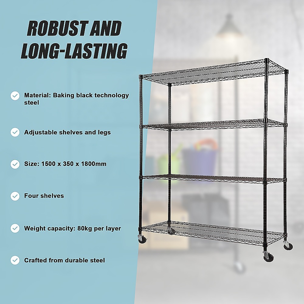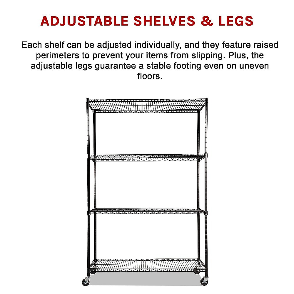 Not only is this four-shelf unit robust, but it also provides mobility. Its lightweight and compact design allow you to effortlessly move it around to suit your ever-changing needs.