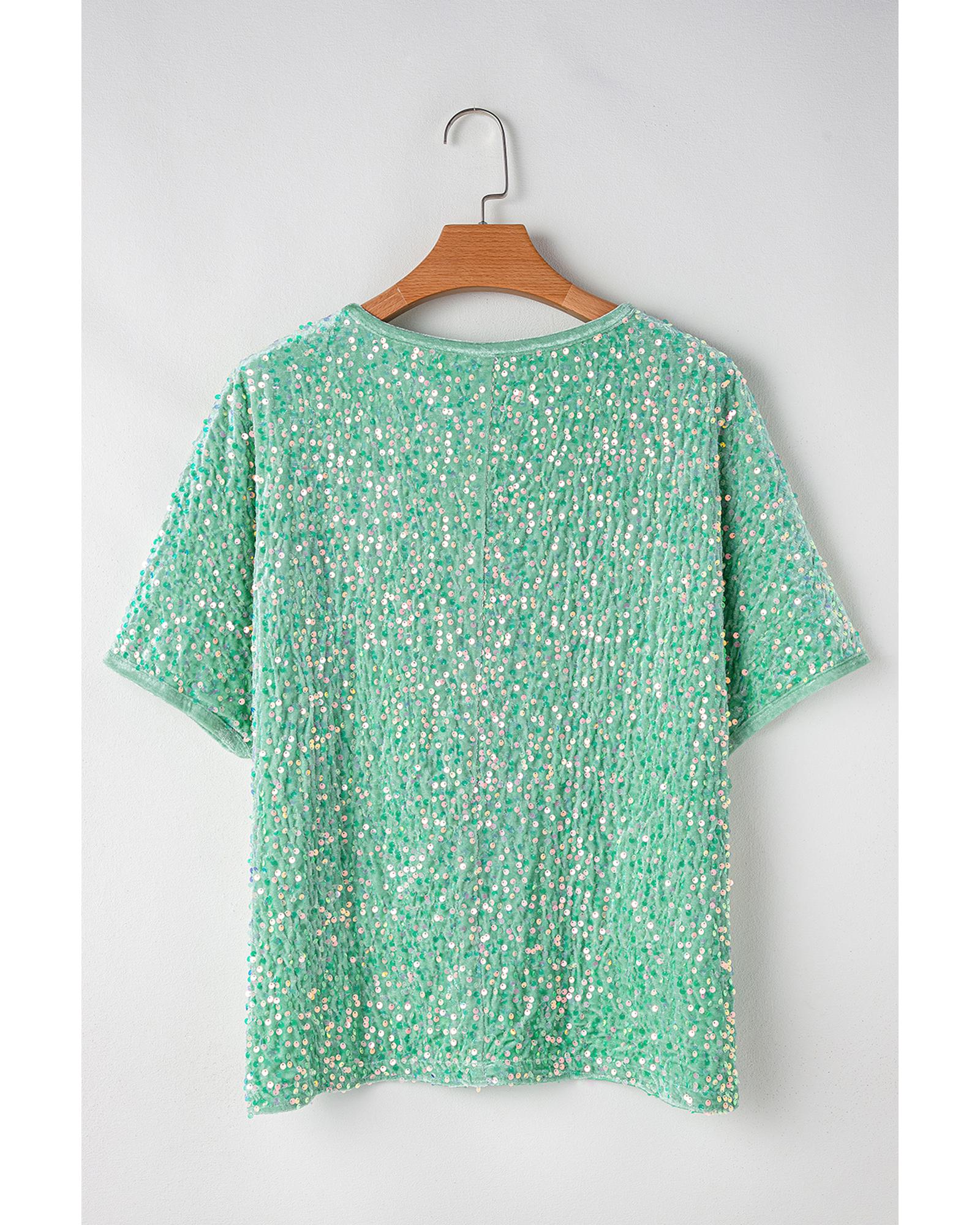 Moonlight Jade Sequin Batwing Sleeve V Neck Velvet Blouse – XL
