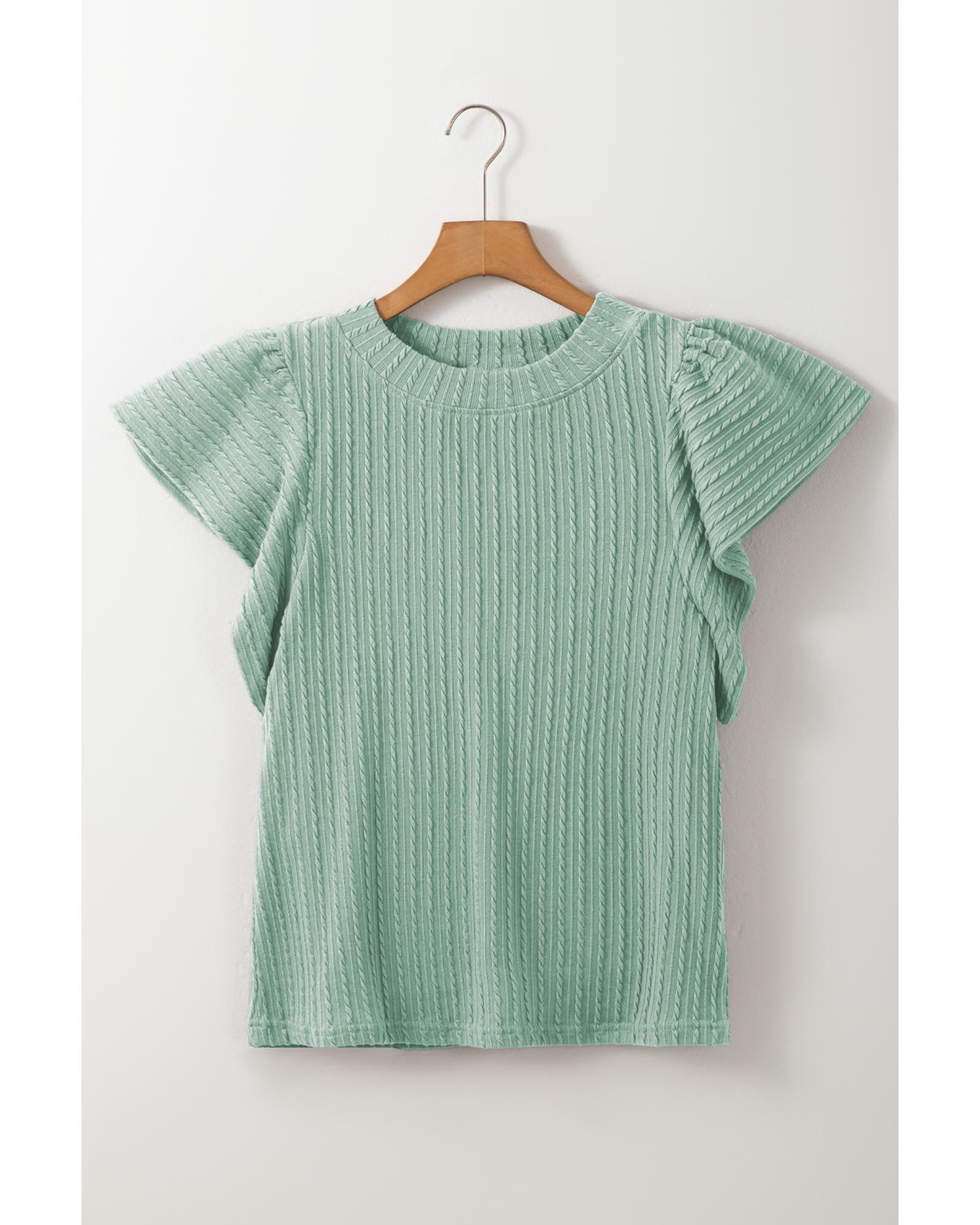 Moonlight Jade Solid Color Textured Flutter Sleeve Top – XL