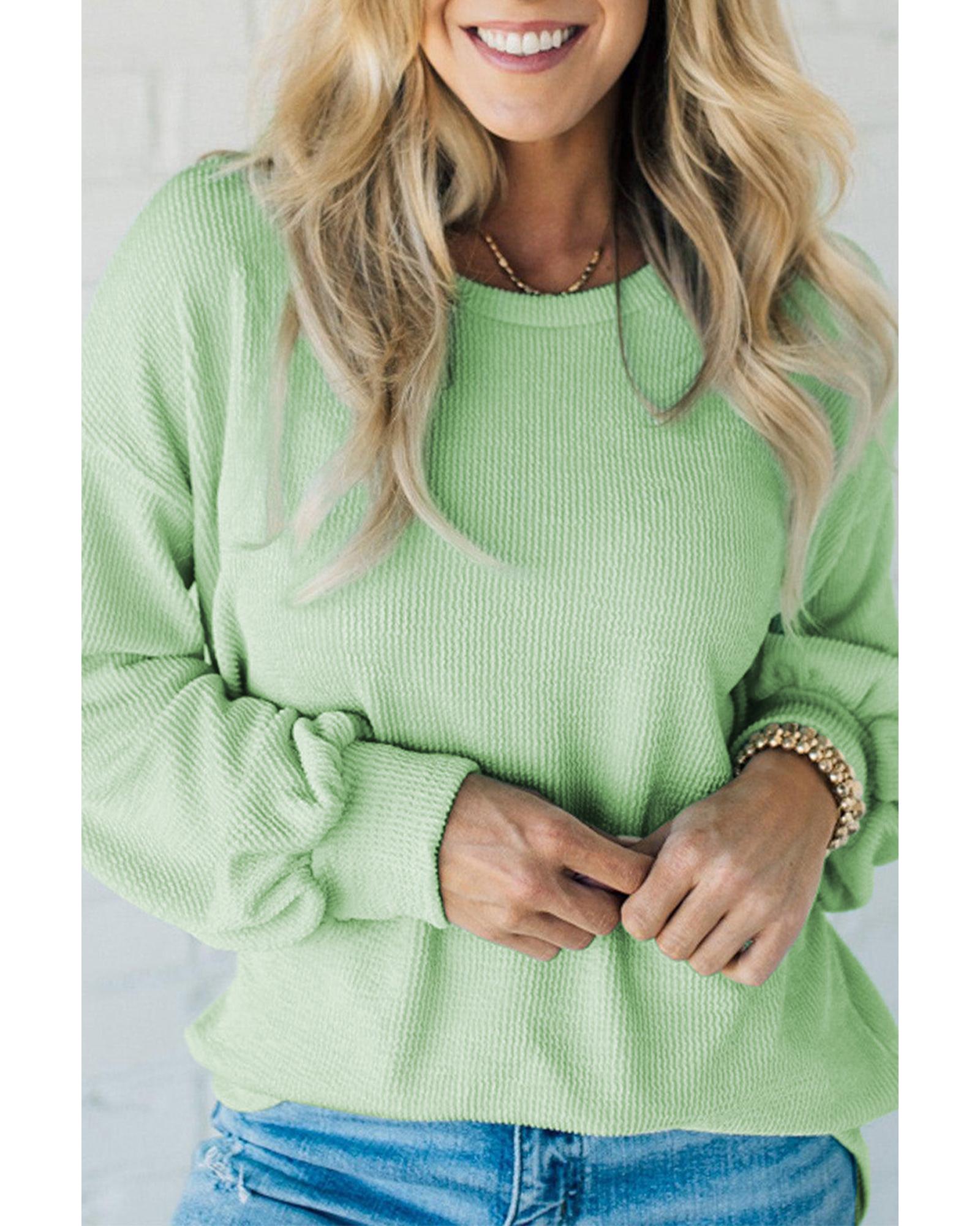 Moonlight Jade Solid Cord Ribbed Drop Shoulder Pullover Top – M