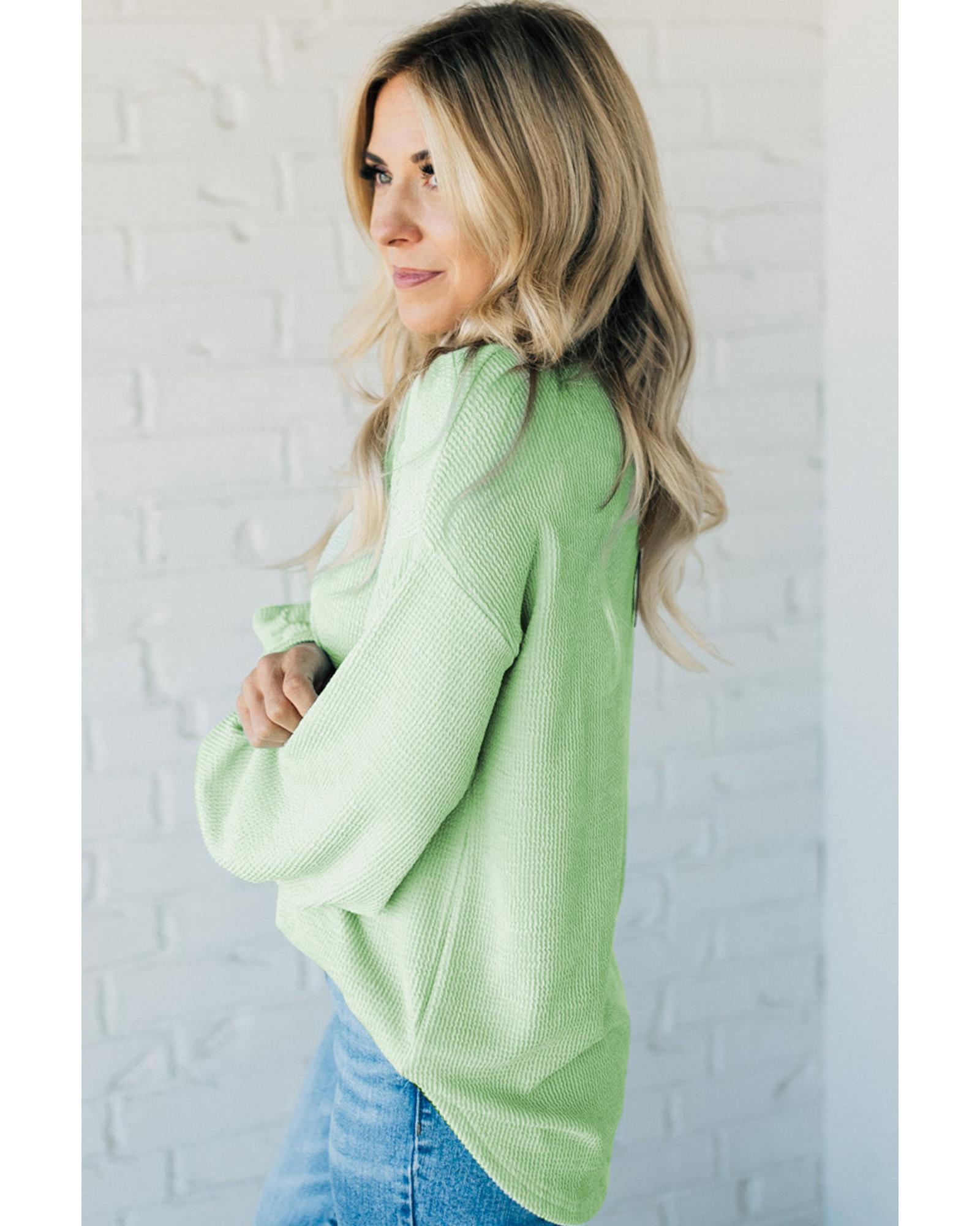Moonlight Jade Solid Cord Ribbed Drop Shoulder Pullover Top – S