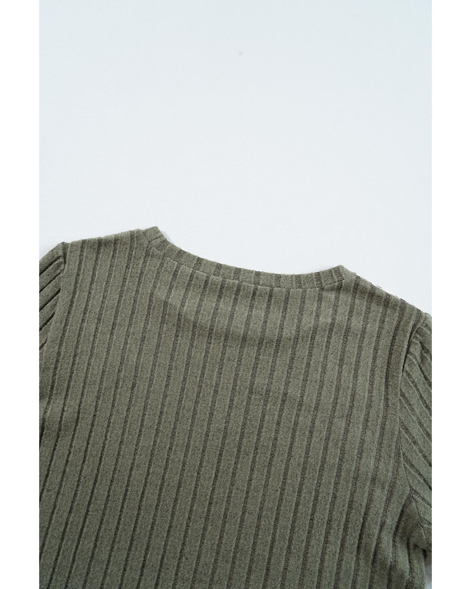 Moss Green Leopard Print Crochet Patchwork Rib Textured Knit Top – L