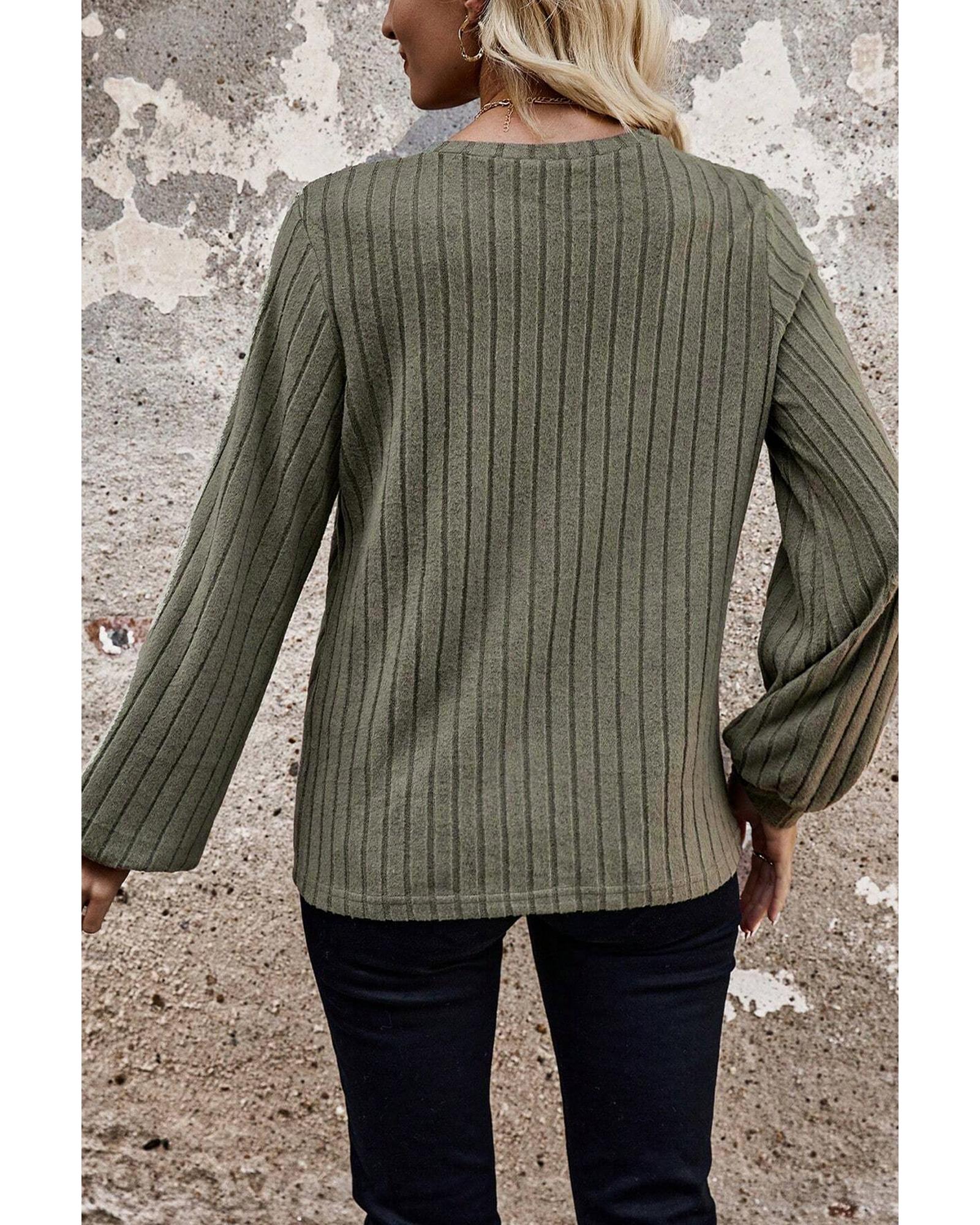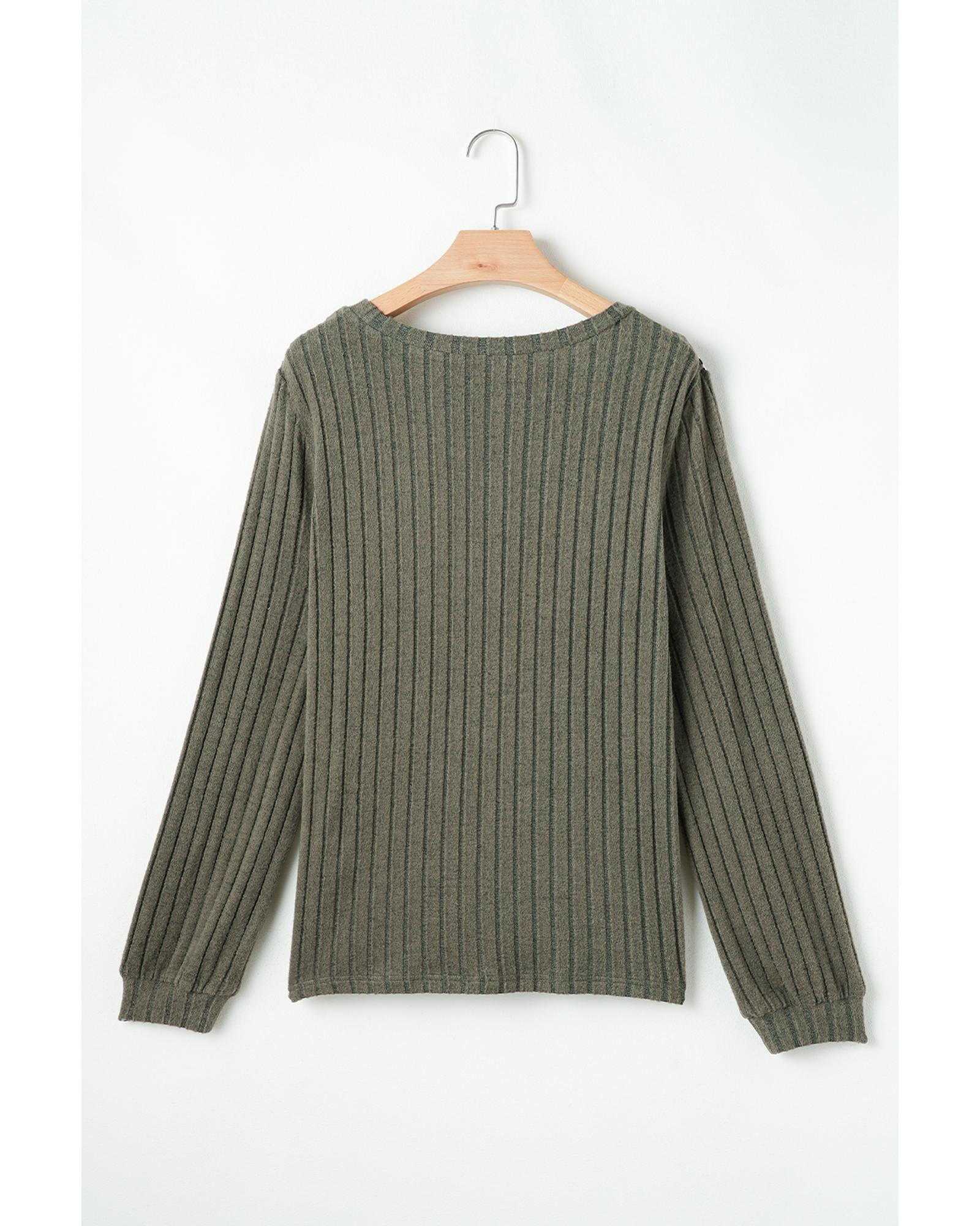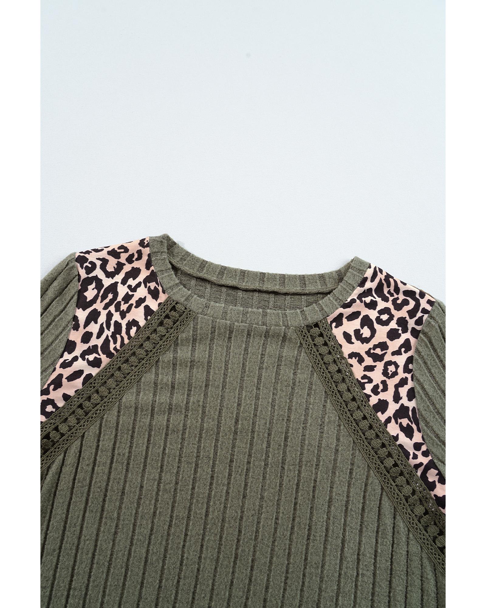 Moss Green Leopard Print Crochet Patchwork Rib Textured Knit Top – M