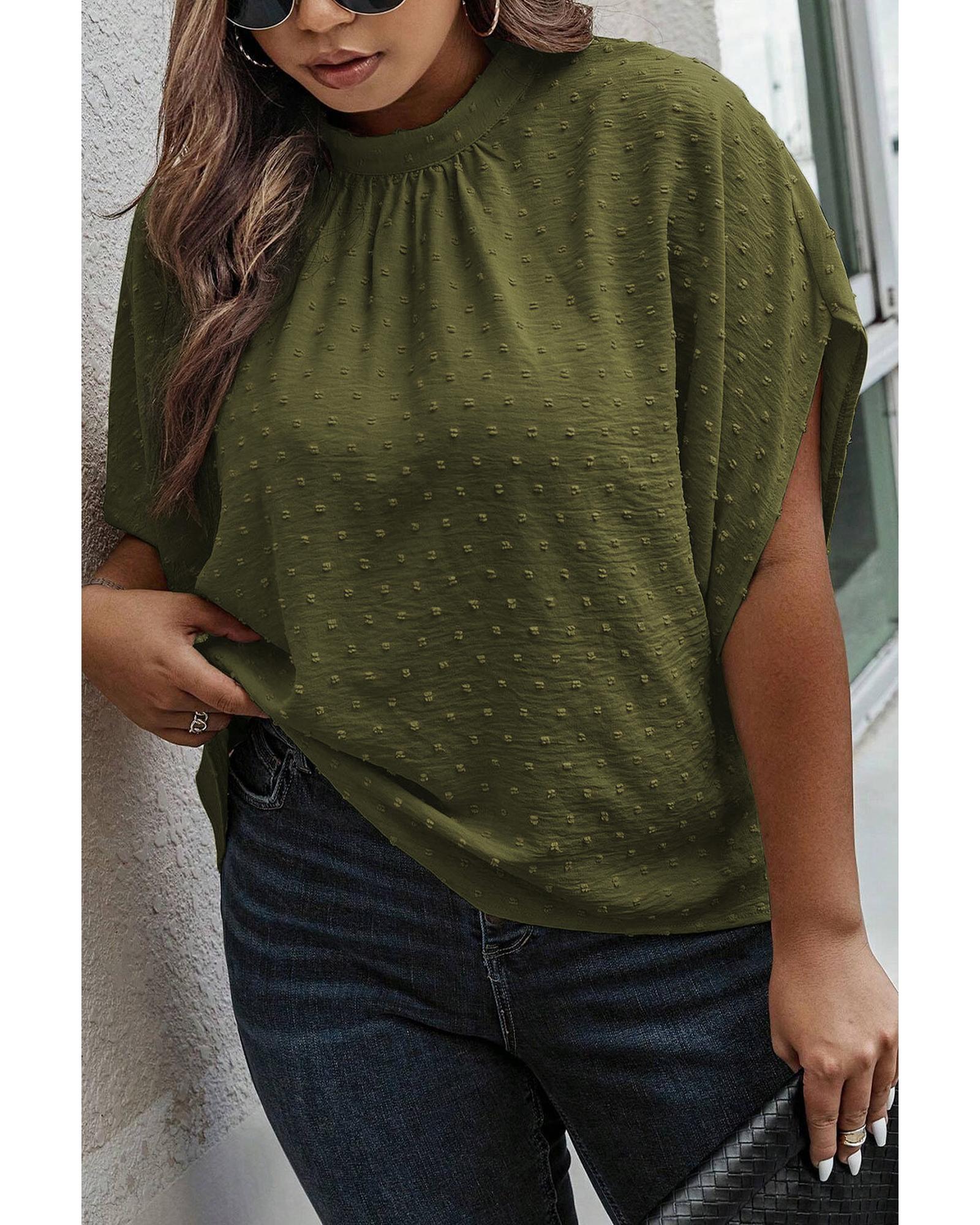 Moss Green Plus Size Swiss Dot Mock Neck Tied Nape Top – 1X
