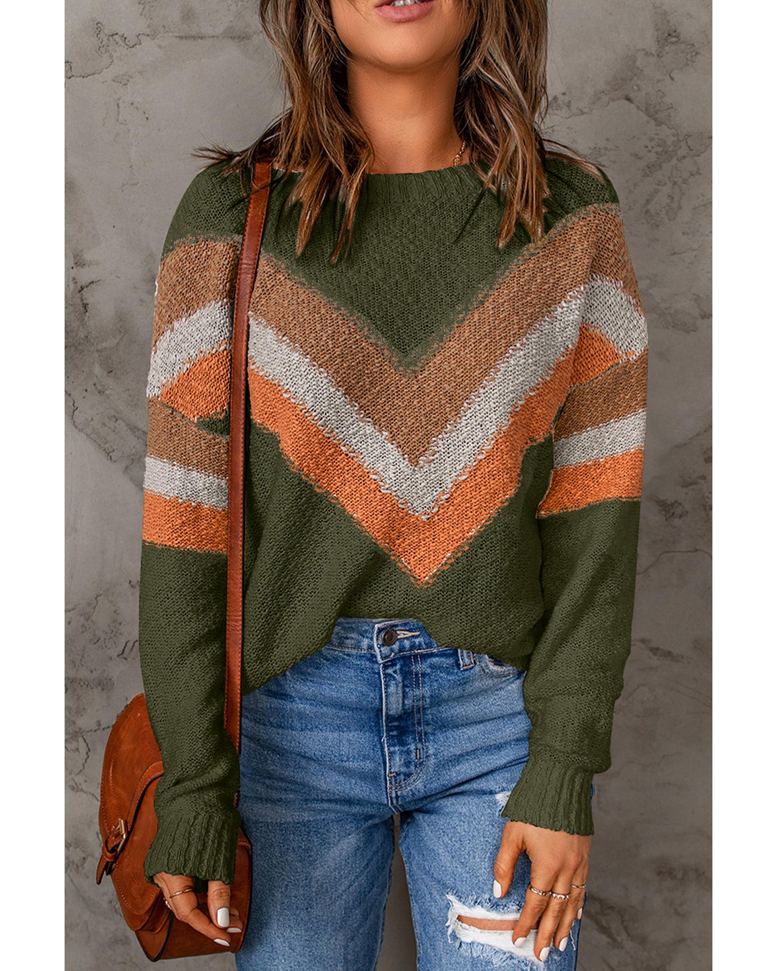 - Multicolor Chevron Striped Drop Shoulder Sweater