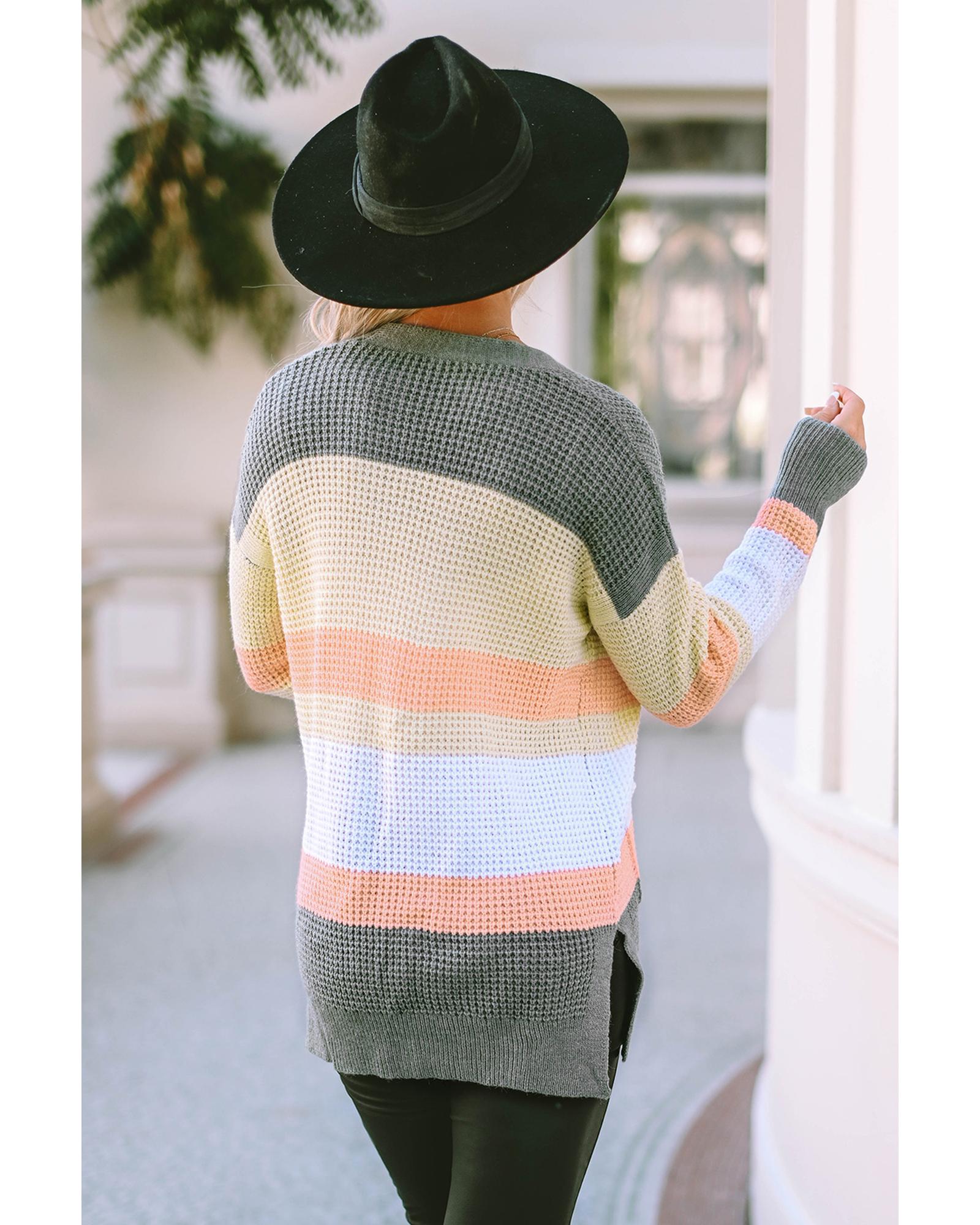 Multicolor Color Block Striped Pocketed Open Cardigan – L