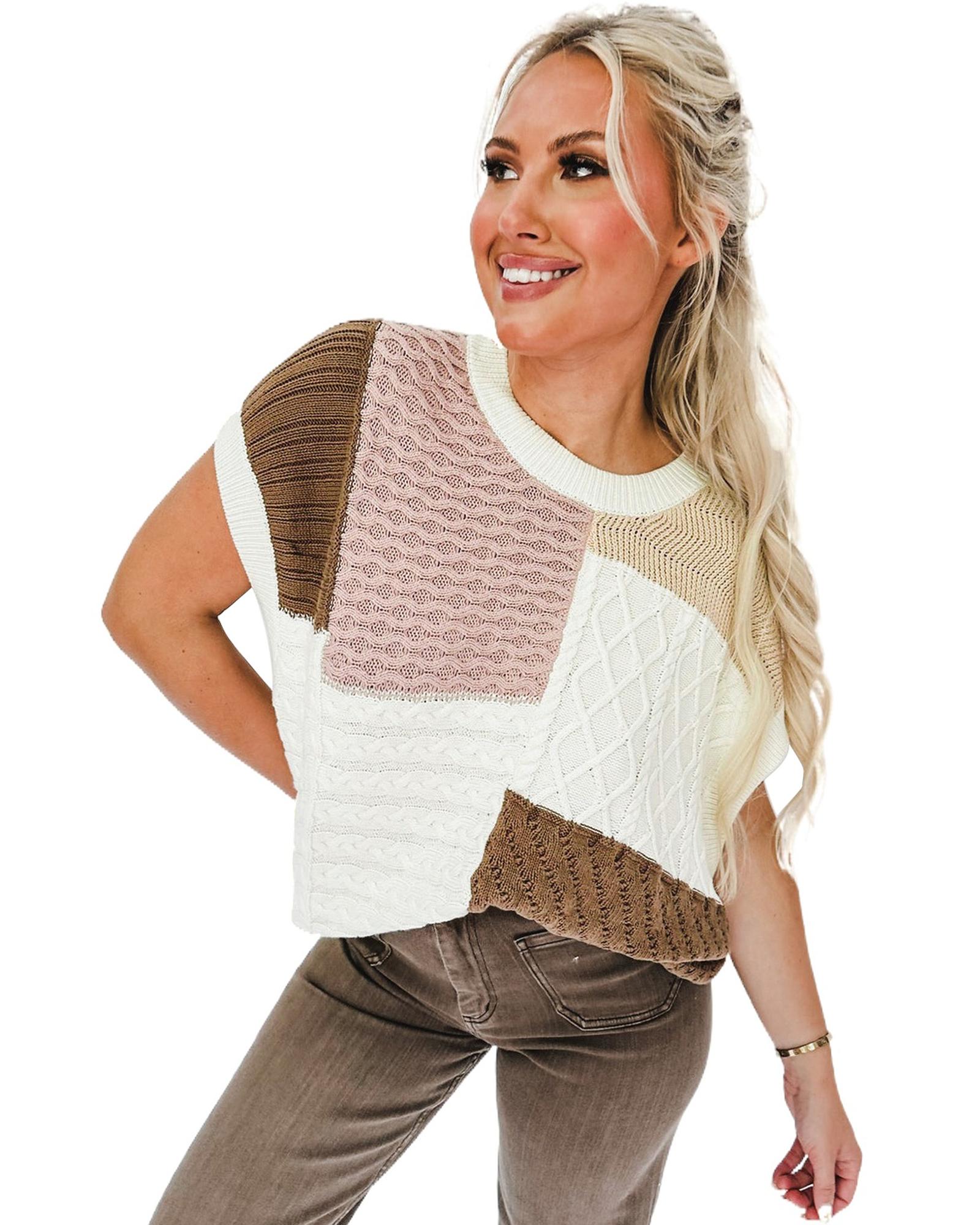 Multicolor Colorblock Mix Textured Sweater Tee – M