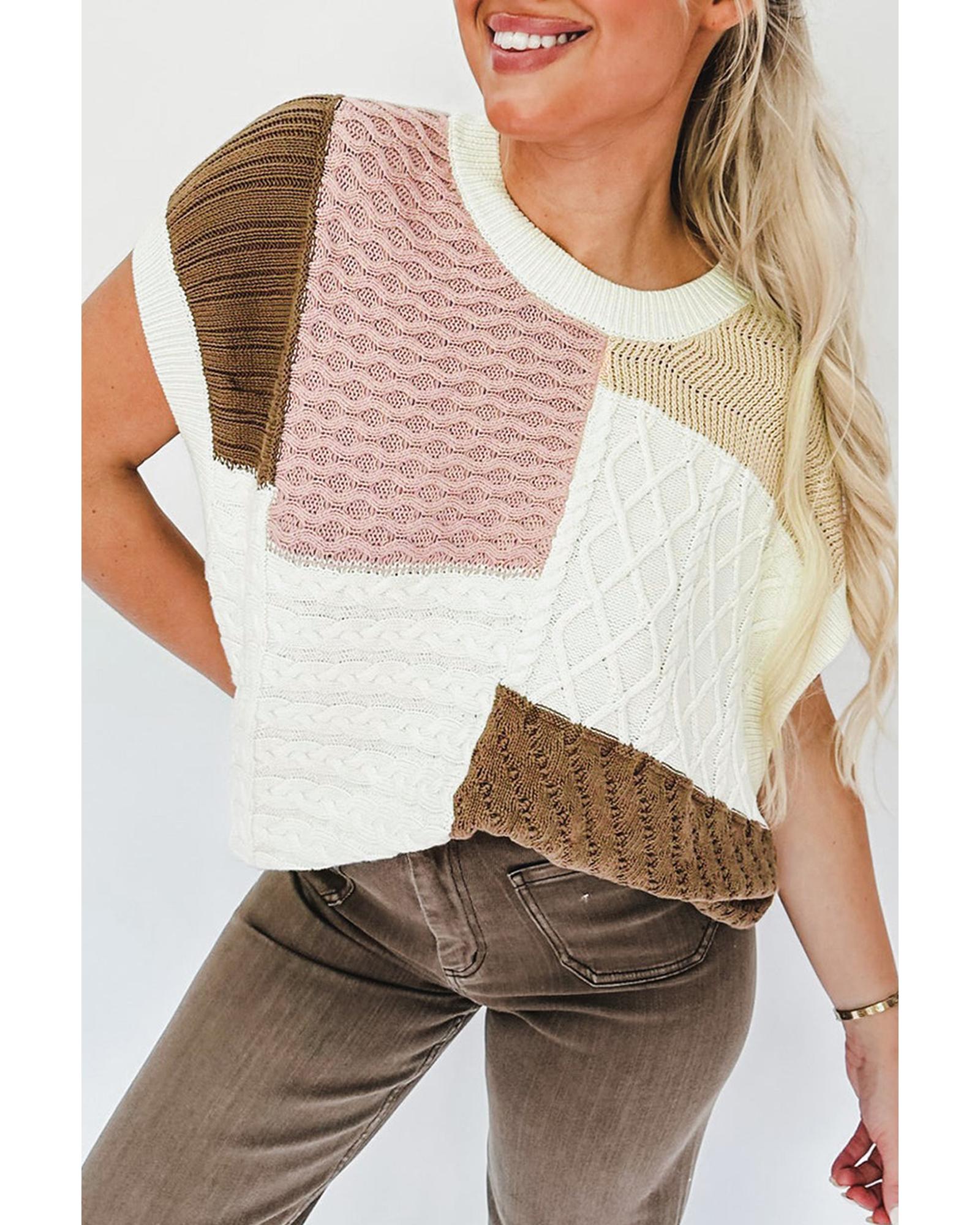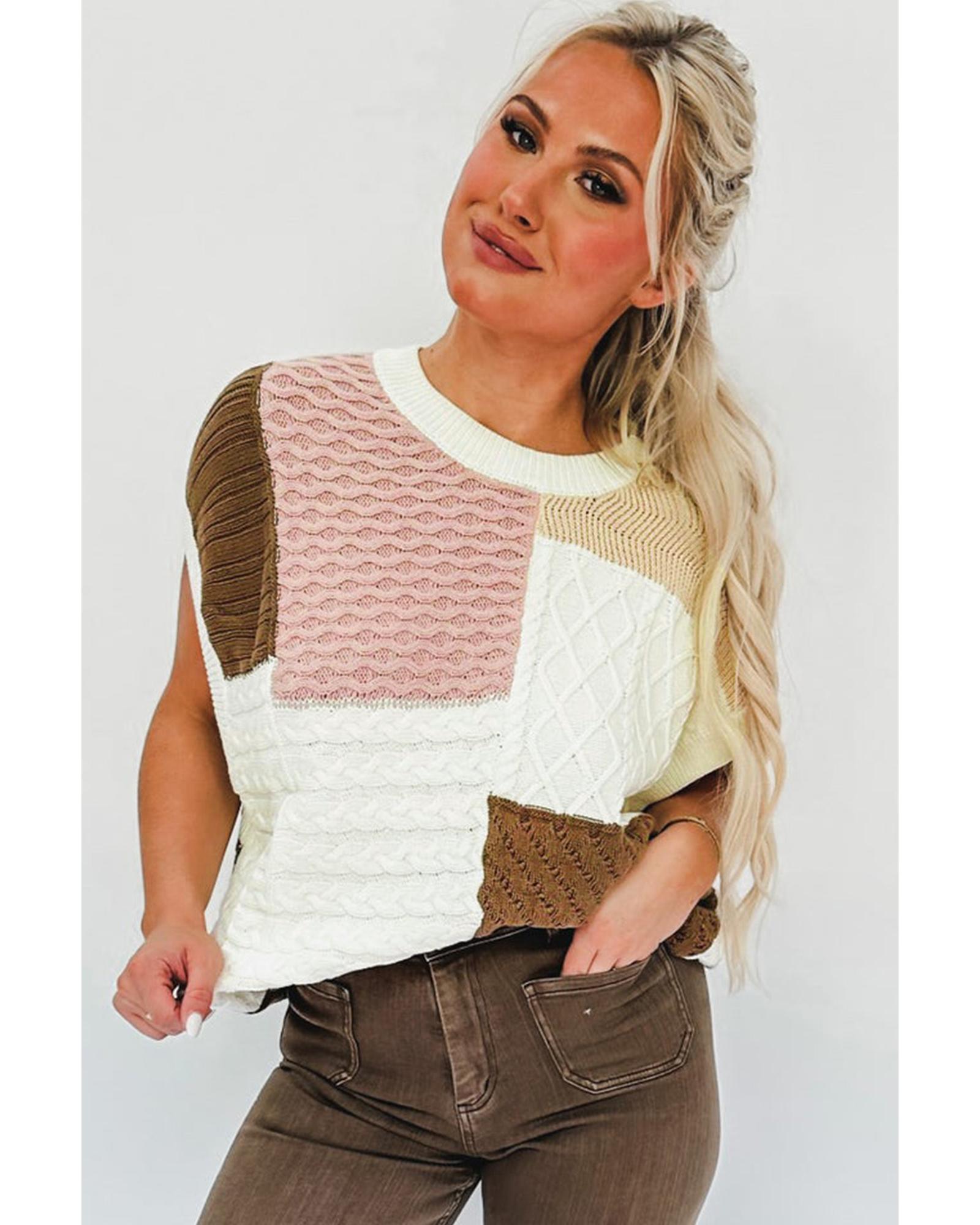 Multicolor Colorblock Mix Textured Sweater Tee – XL