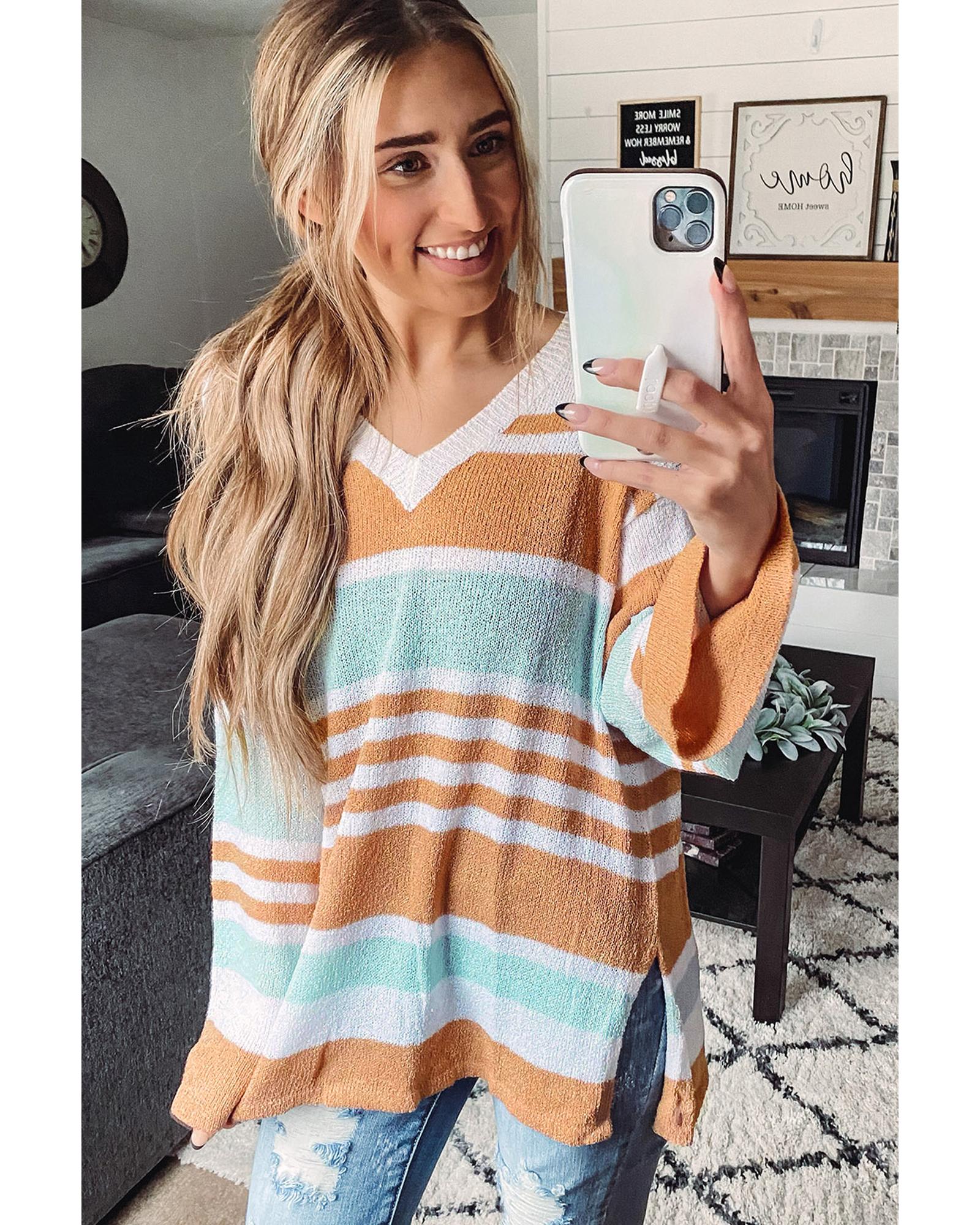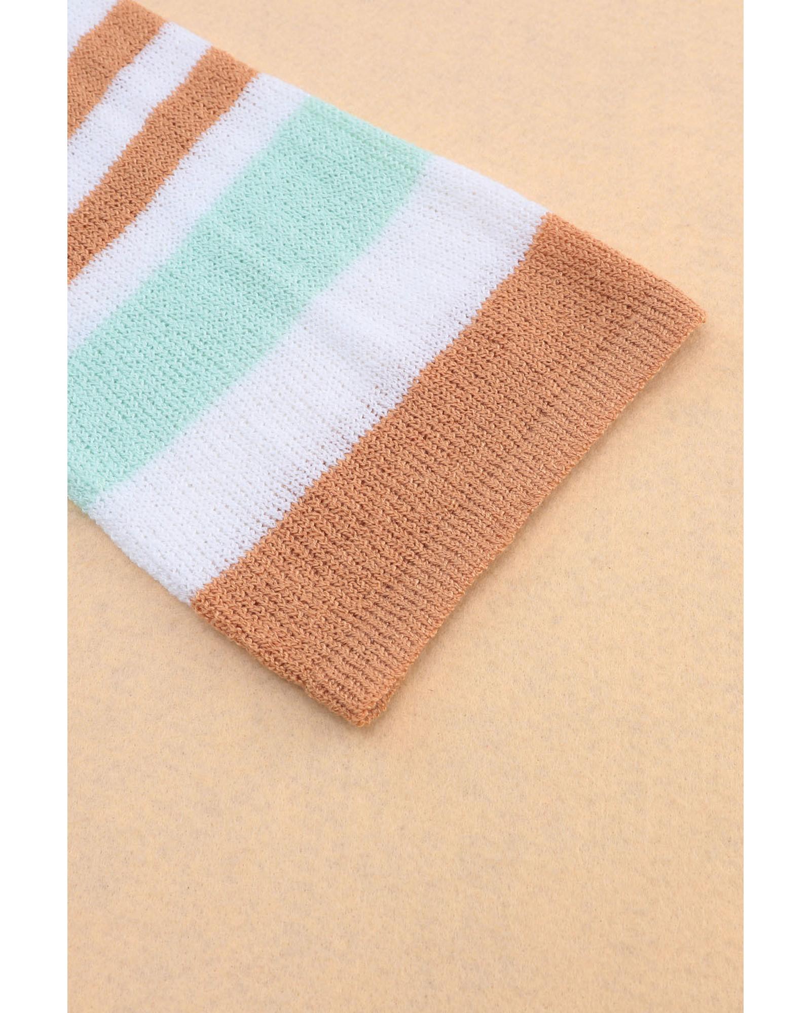 Multicolor Colorblock Stripe Long Sleeve Split Sweater – M