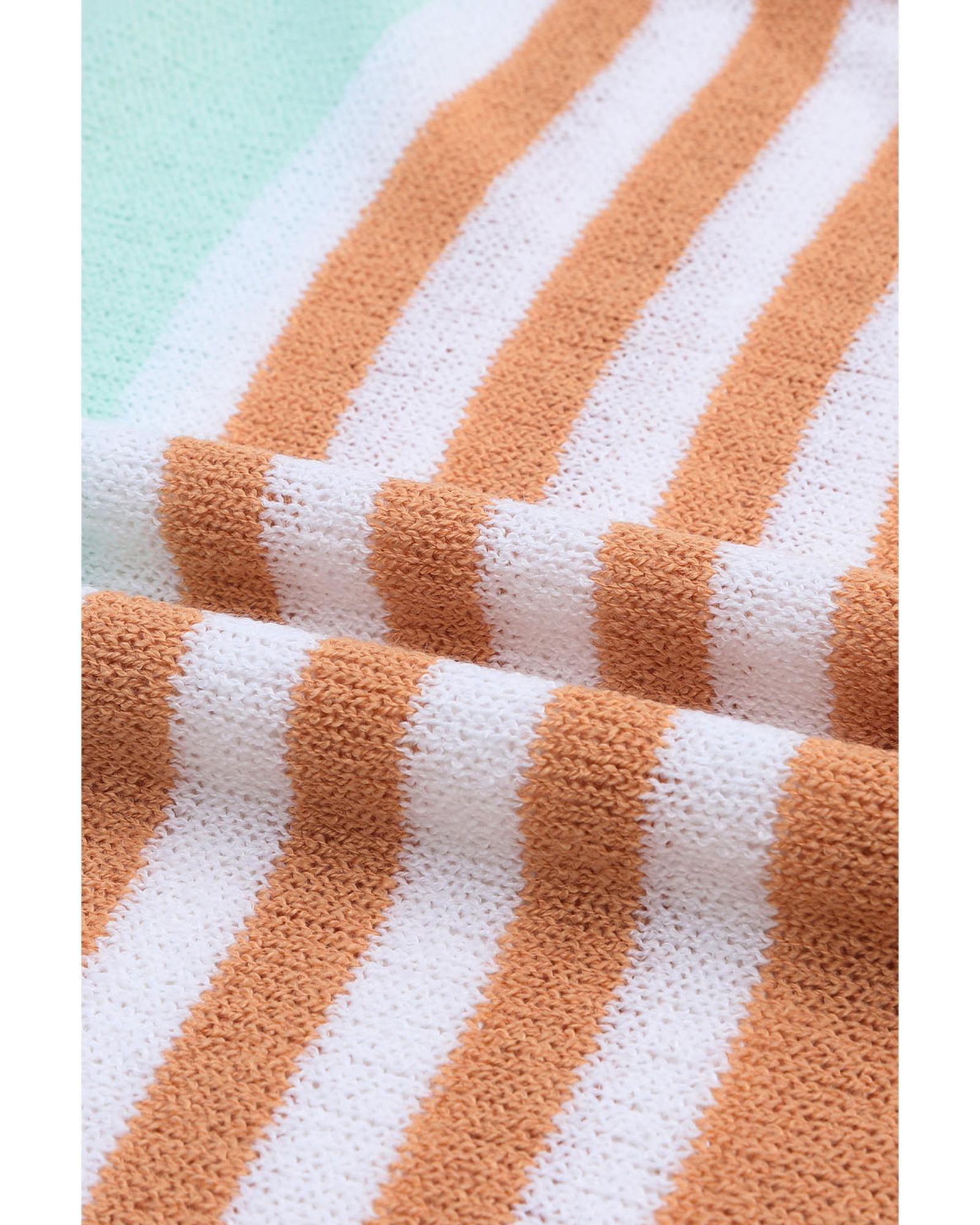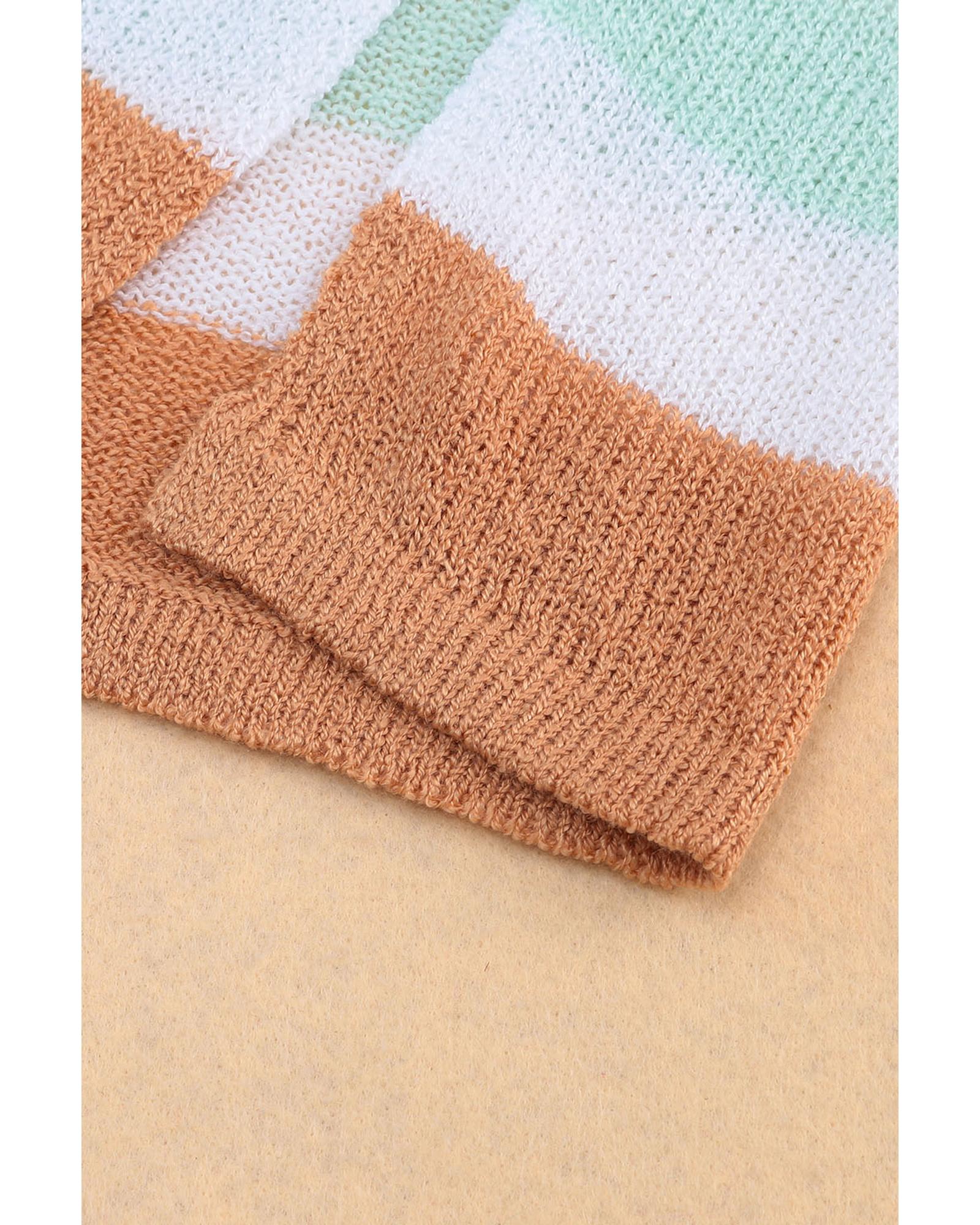 Multicolor Colorblock Stripe Long Sleeve Split Sweater – S