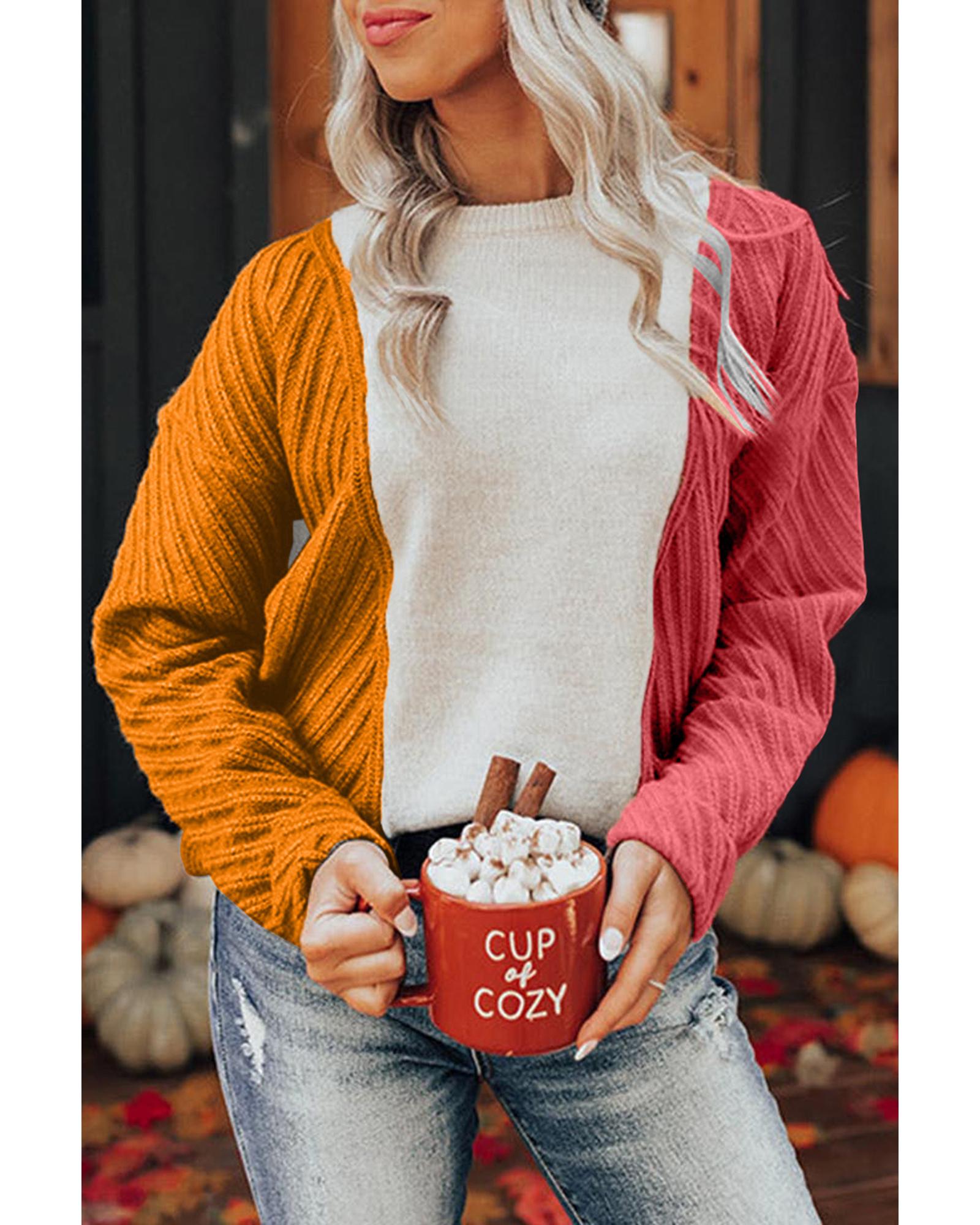 Multicolor Colorblock Textured Drop Shoulder Sweater – M