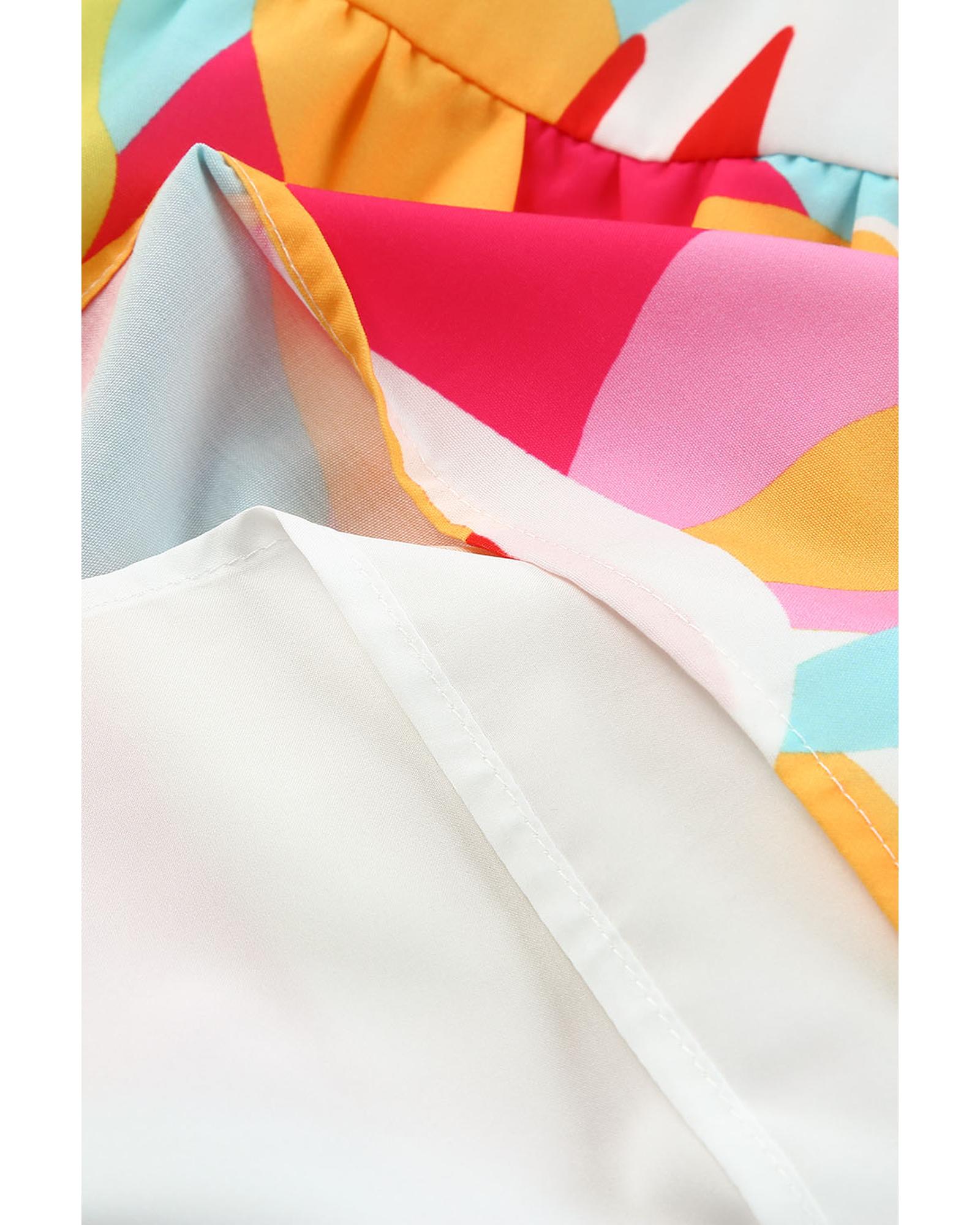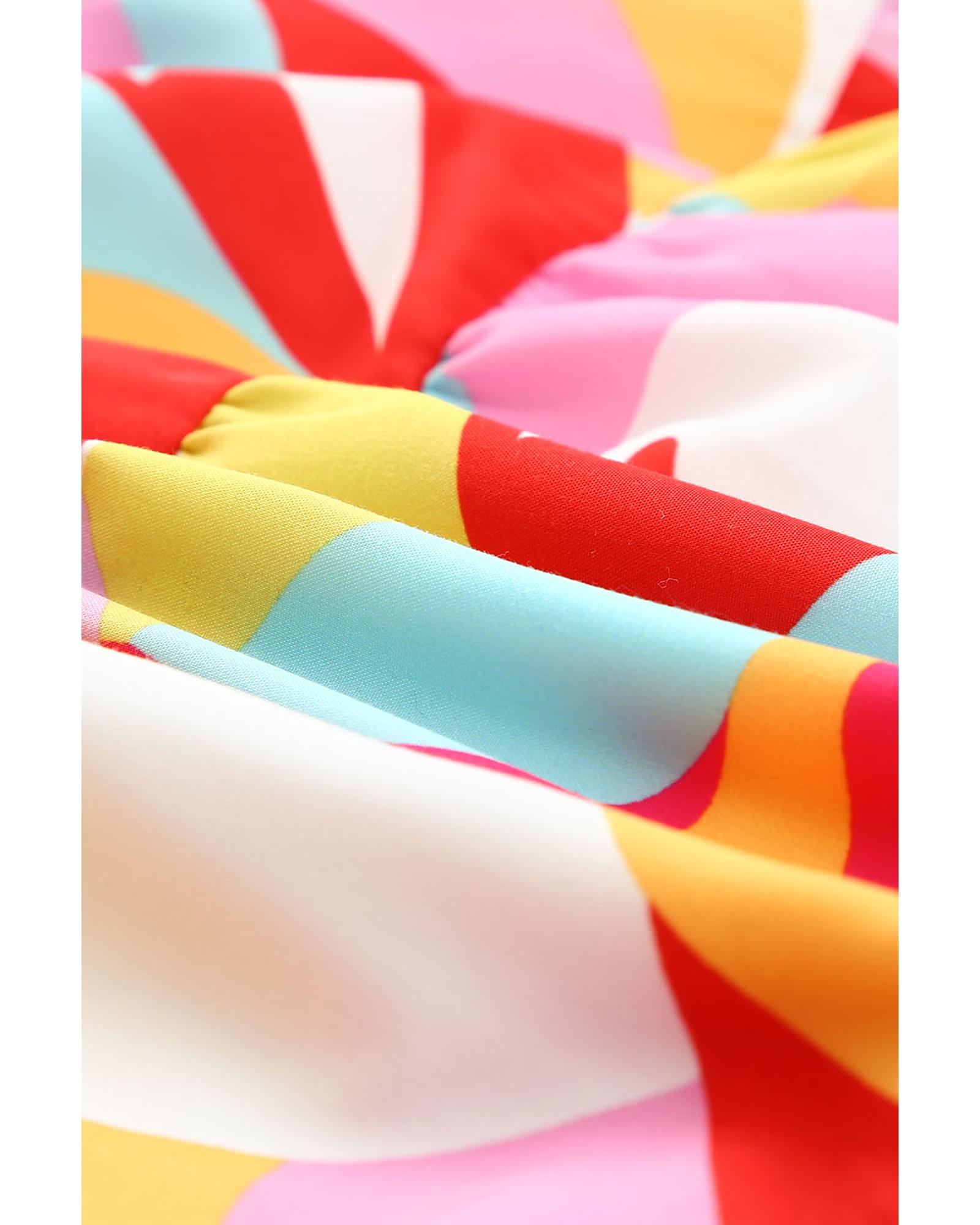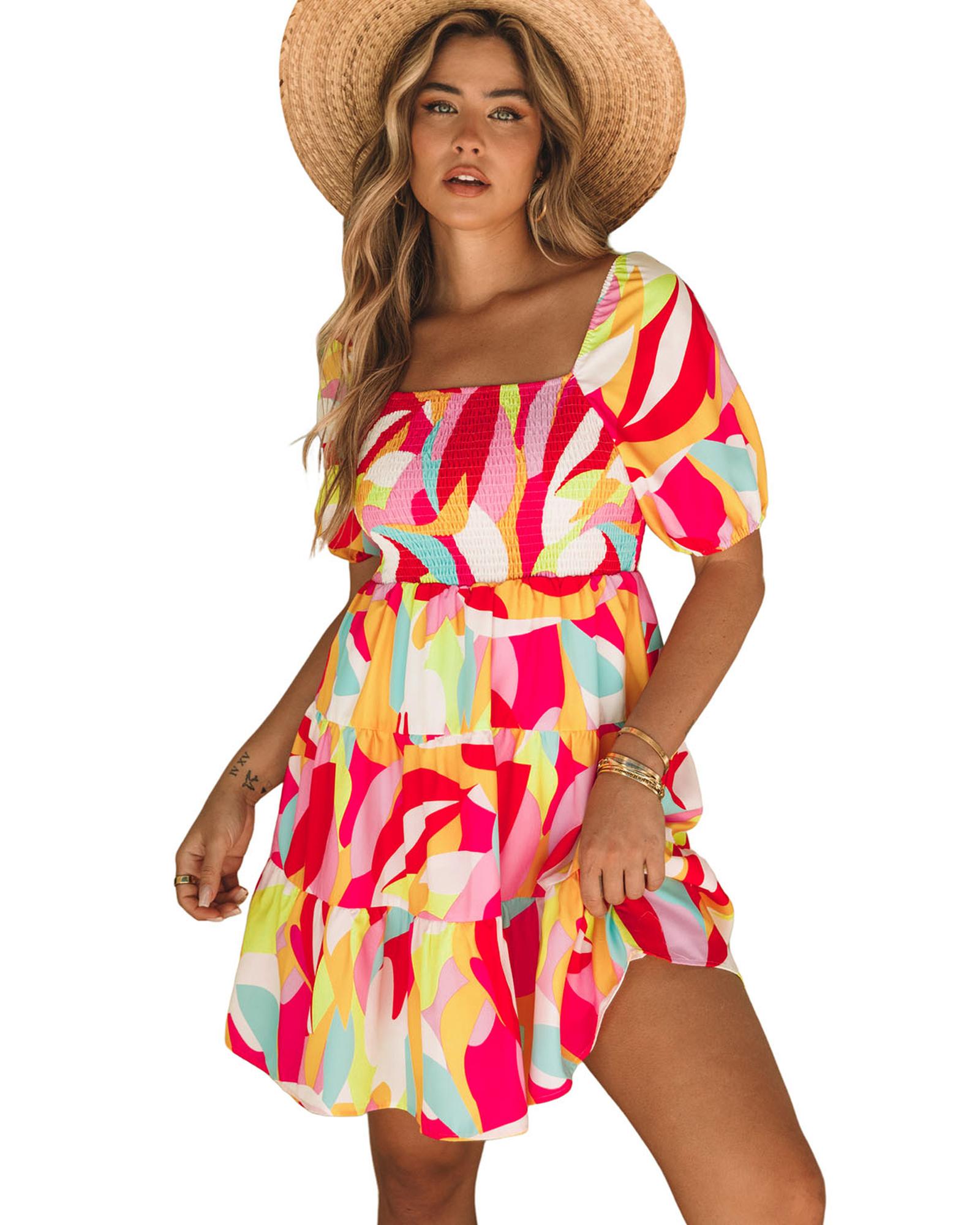 Multicolor Geometric Print Smocked Babydoll Mini Dress – L