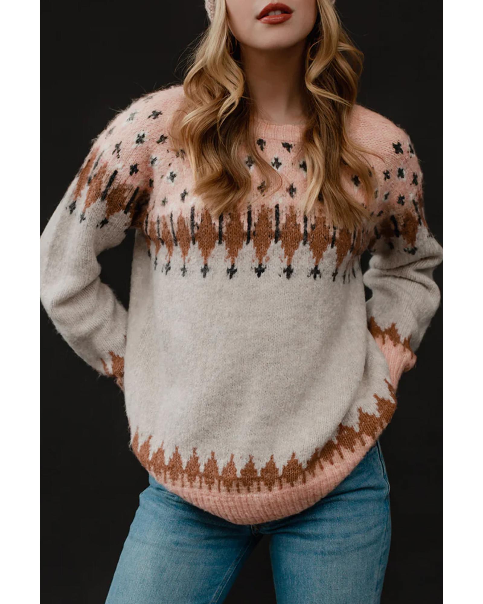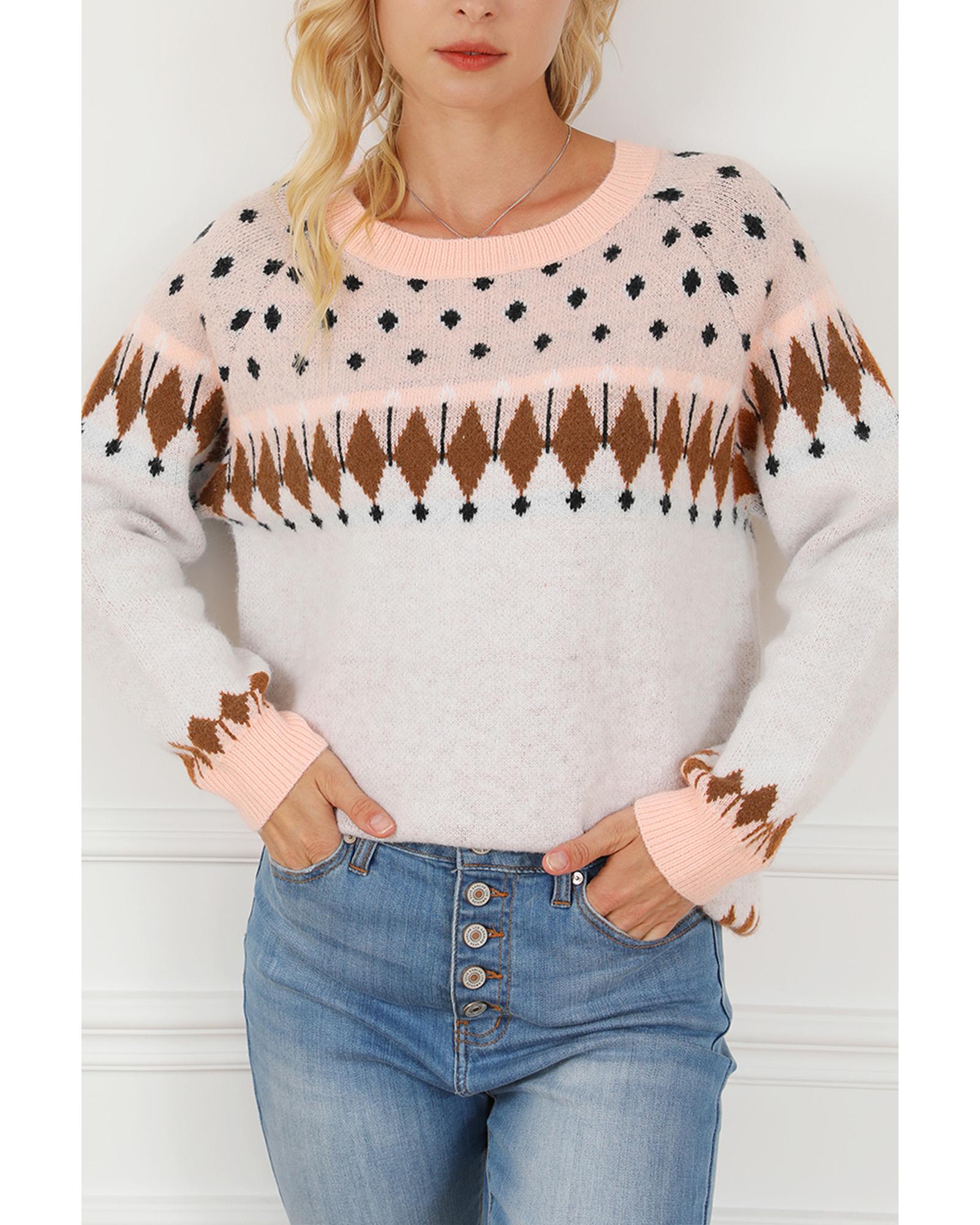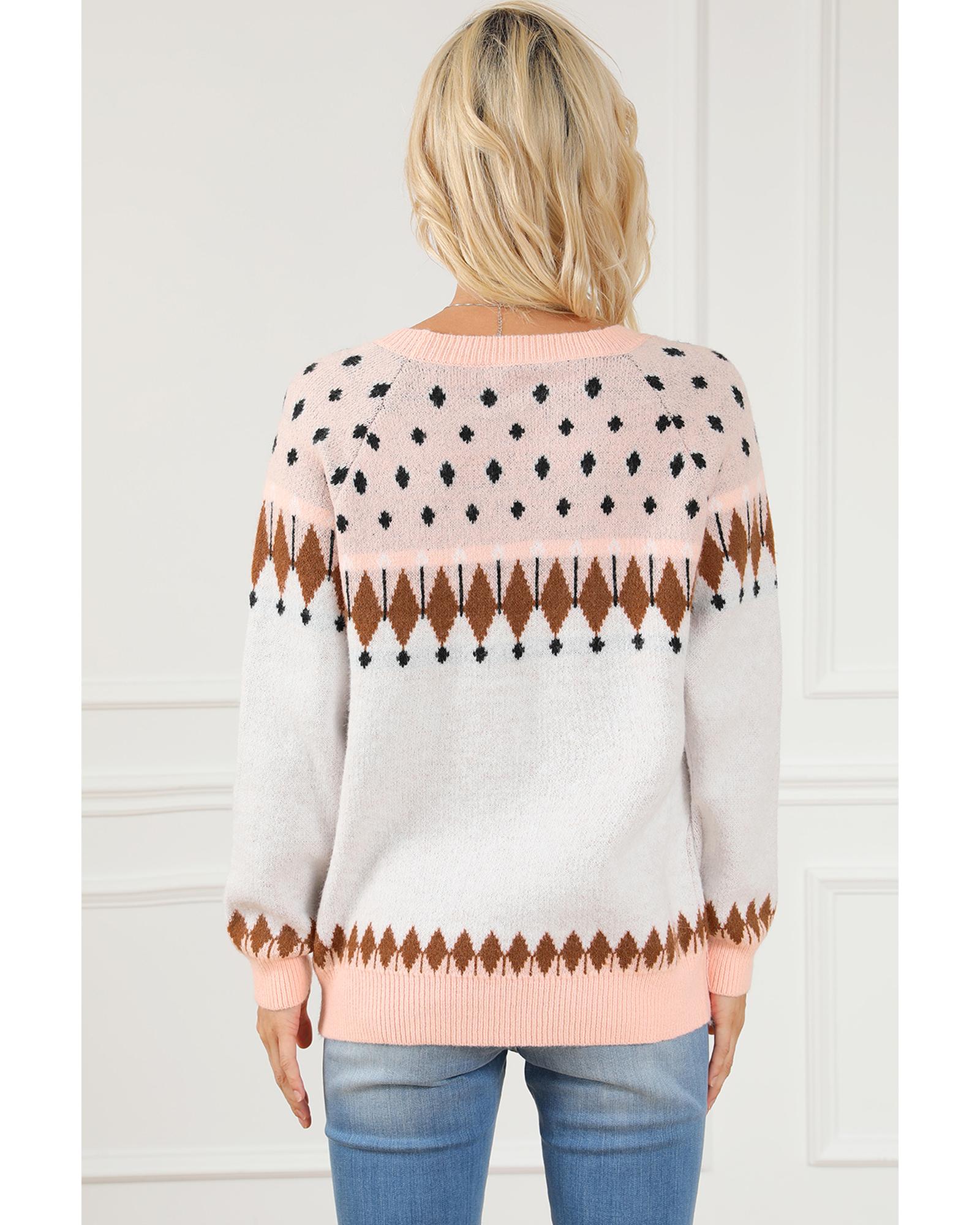 Multicolor Mixed Geometric Detail Raglan Sleeve Sweater – M