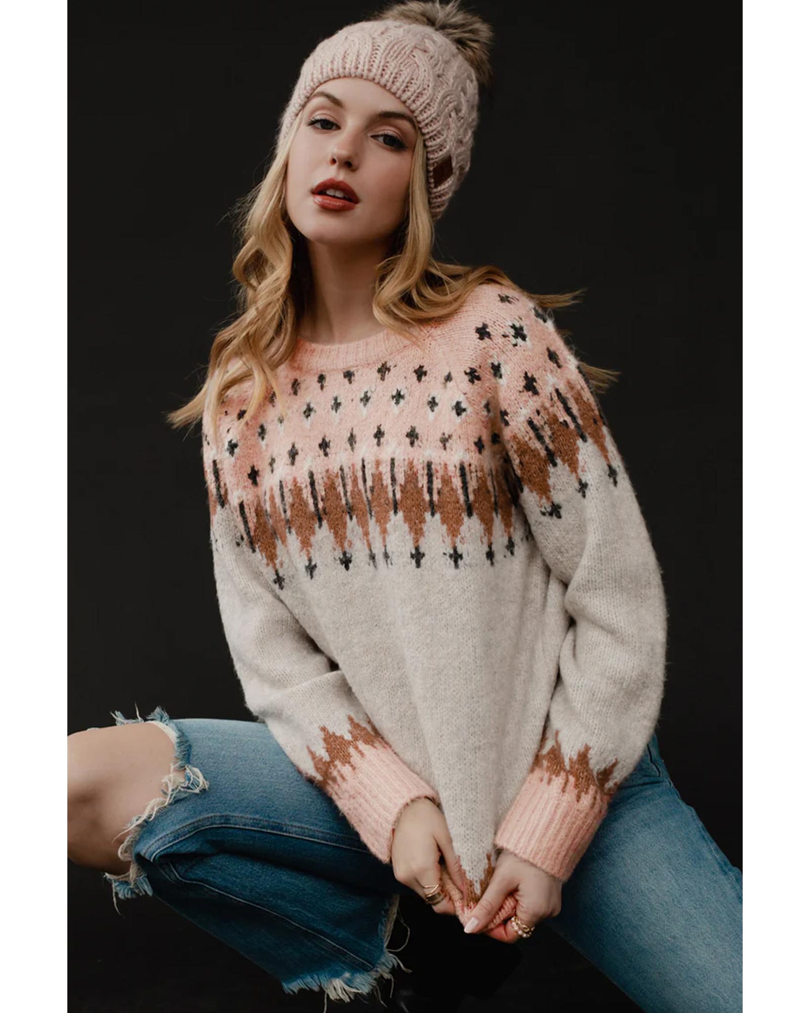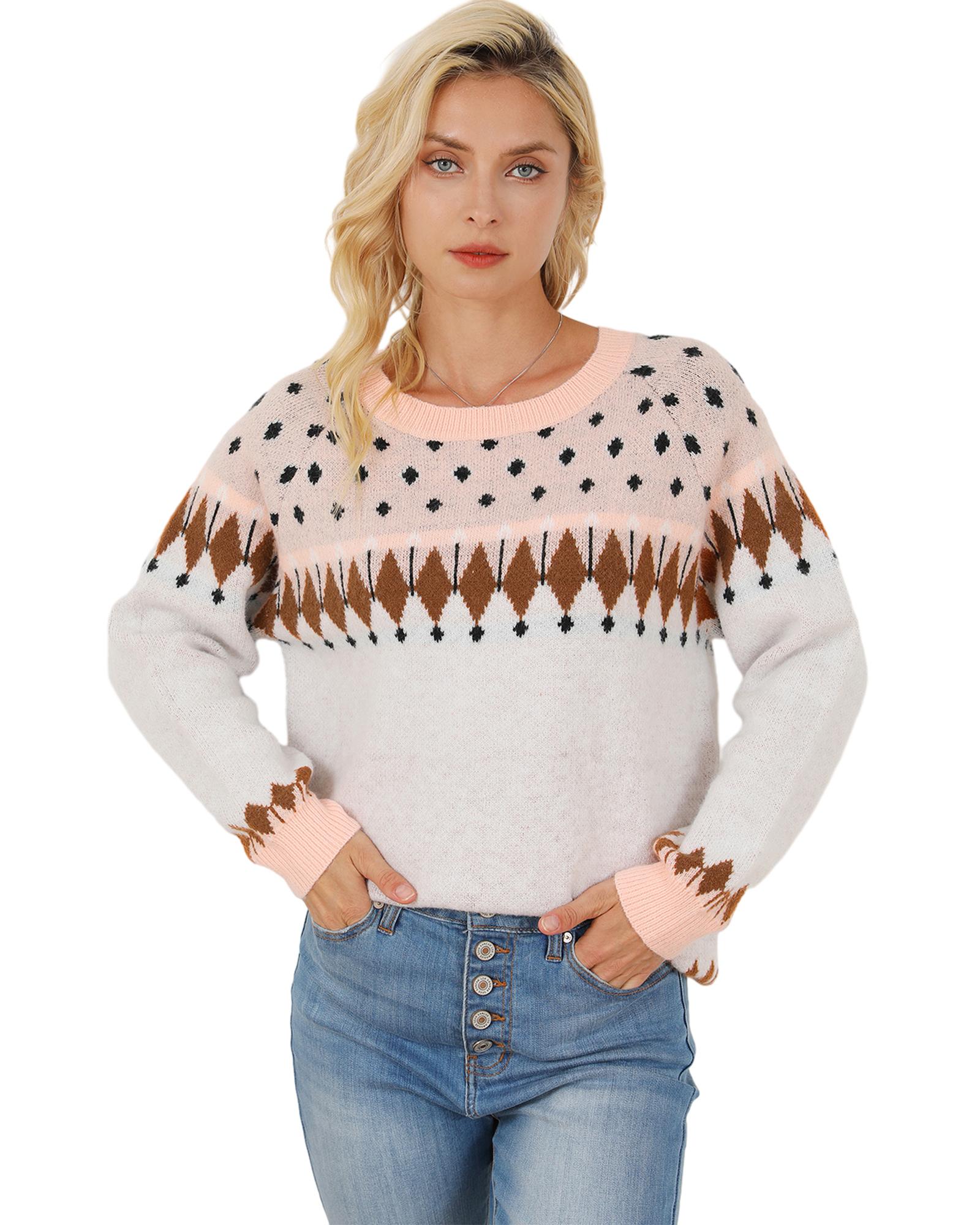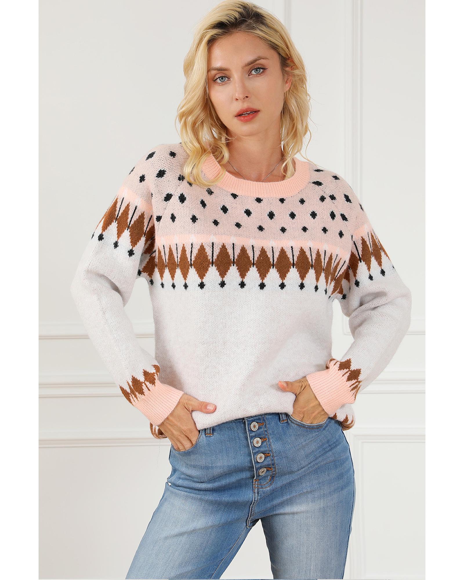 Multicolor Mixed Geometric Detail Raglan Sleeve Sweater – M