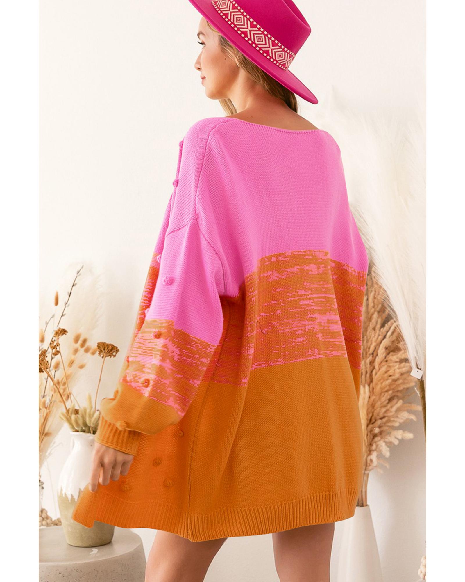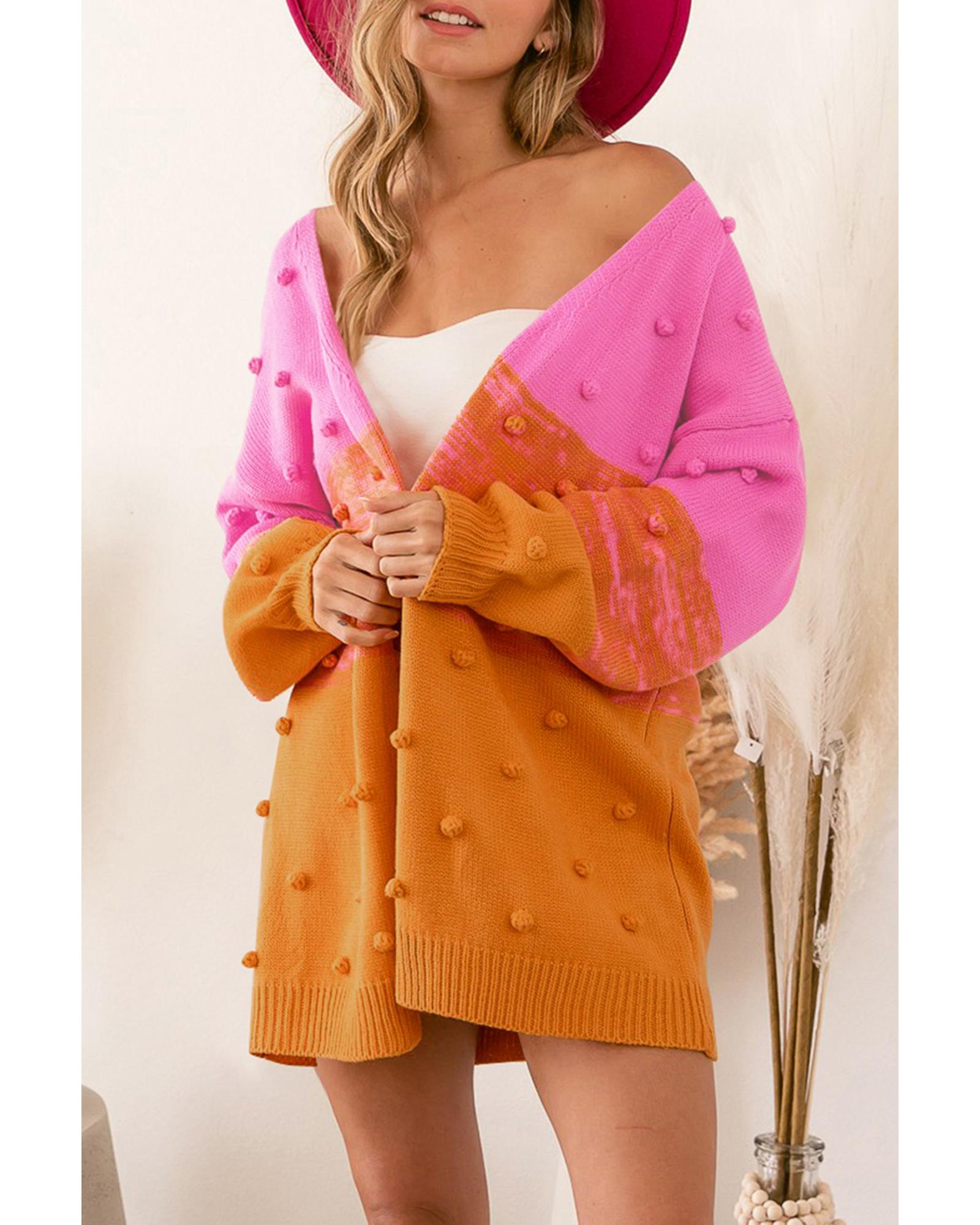 - Multicolor pompom color block open front cardigan