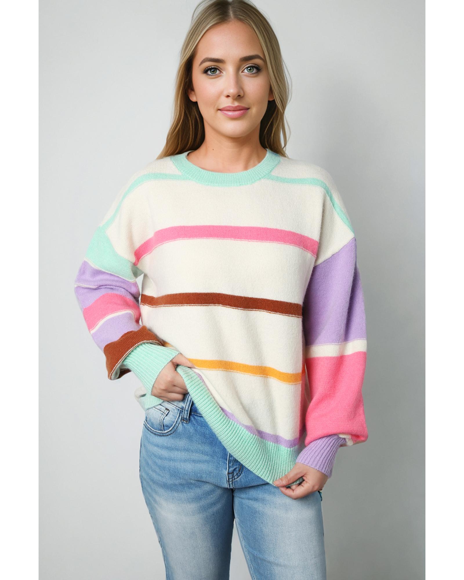 Multicolor Striped Colorblock Drop Shoulder Sweater – M
