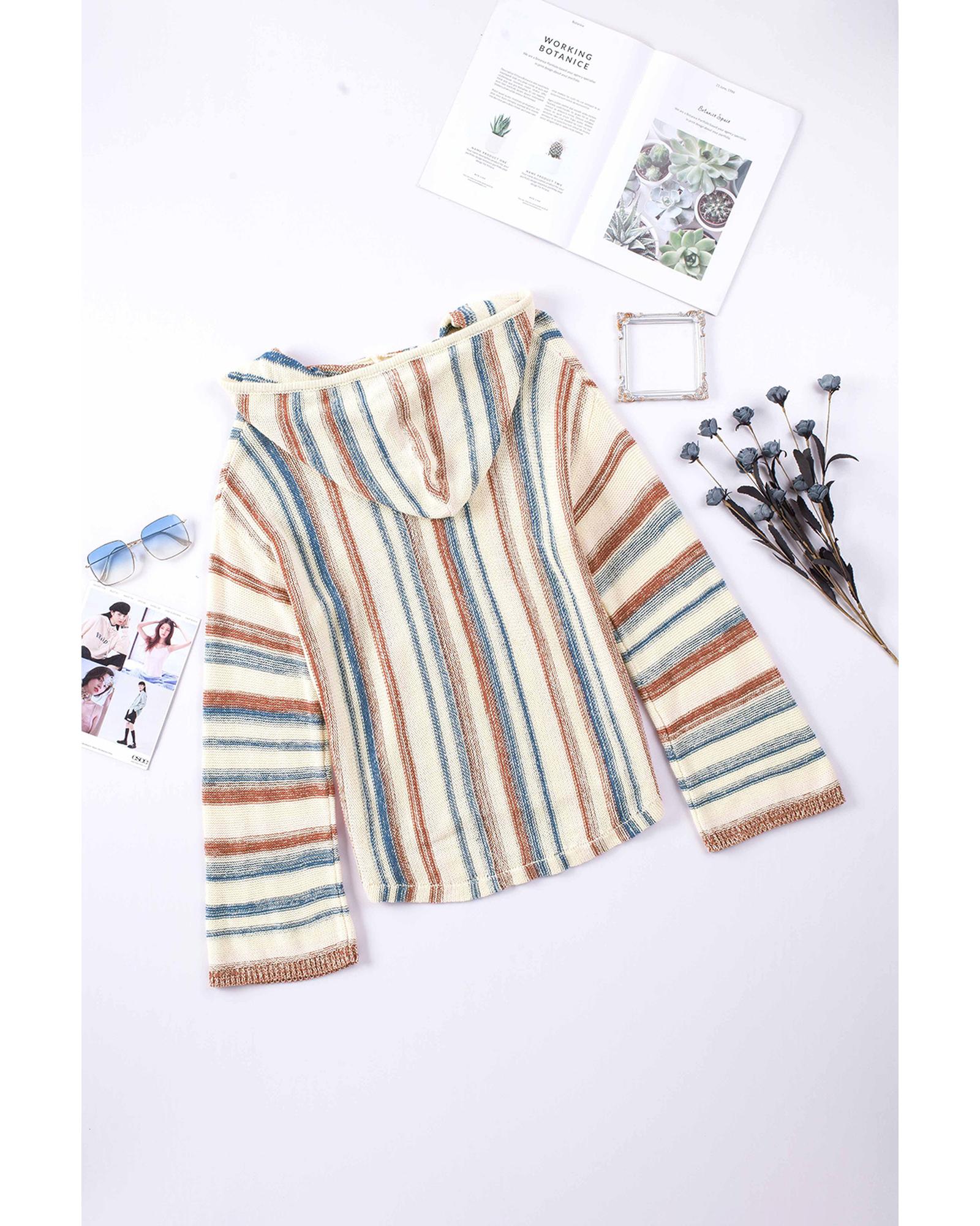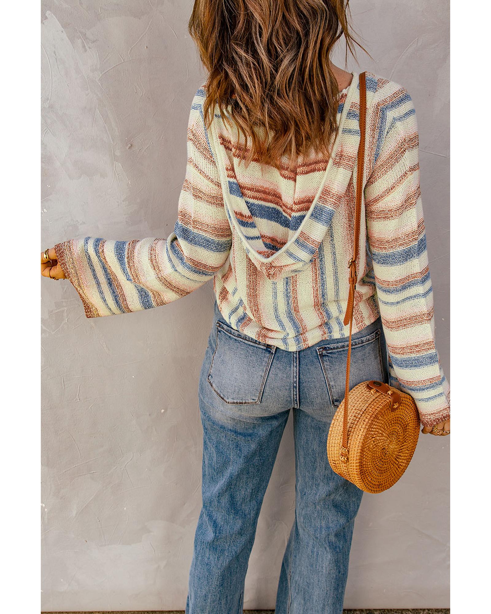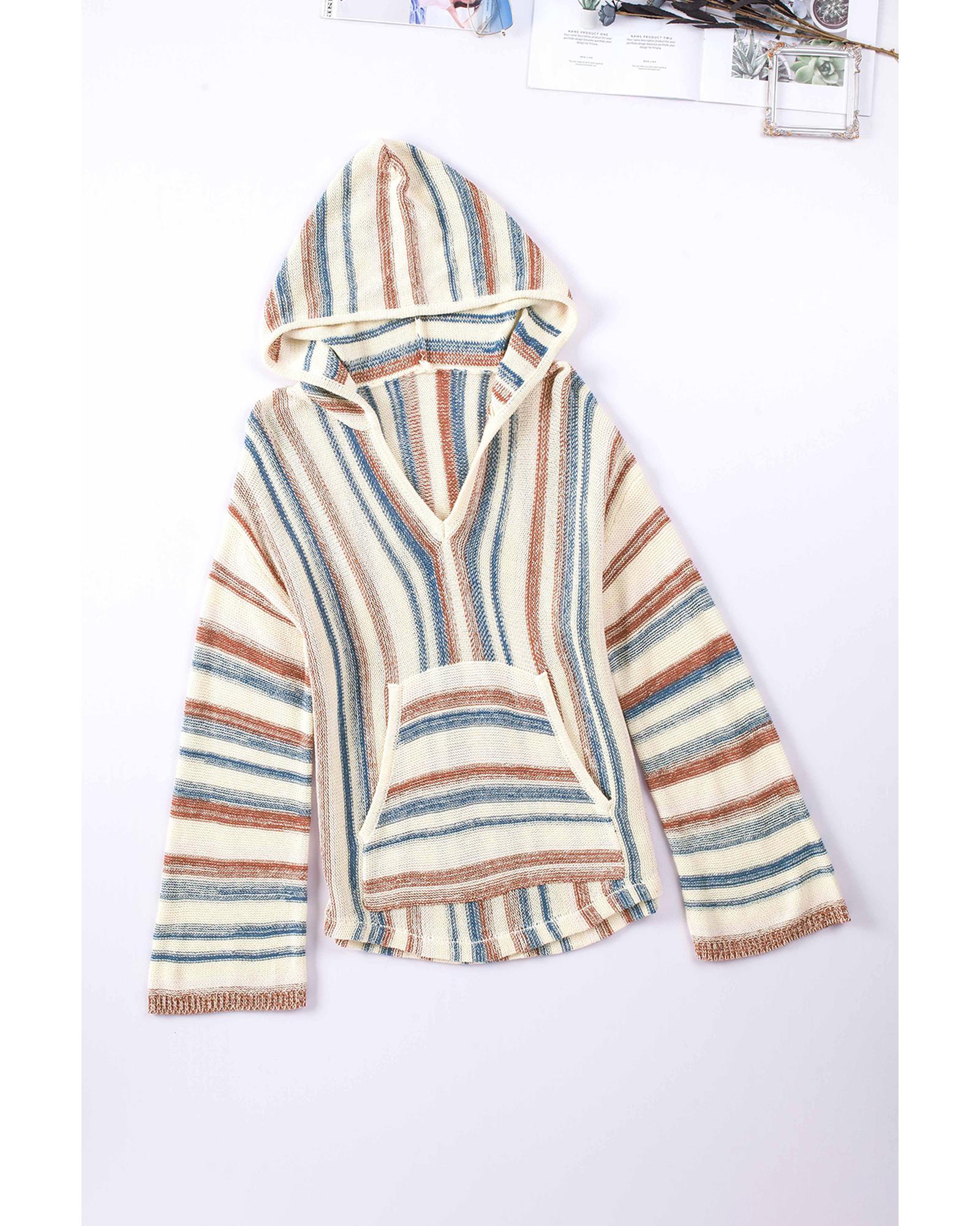 Multicolor Striped Knit Kangaroo Pocket Hooded Sweater – M