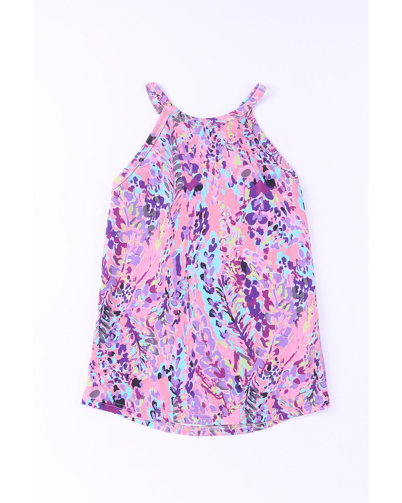 - Multicolor Tropical Floral Print Racerback Tank Top