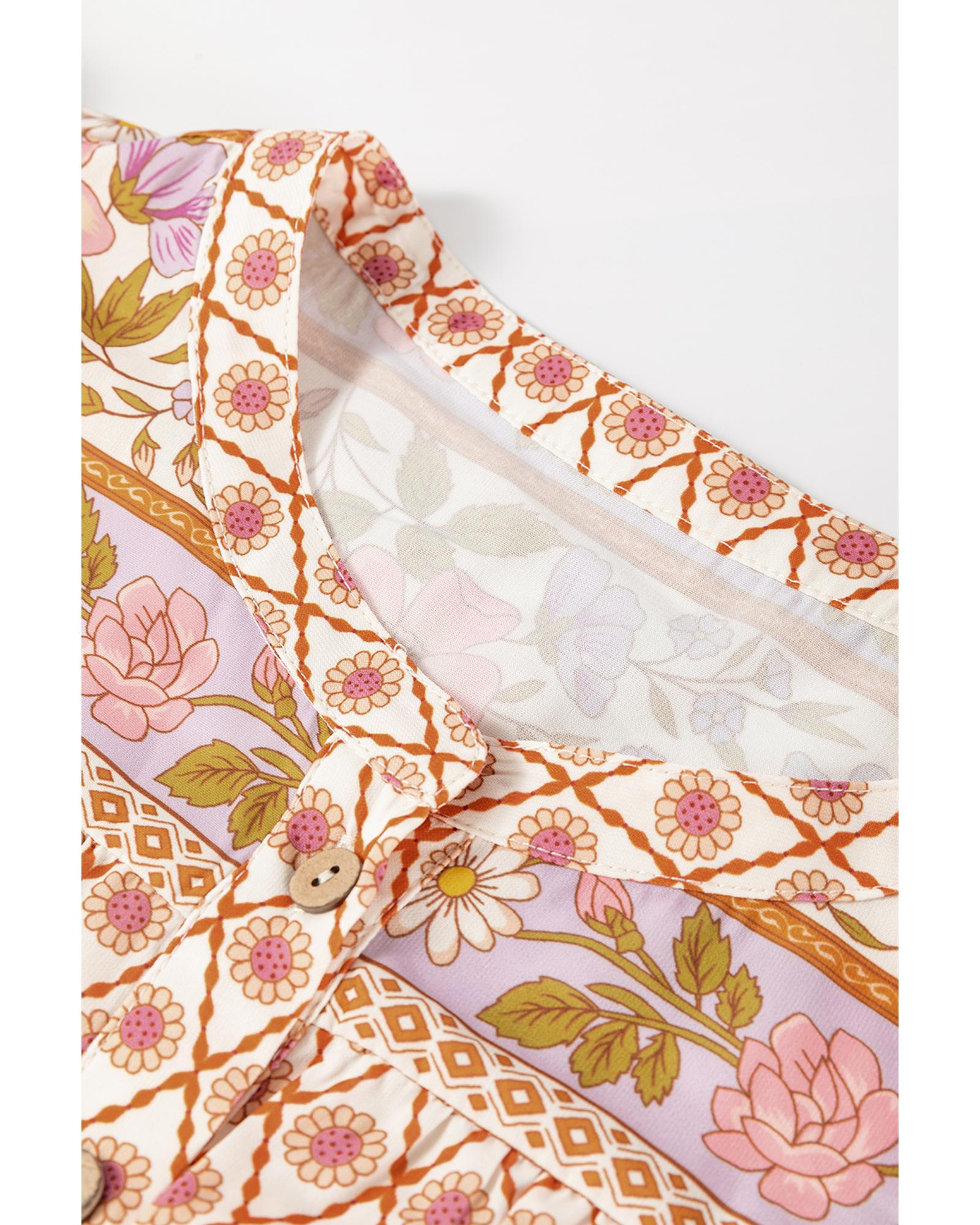 Multicolour Boho Floral Mixed Print Puff Sleeve Shirt – XL