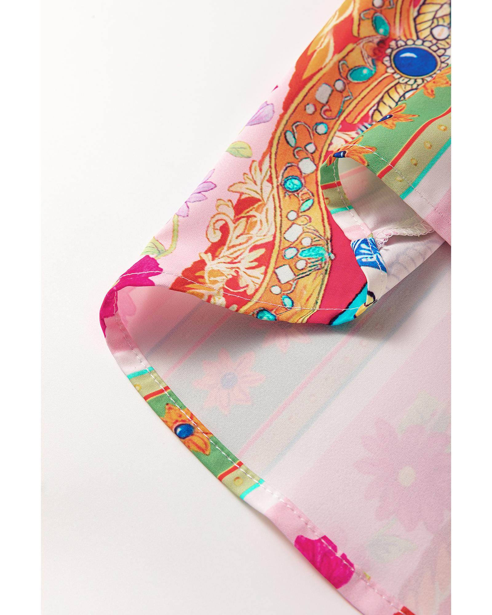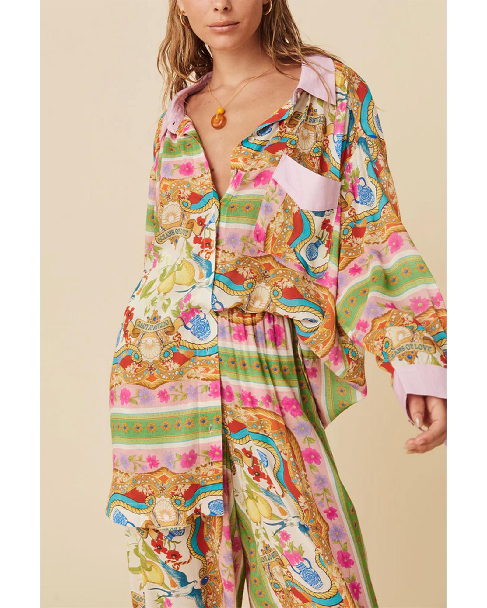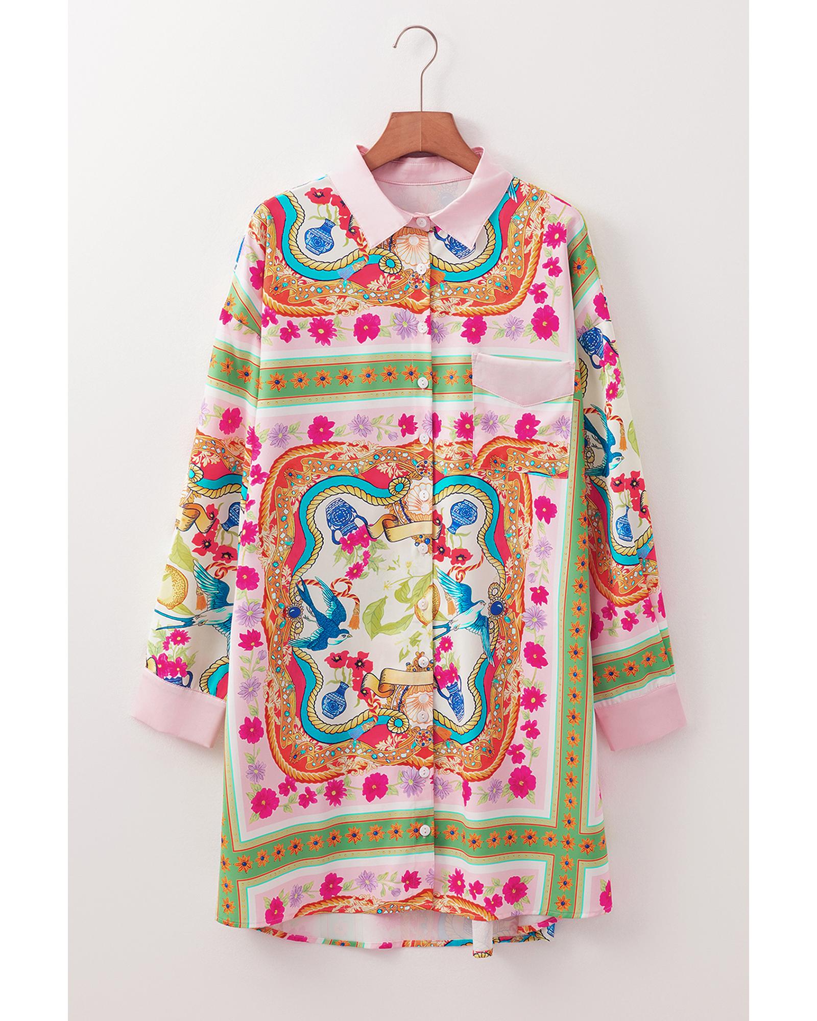 Multicolour Boho Floral Print Buttoned Long Sleeve Shirt Dress - S Original price was: $74.99.Current price is: $40.99.
