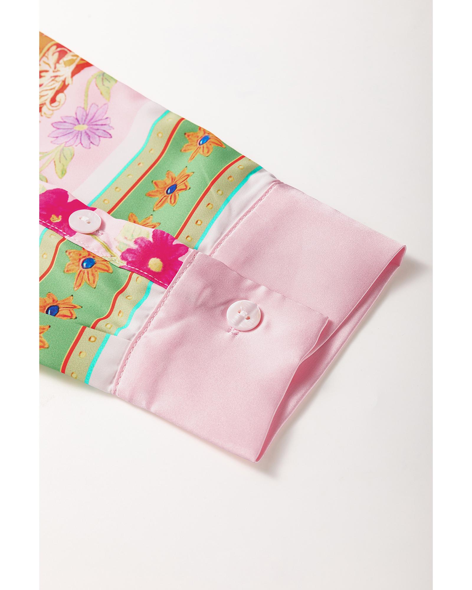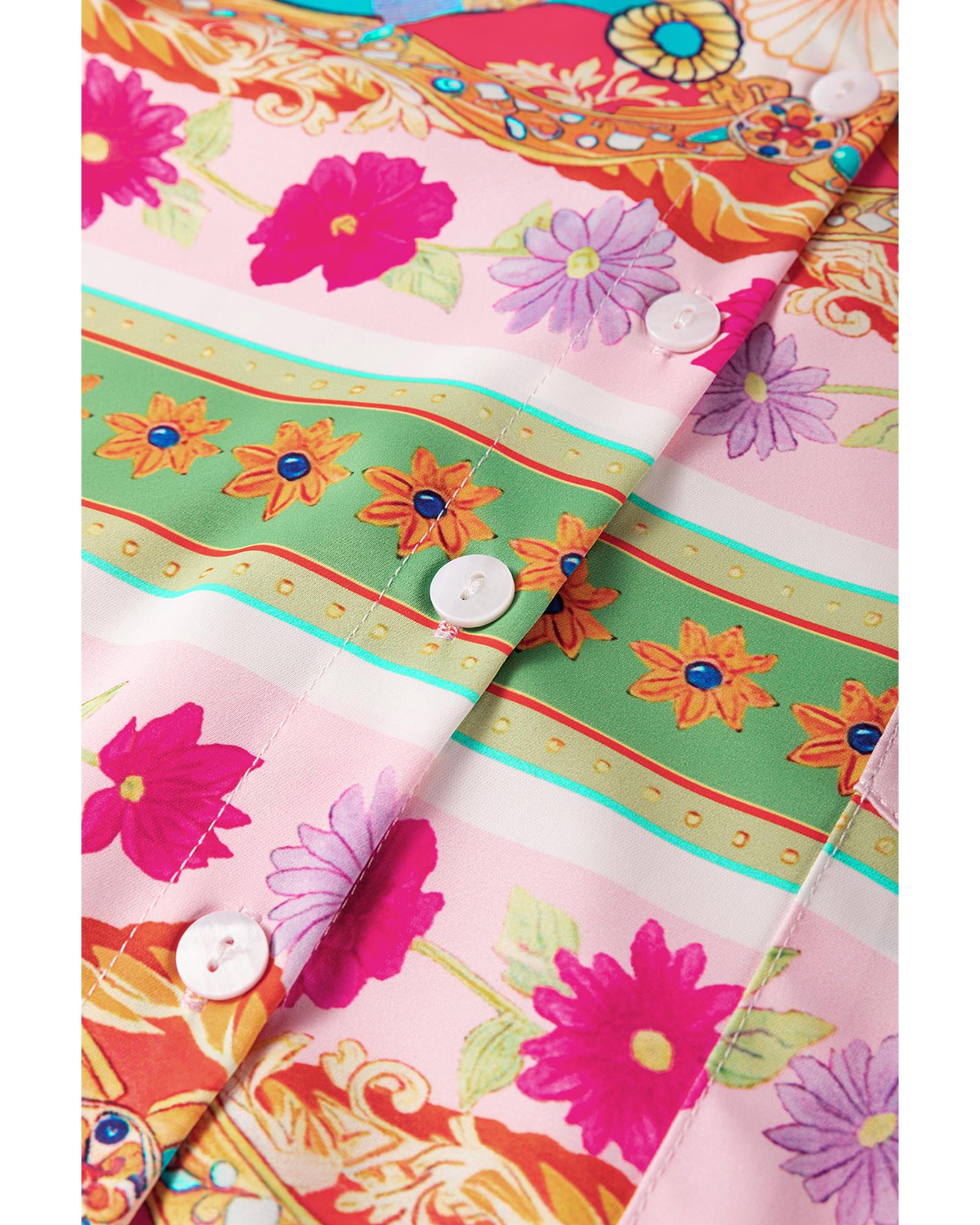 Multicolour Boho Floral Print Buttoned Long Sleeve Shirt Dress - S