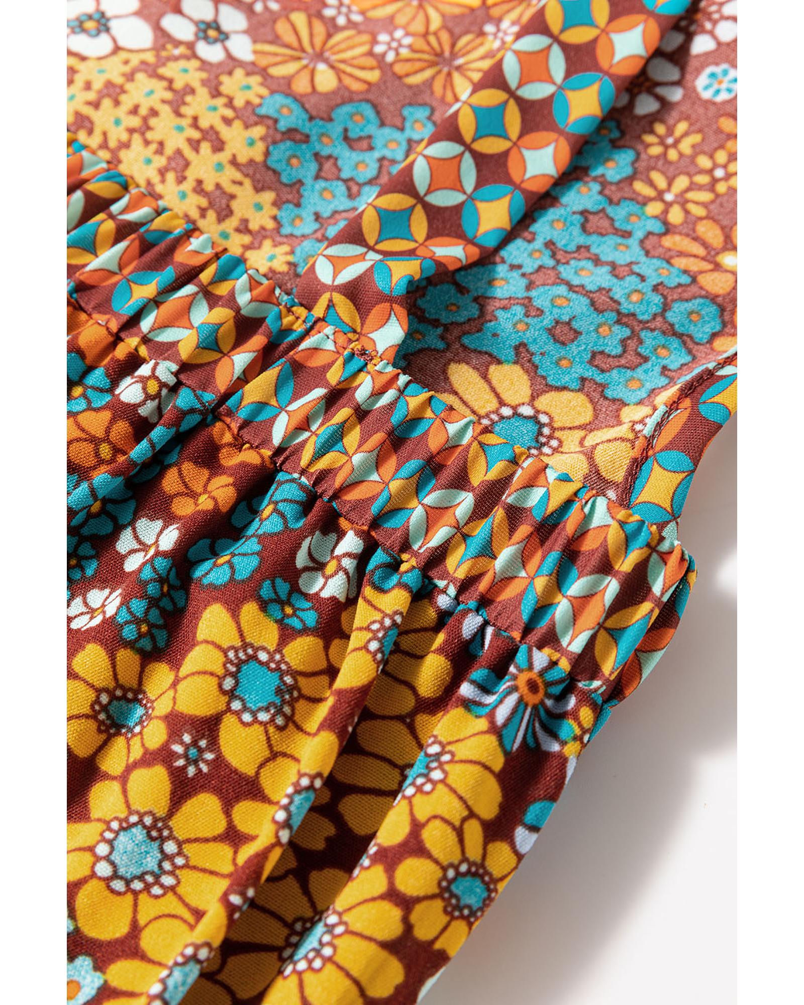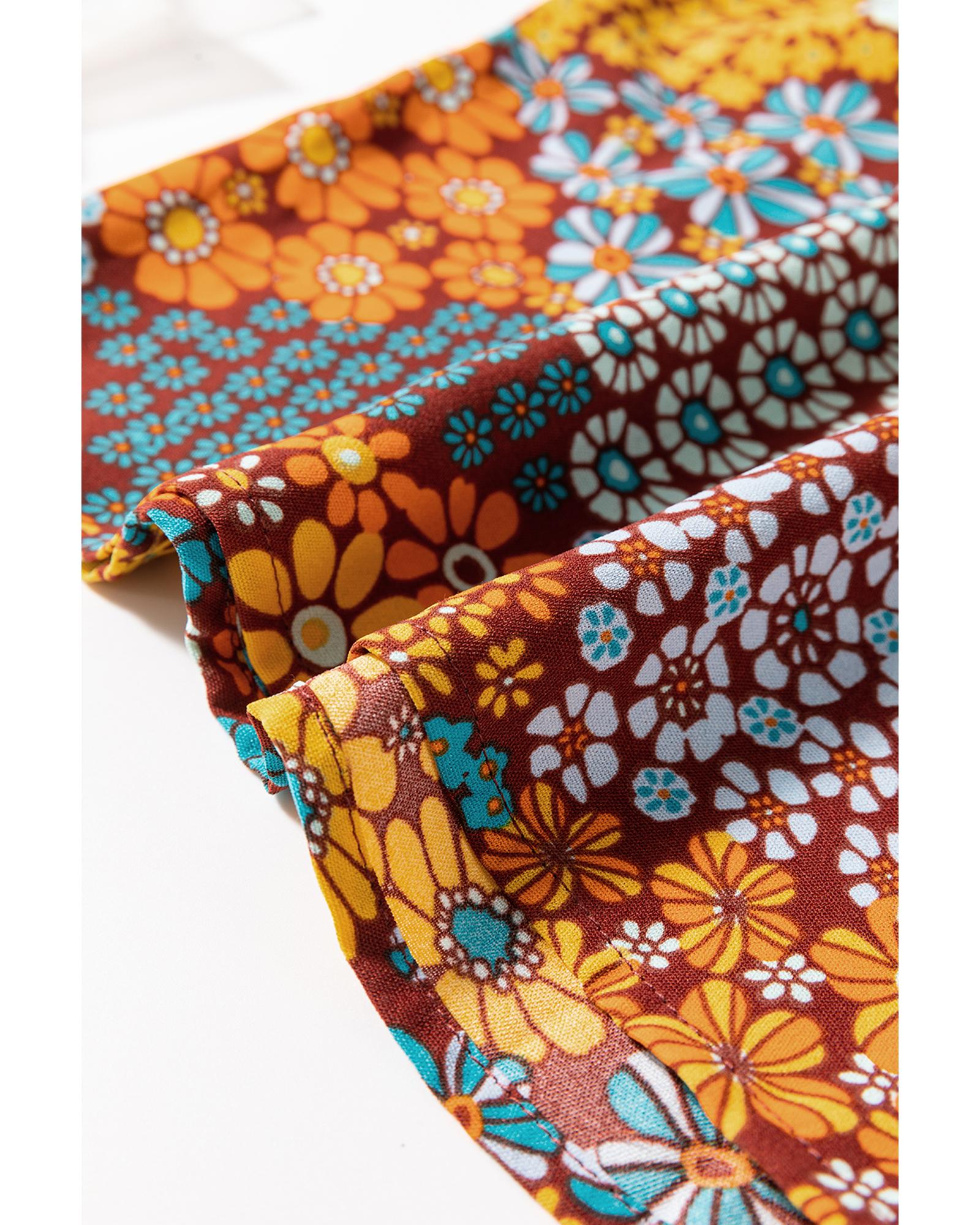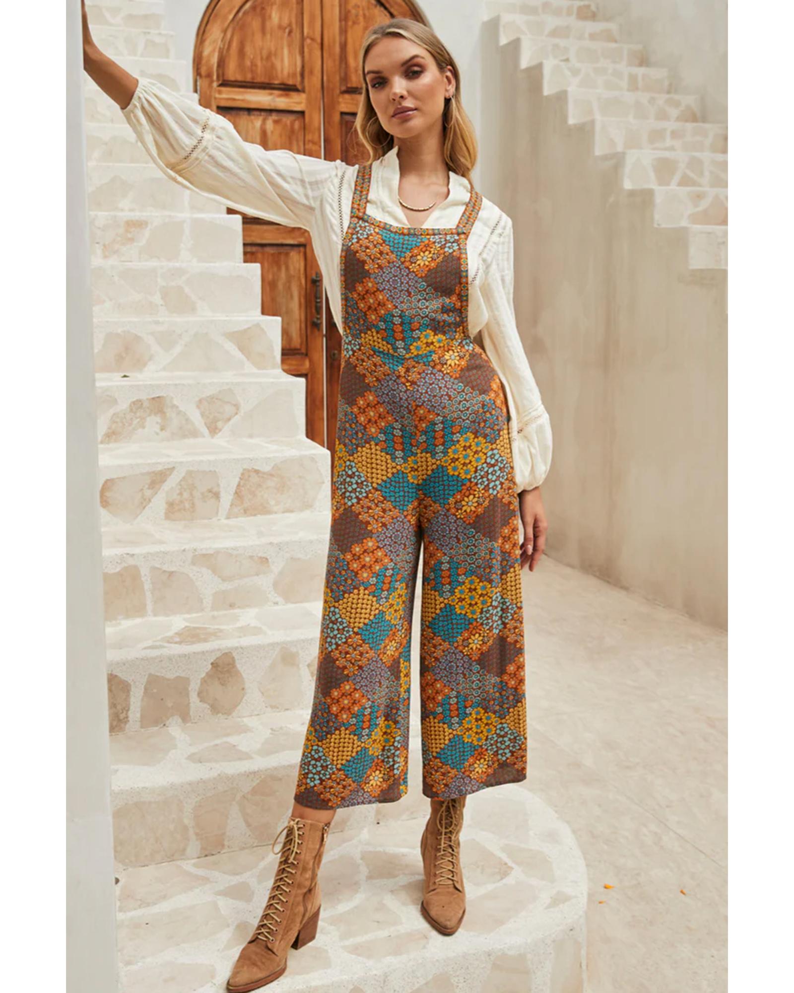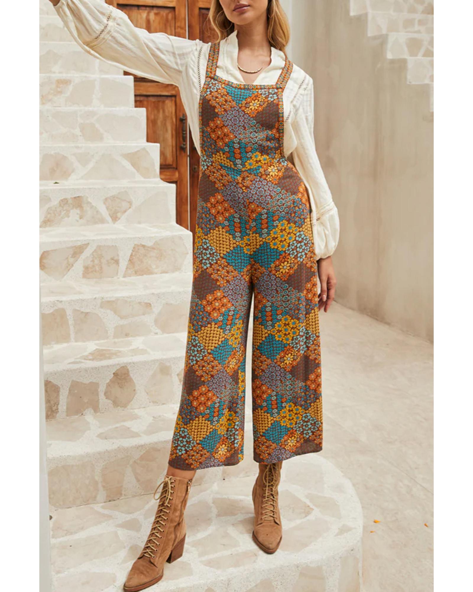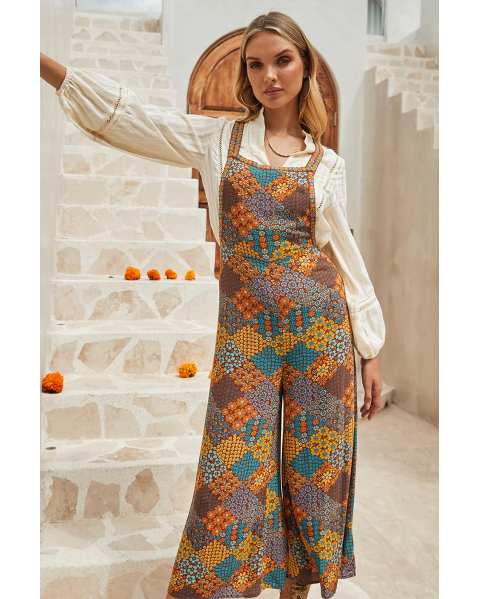 Multicolour Boho Floral Print Crossed Straps Ankle-length Jumpsuit – L