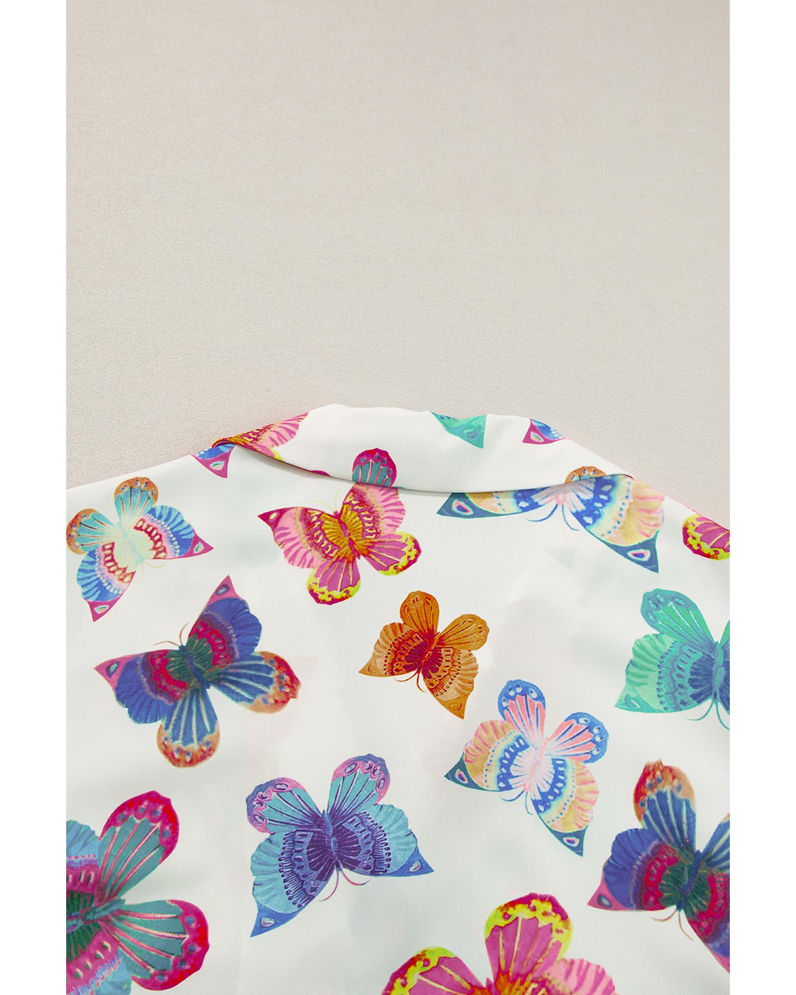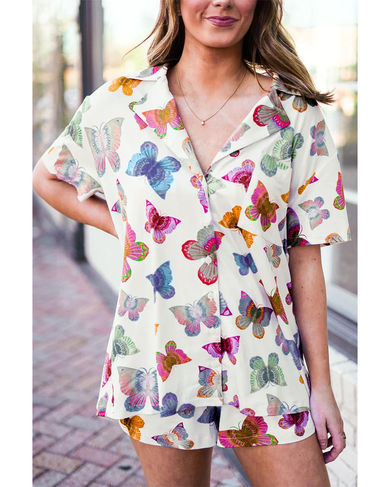 Multicolour Butterfly Pattern Short Sleeve Shirt Pajamas Set – XL