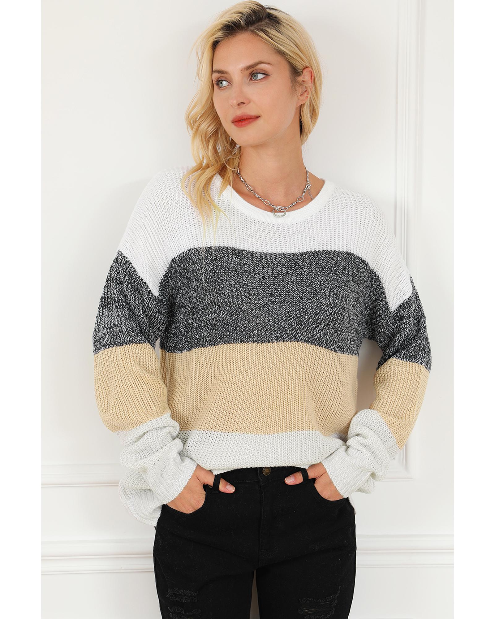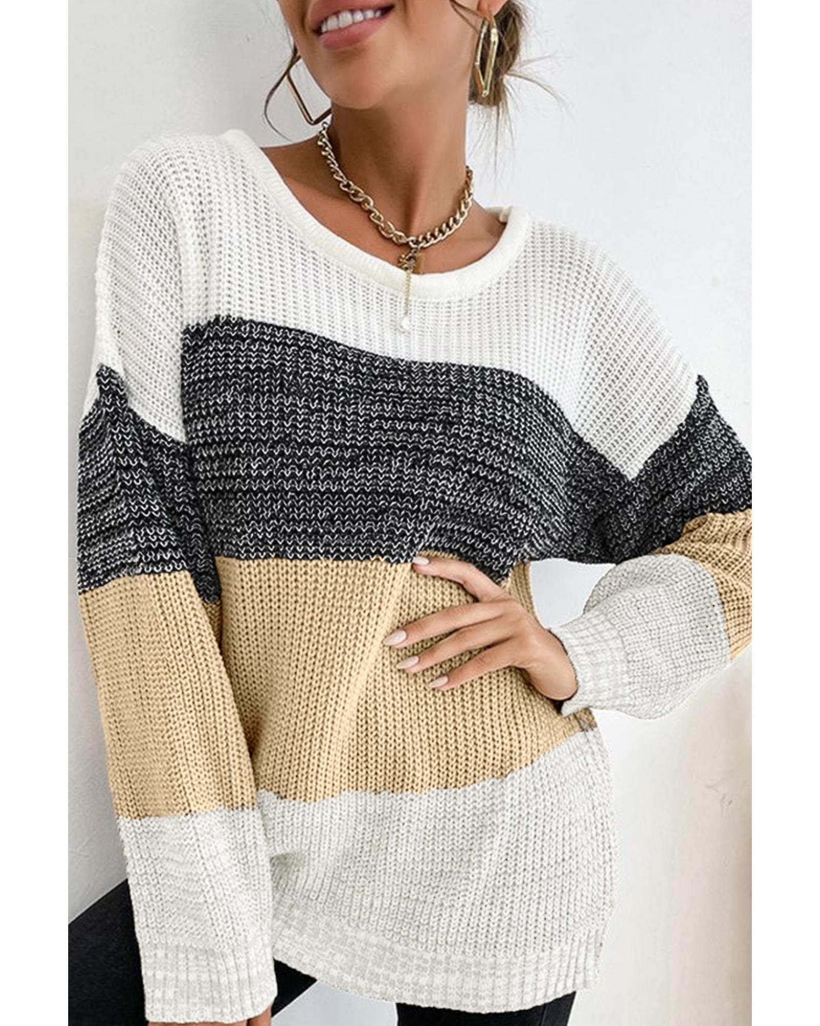 Multicolour Color Block Drop Shoulder Knit Sweater – M