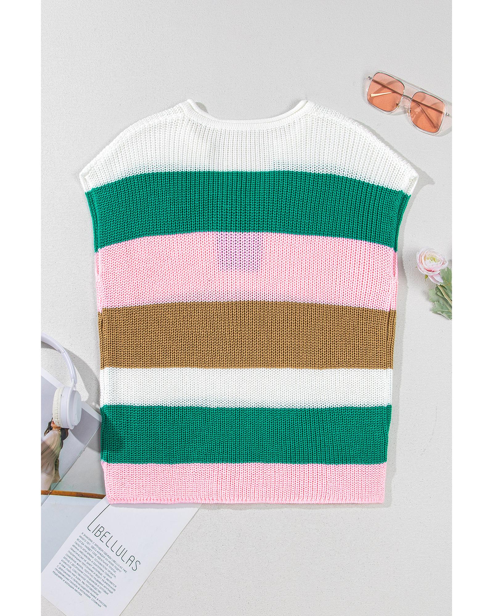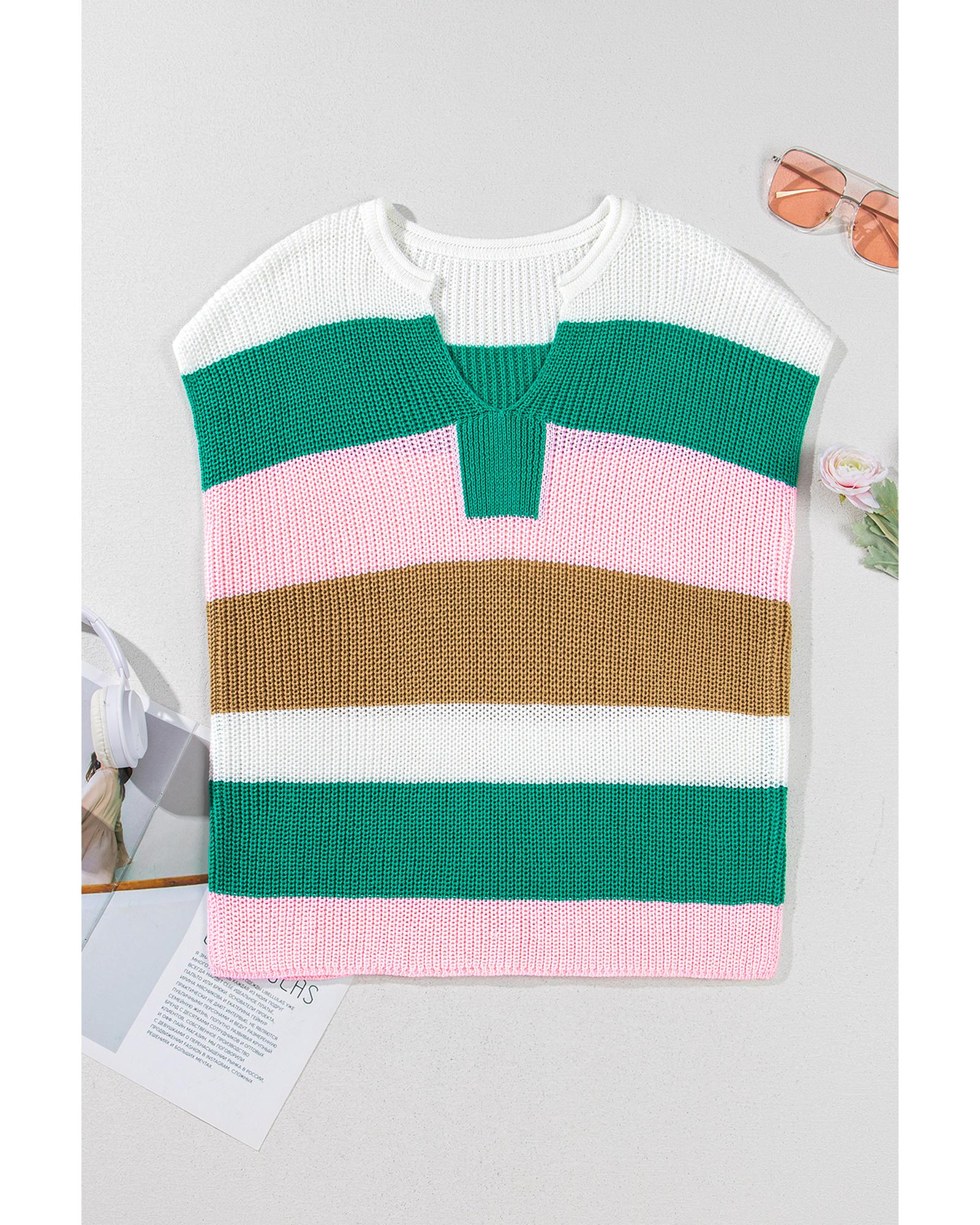 Multicolour Color Block Notch V Neck Sweater T Shirt – S