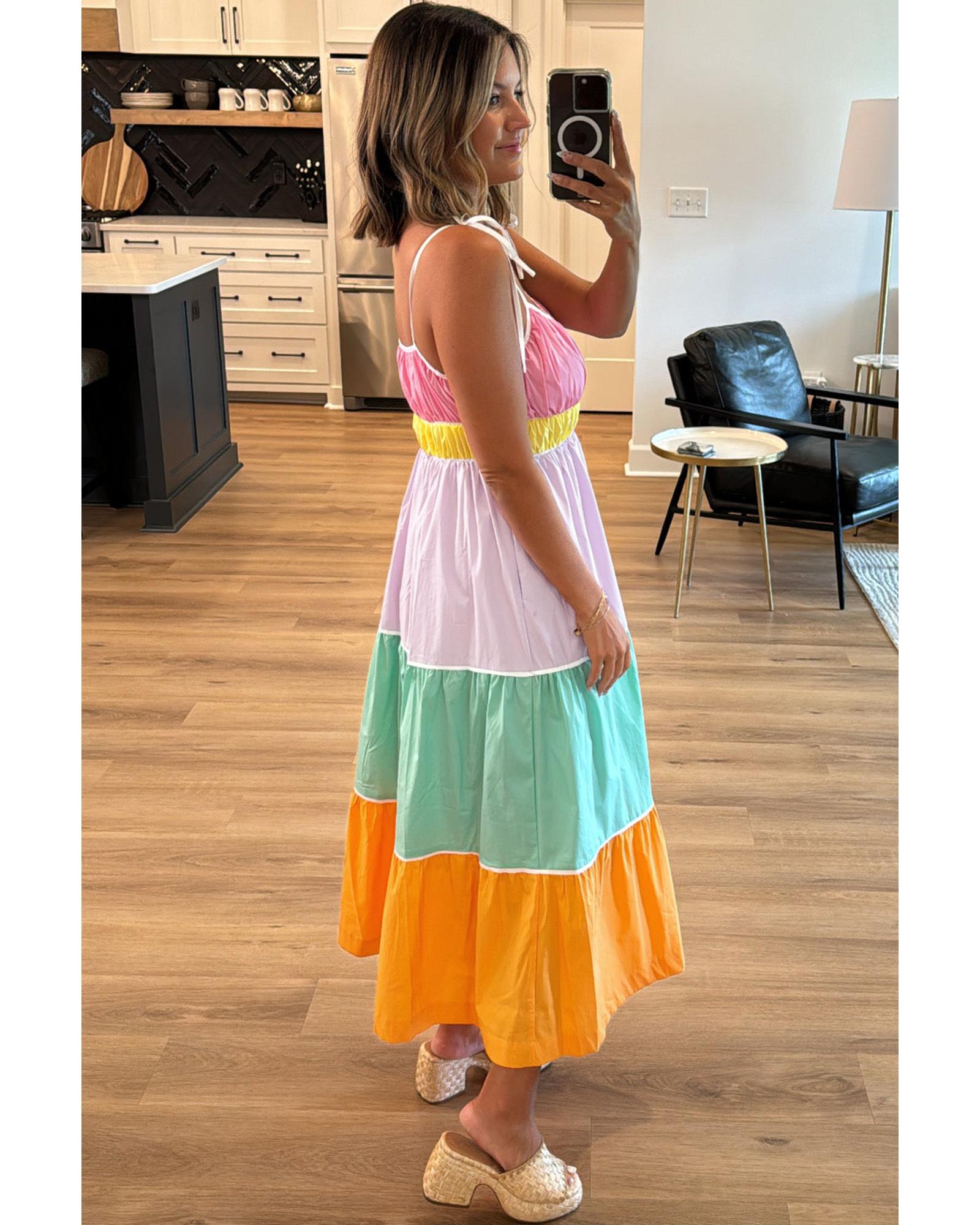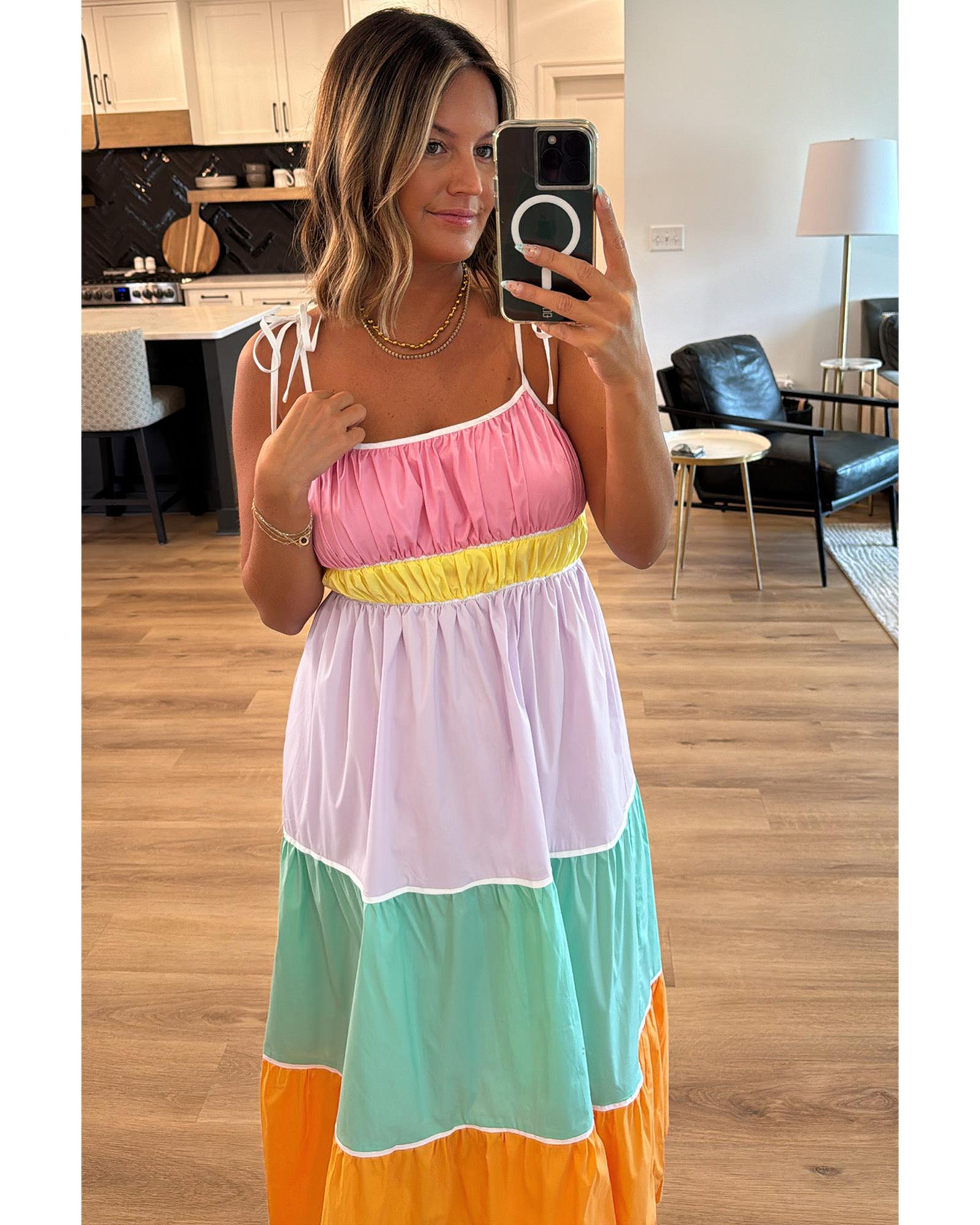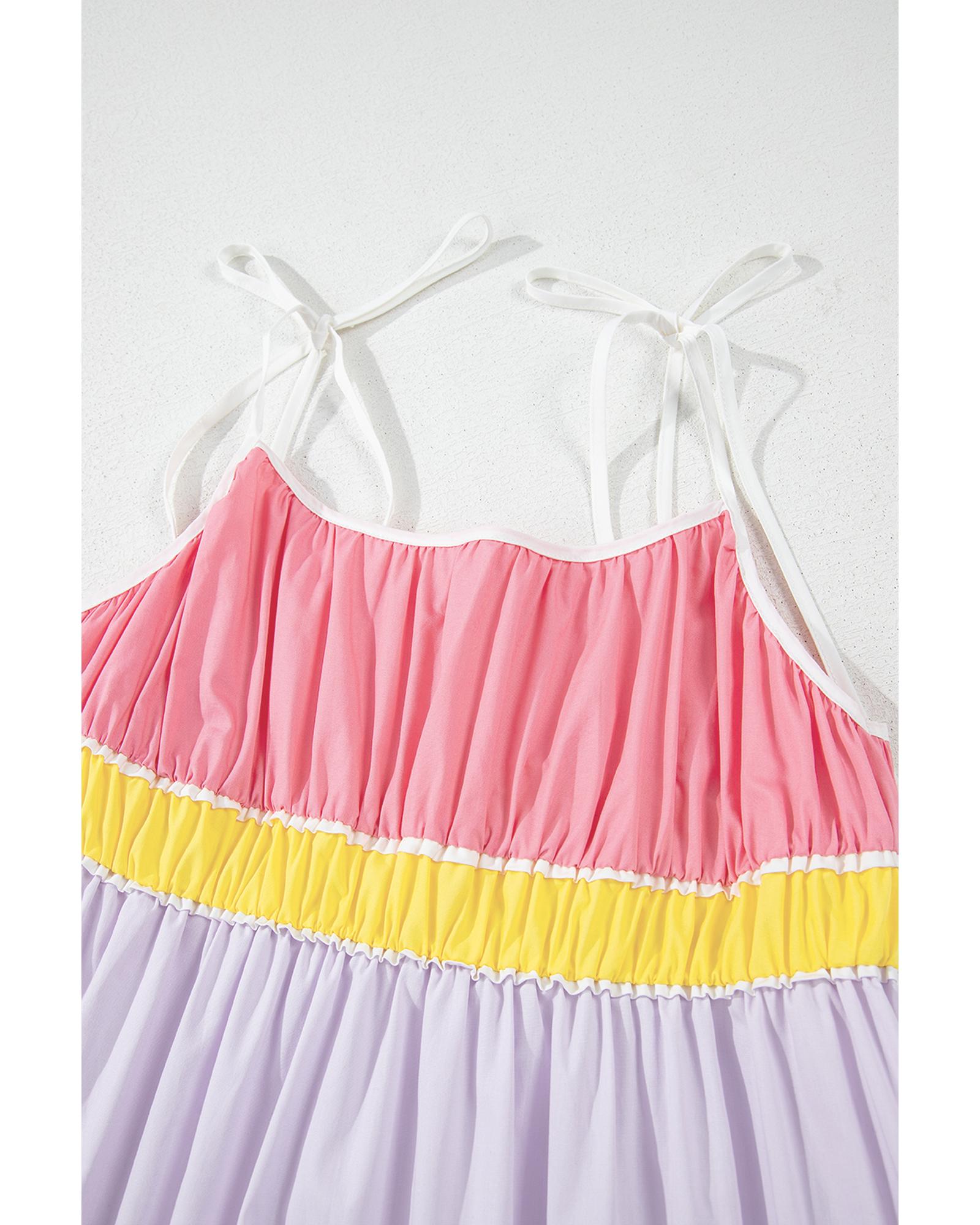 Multicolour Colorblock Self-tie Straps High Waist Flowy Maxi Dress with Pockets – L
