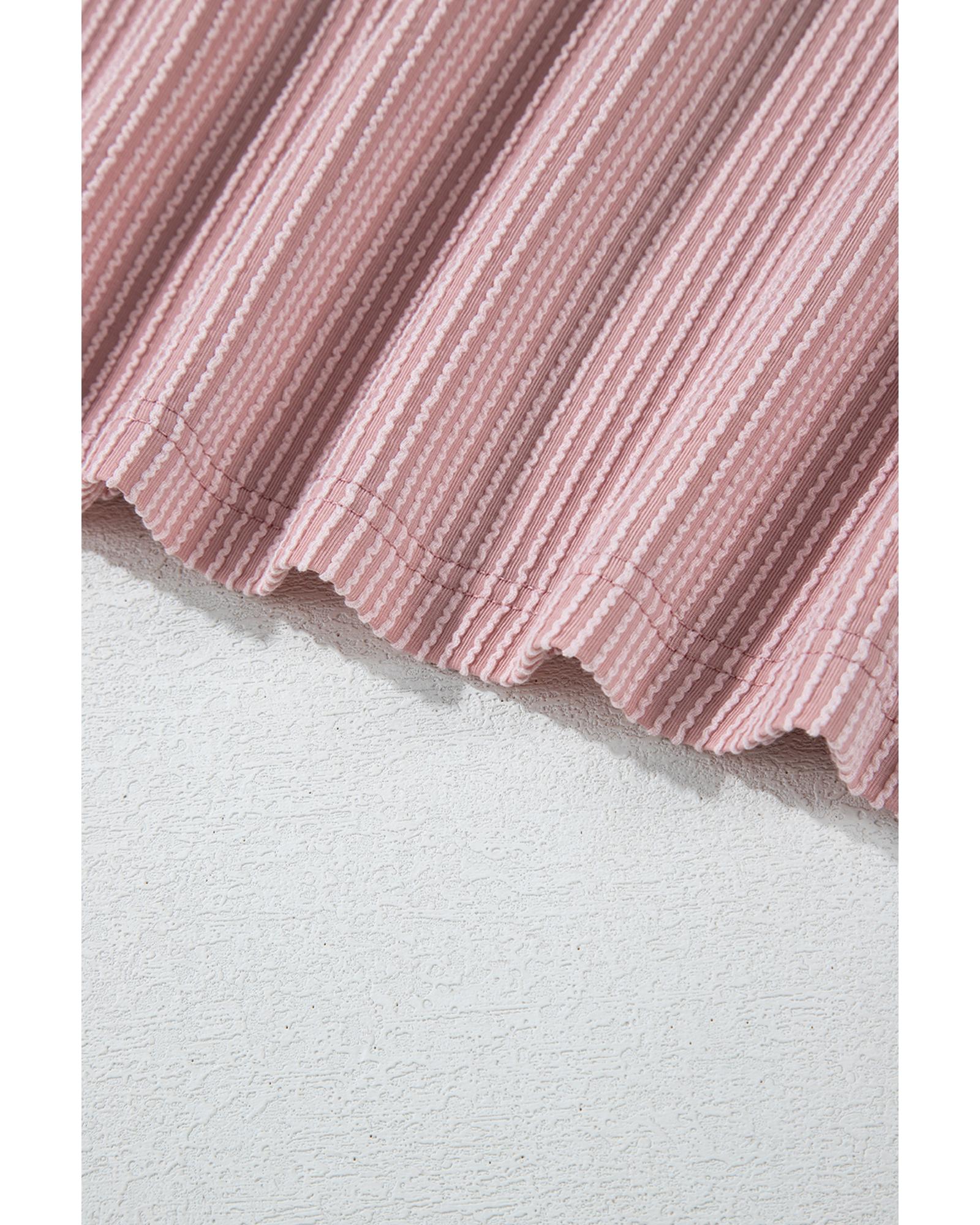 Rose Red Waffle Knit Side Slits Loose Fit V Neck Top - L