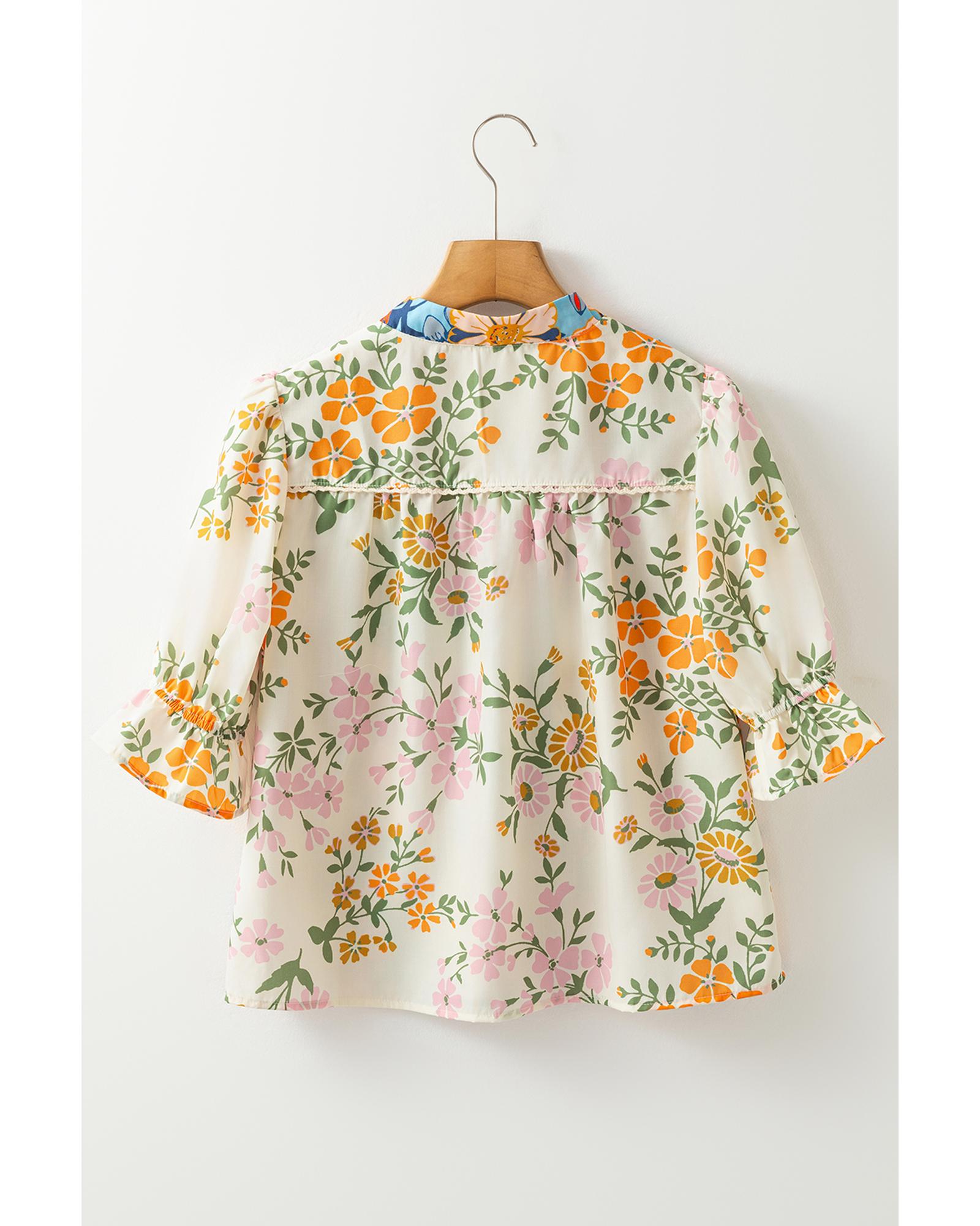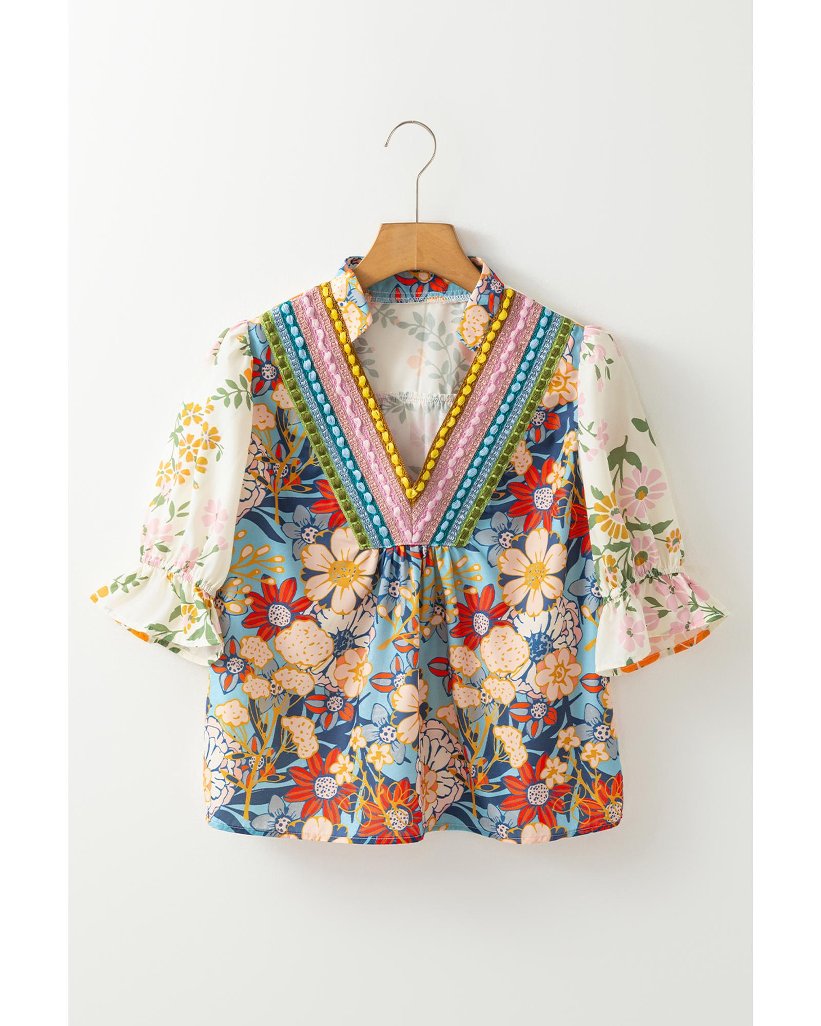 Multicolour Crochet V Neck Half Sleeve Boho Floral Blouse – S