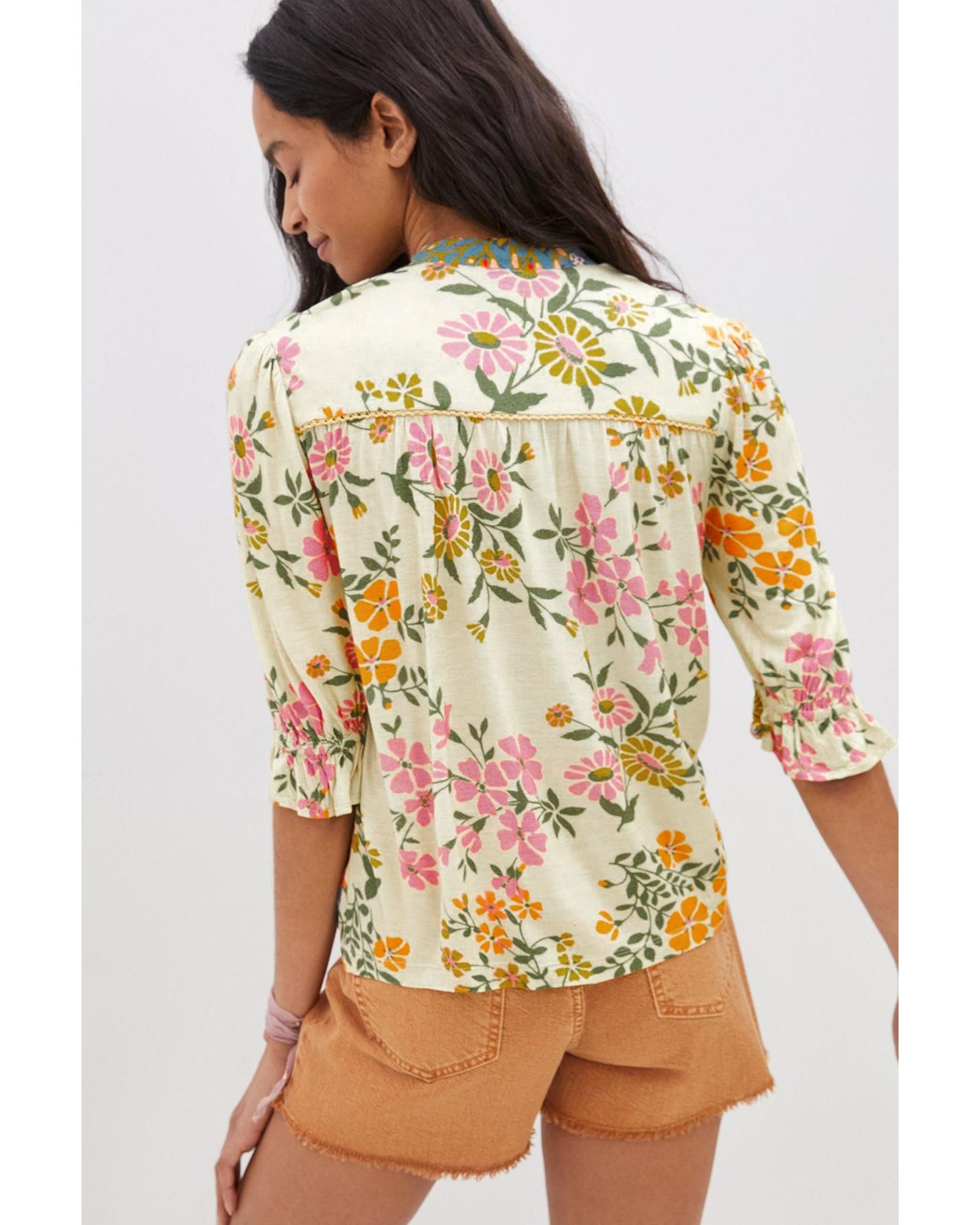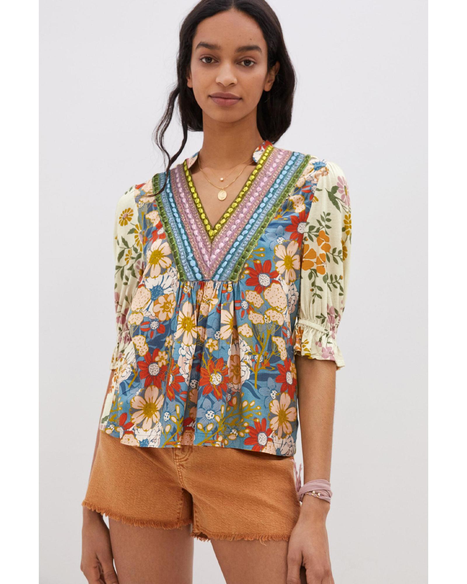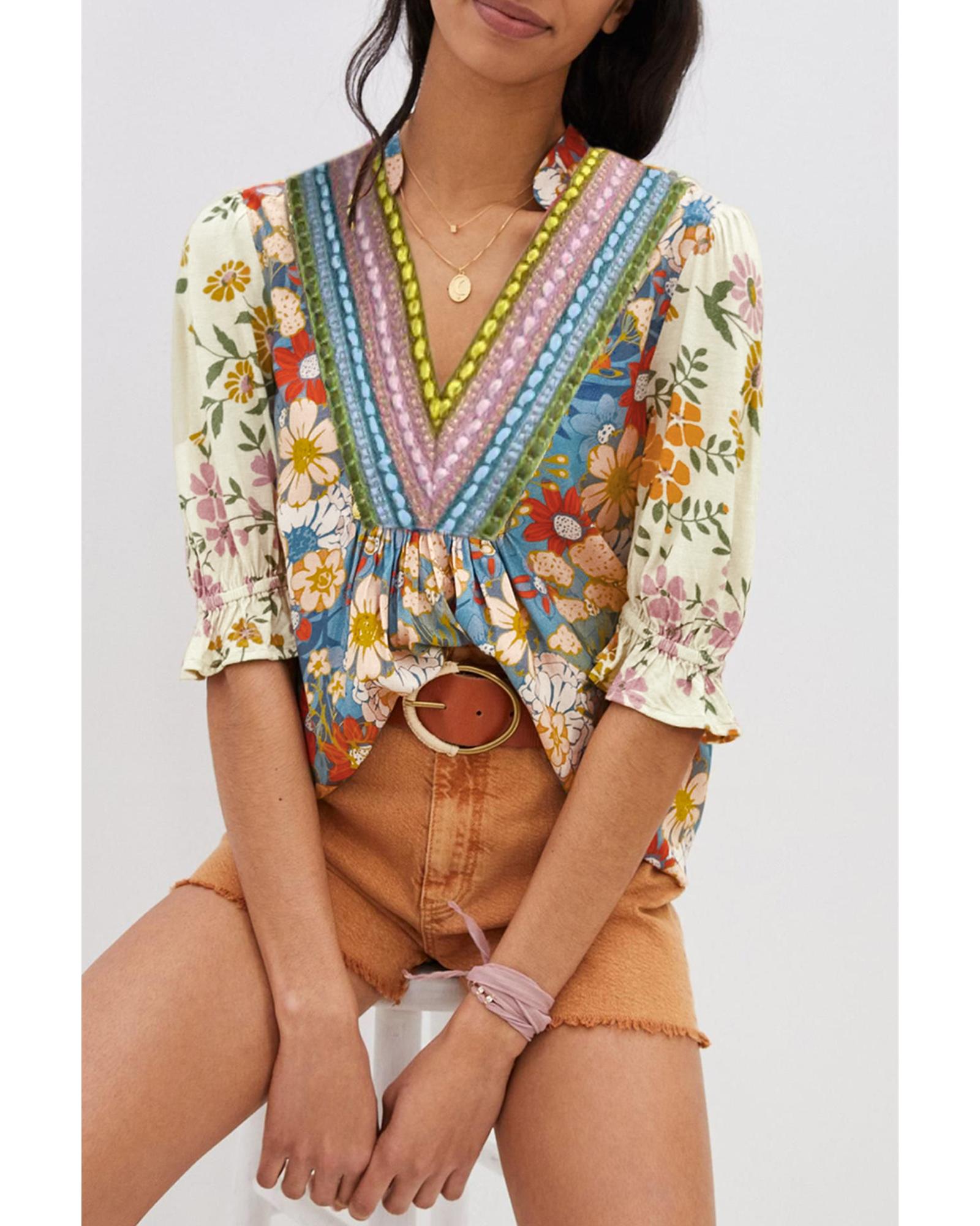 Multicolour Crochet V Neck Half Sleeve Boho Floral Blouse – XL
