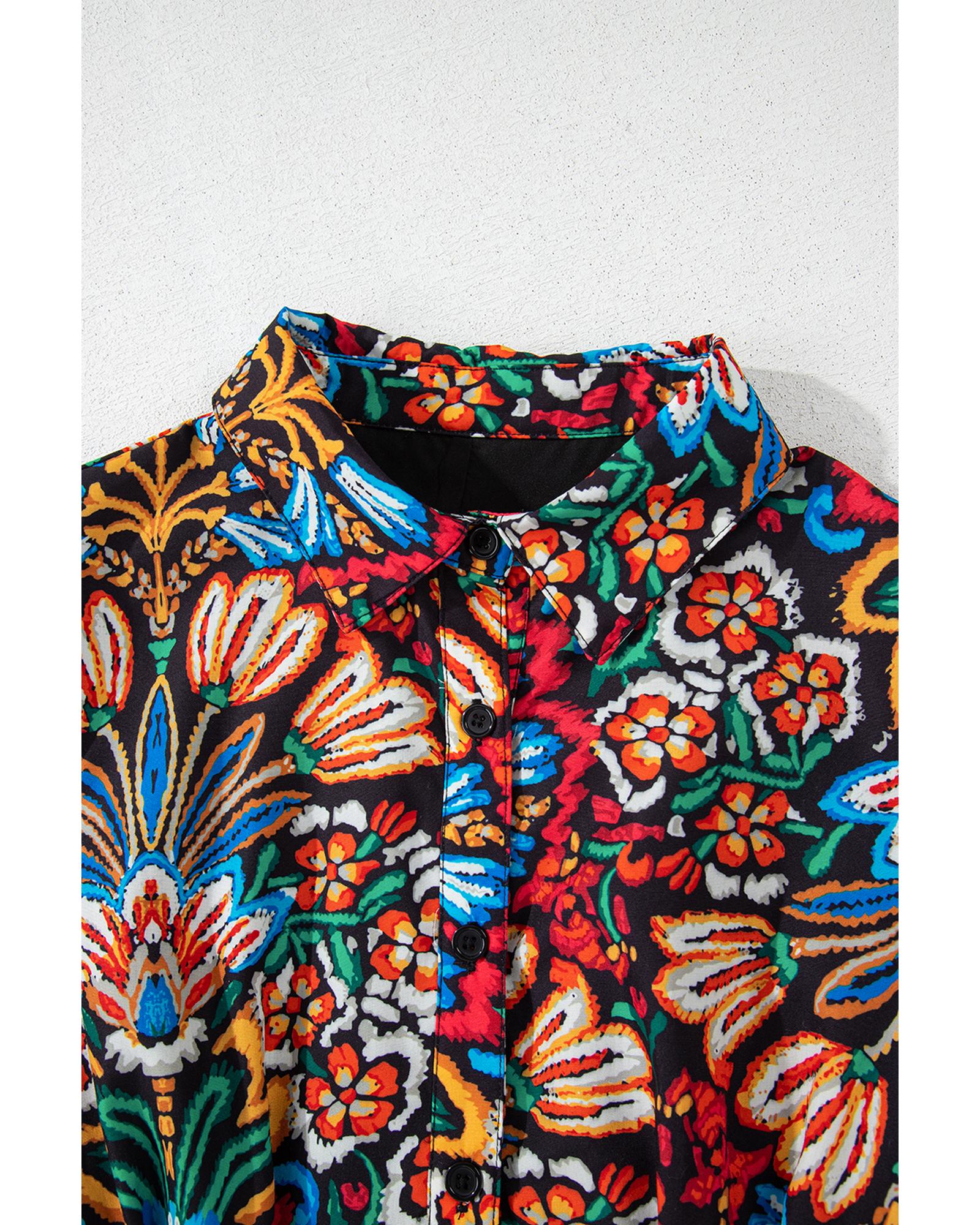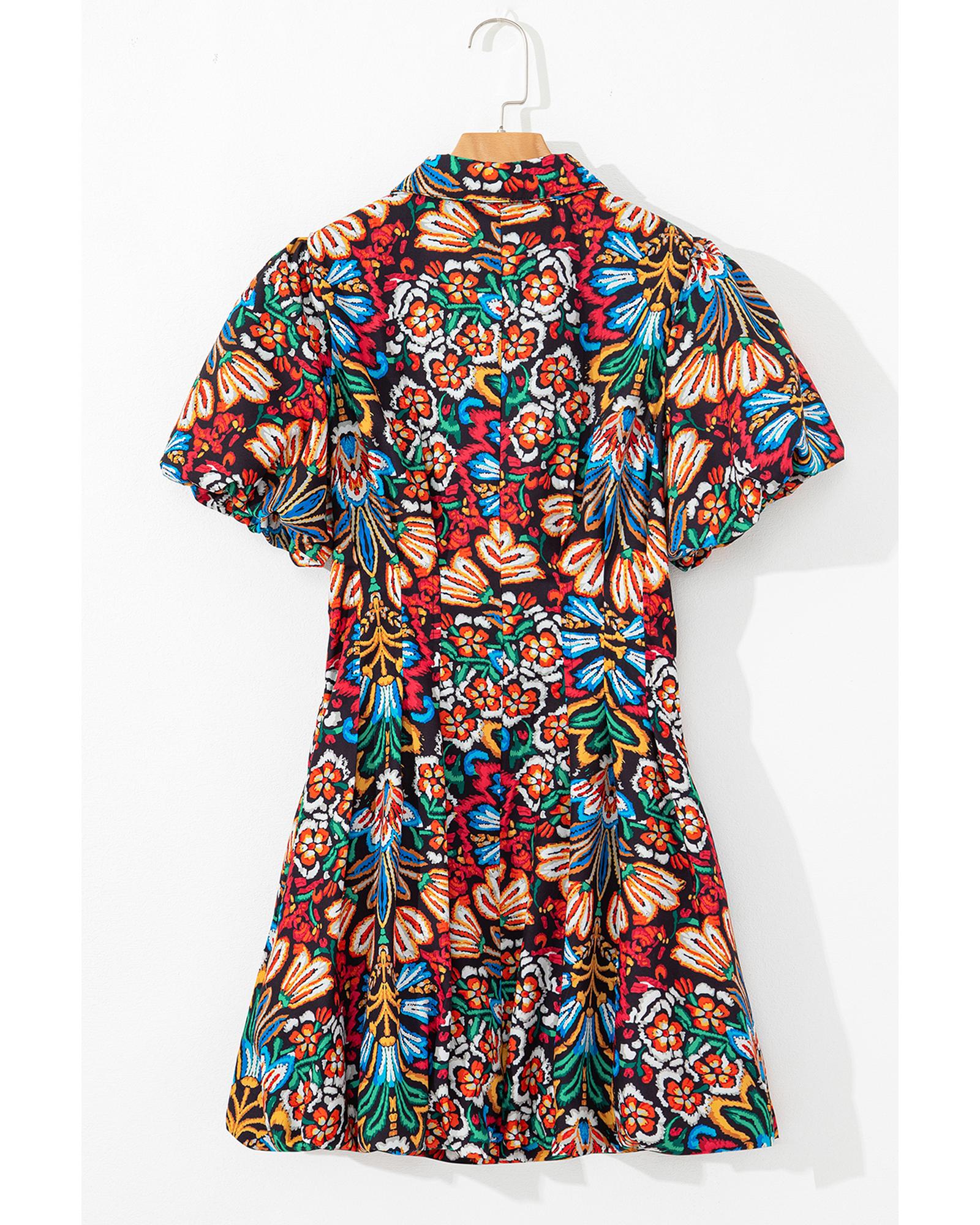 Multicolour Floral Puff Short Sleeve Shirt Mini Dress – XL