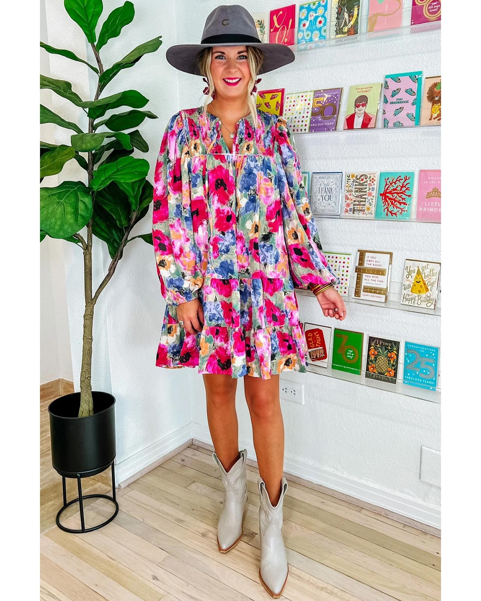 - Multicolored floral shift dress
