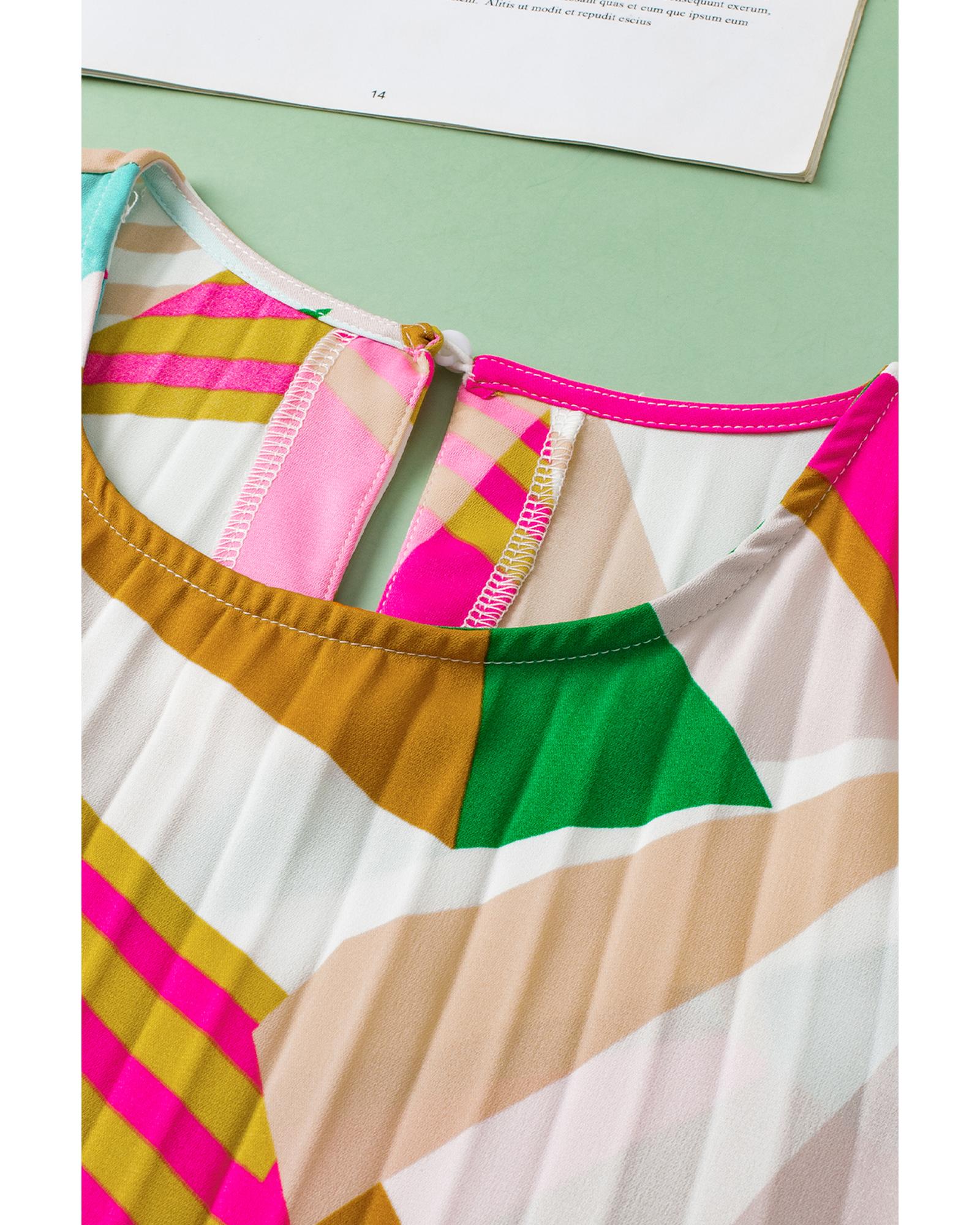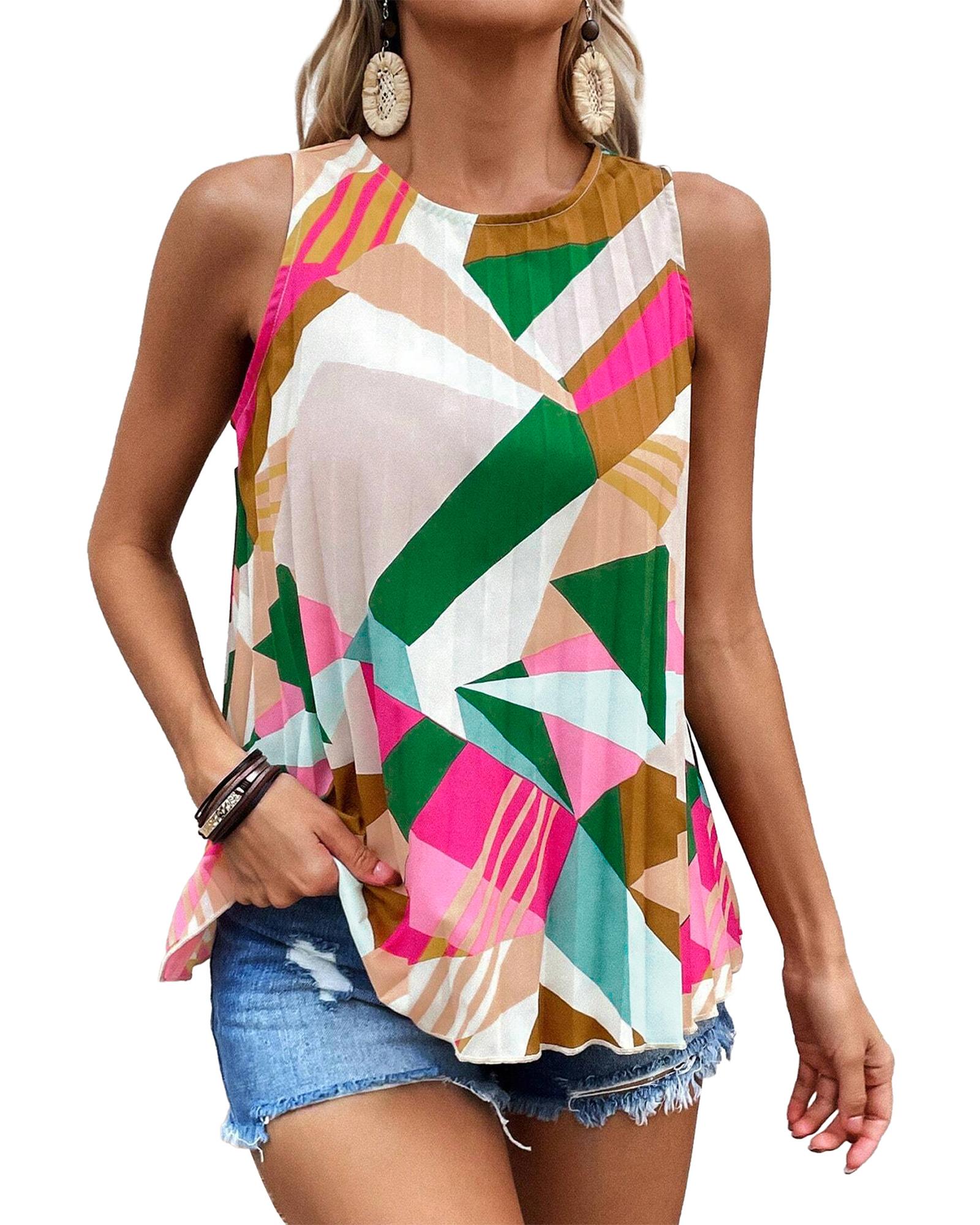 Multicolour Geometric Printed Pleated Shift Tank Top – M