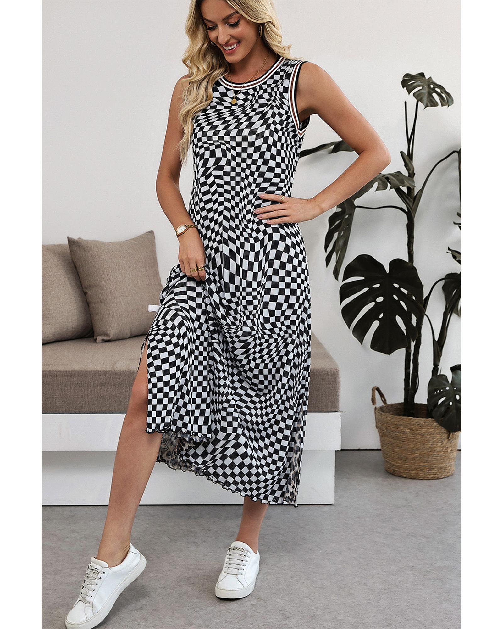Multicolour Leopard Checkered Double Printed Reversible Sleeveless Long Dress – S