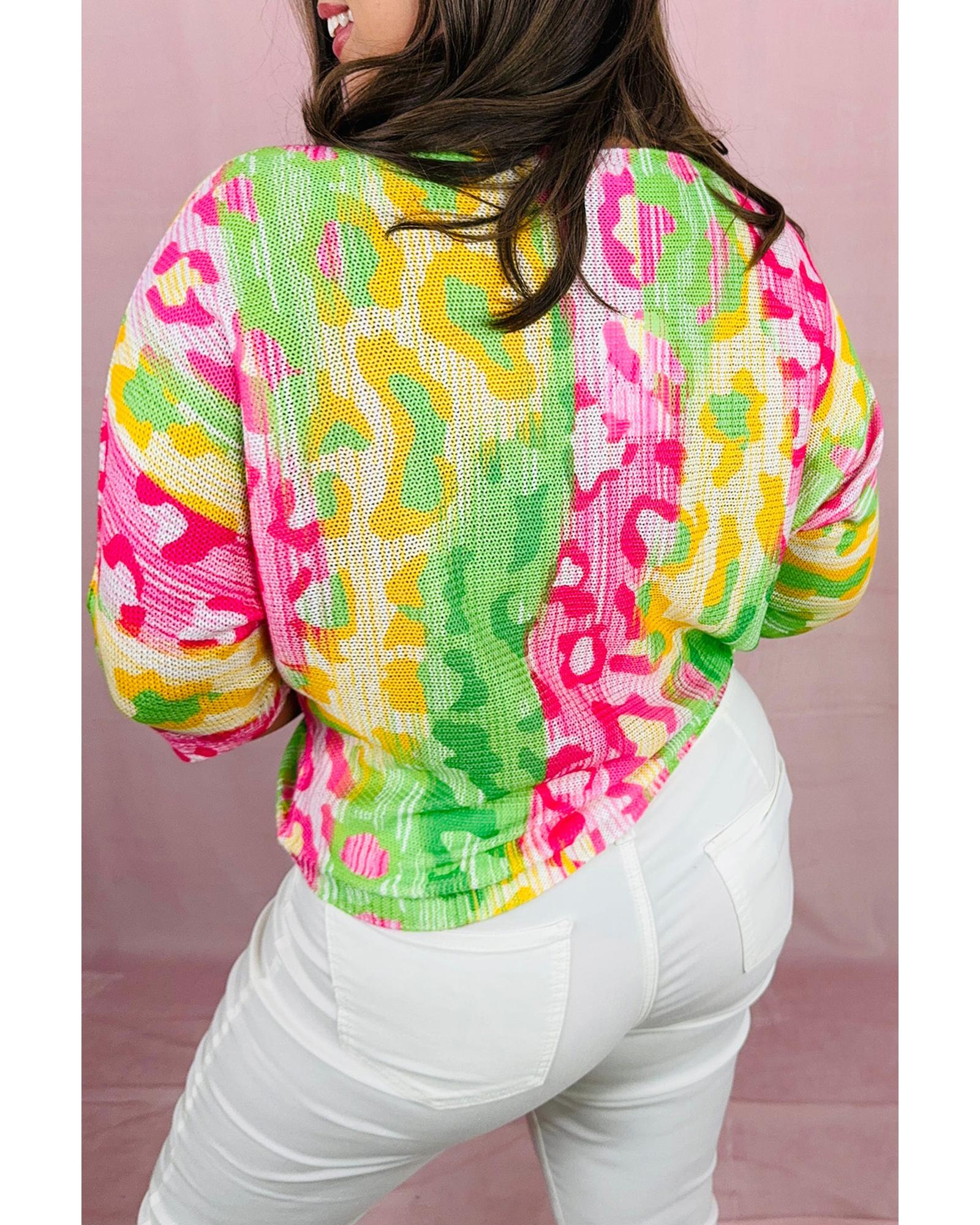Multicolour Leopard Color Block Knitted Crewneck Plus Size T Shirt – 1X