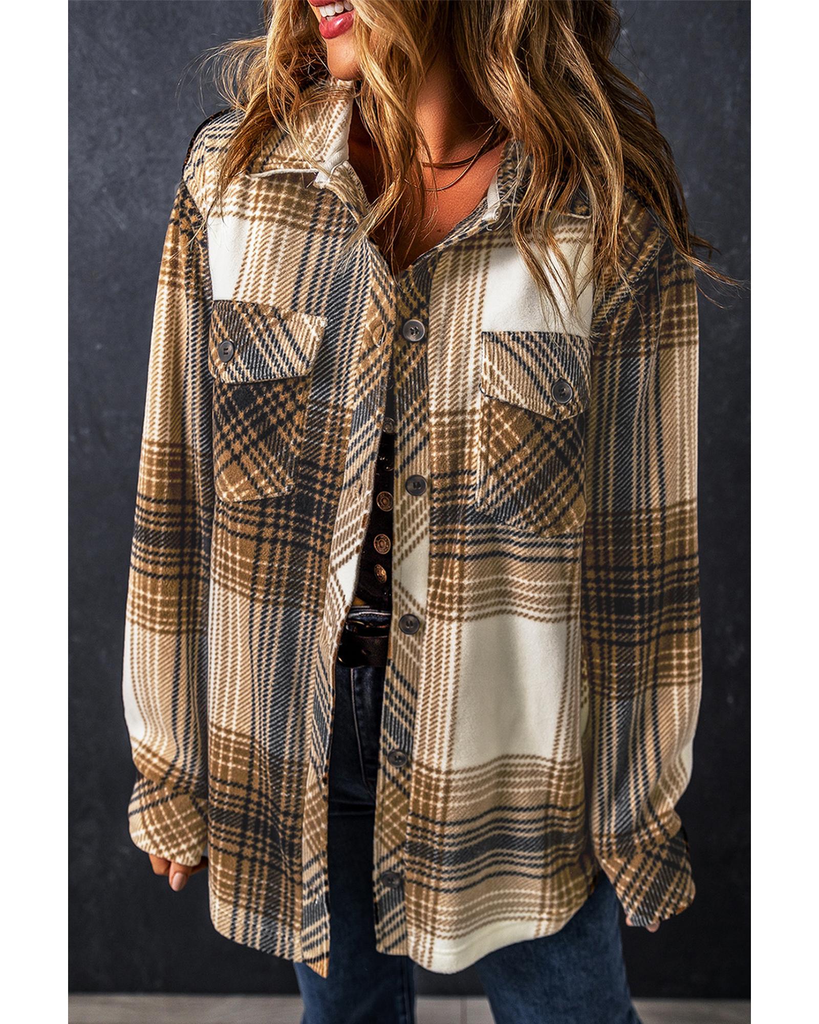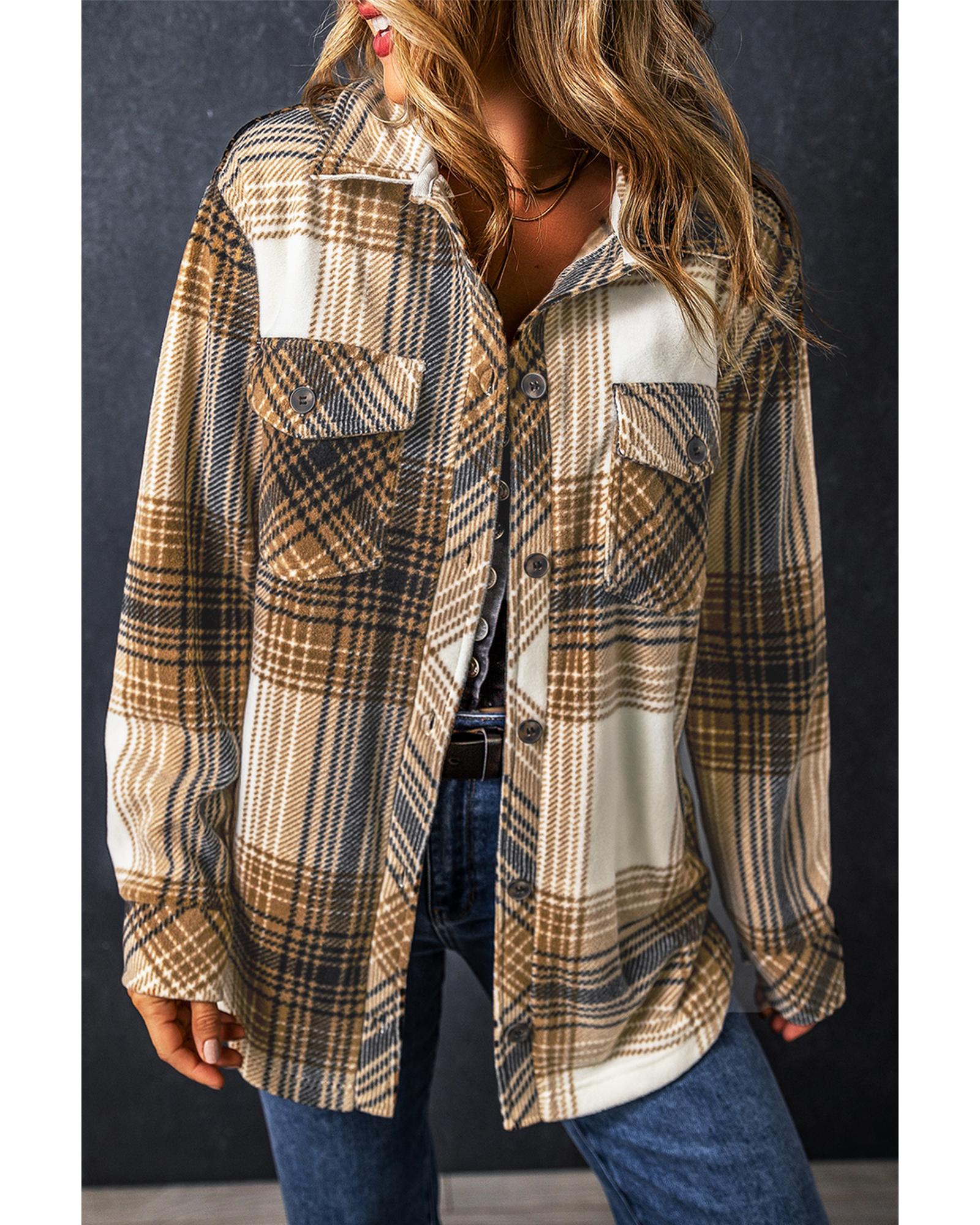Multicolour Plaid Print Flap Pocket Button Up Shacket – M